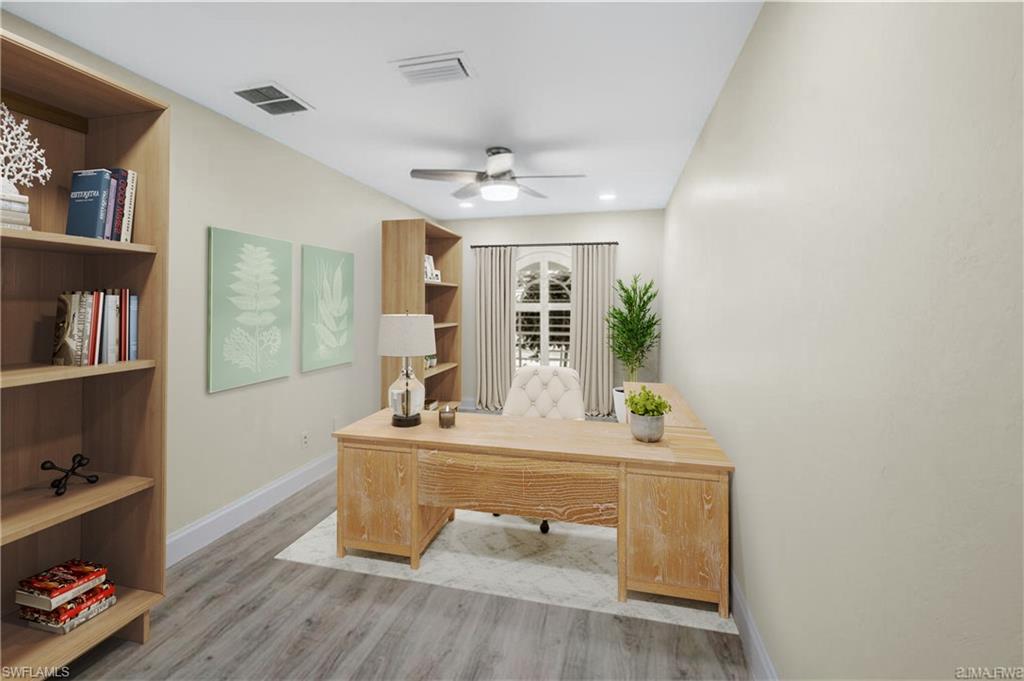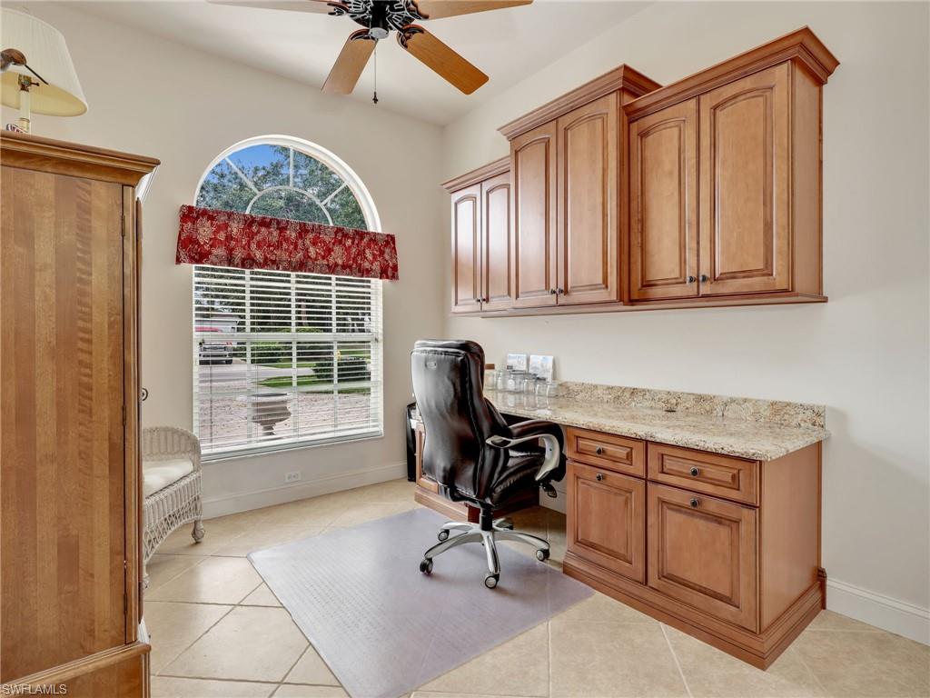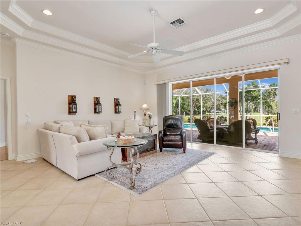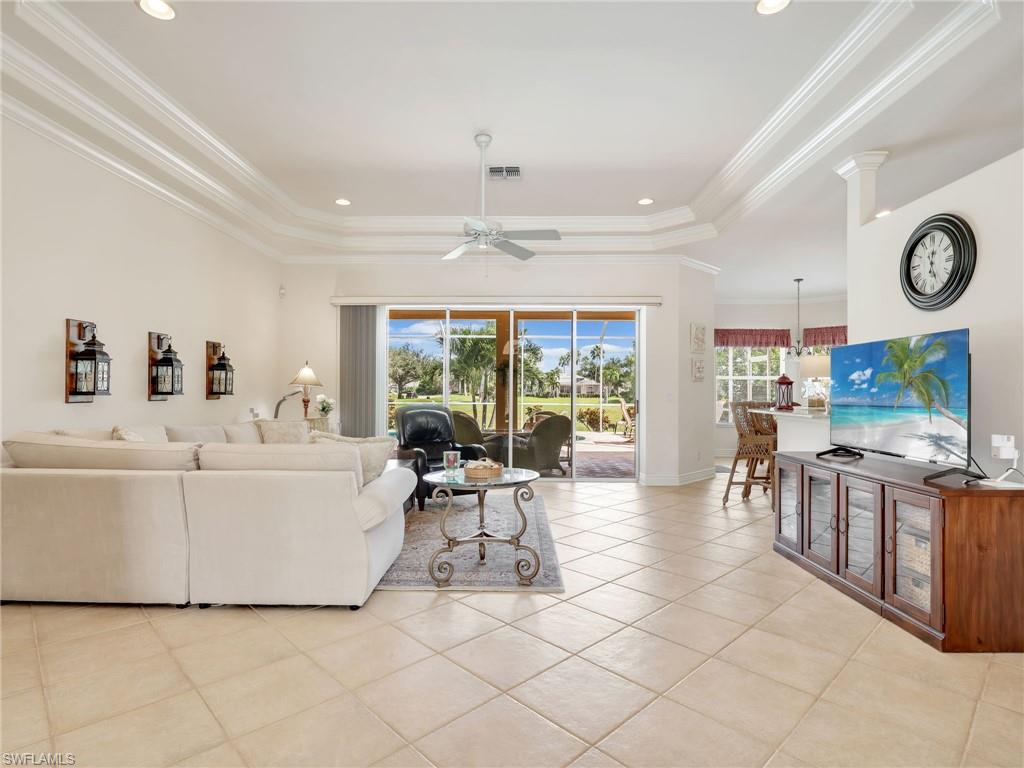 Welcome to this beautifully maintained 4-bedroom, 2-bath pool home with a 3-car garage, ideally located on a golf course lot in the highly desirable gated community of Stoneybrook in Estero. This property offers a stunning combination of comfort, upgrades, and lifestyle. Step inside to find a bright, open floor plan with tray ceilings, crown molding, and expansive sliding glass doors that frame sweeping golf course and lake views. The spacious living room flows seamlessly into the kitchen and breakfast area, creating the perfect setting for entertaining. The kitchen features stainless steel appliances, granite countertops, stylish backsplash, and abundant cabinet space. The primary suite includes direct access to the lanai and pool, a walk-in closet with custom organizers, and an en-suite bath with dual sinks, a soaking tub, and a walk-in shower. Each bedroom in the home is equipped with custom closet systems, adding both functionality and value. The den provides flexibility for a home office or additional guest space. Additional upgrades include custom cabinetry in the laundry room and a brand new AC system installed less than a month ago, offering peace of mind for years to come. The outdoor space features a screened lanai with a sparkling pool and plenty of room for lounging or dining al fresco while enjoying the tranquil golf course backdrop. Home inspection performed for peace of mind and available upon request. Stoneybrook offers resort-style amenities with some of the lowest HOA fees in the area. Residents enjoy access to a community pool, fitness center, tennis, pickleball, bocce, volleyball, basketball, and an 18-hole public golf course with no mandatory fees. Conveniently located near I-75, Miromar Outlets, FGCU, RSW International Airport, and some of Southwest Florida’s best beaches, this home is the perfect combination of location and lifestyle. Don’t miss your chance to own this move-in ready home in one of Estero’s most established communities.