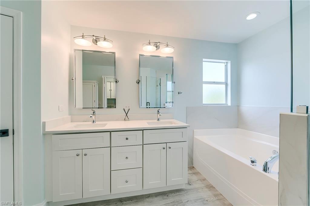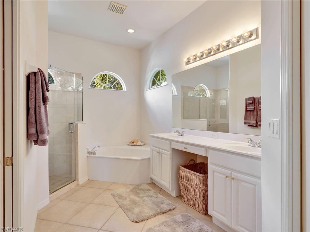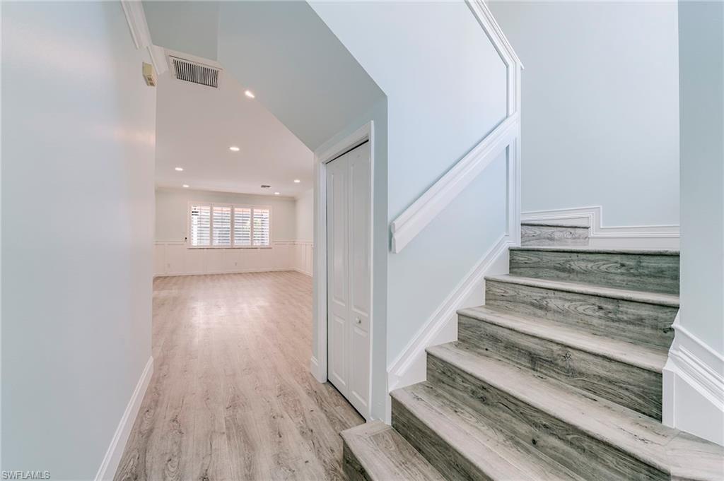 This beautifully updated 4-bedroom, 3-bath home offers the perfect blend of comfort, function, and style. The upgraded kitchen features modern finishes and opens to a bright, spacious living area with new plank tile flooring on the first floor and matching luxury vinyl plank upstairs. A first-floor bedroom and full bath make an ideal space for guests or a home office. Upstairs, the primary suite impresses with a luxurious soaking tub, oversized walk-in shower, and custom closet storage. Step outside to your private backyard retreat—an extended paver lanai with a covered entertaining space and sparkling pool. The expanded paver driveway accommodates three cars with ease. The roof was replaced in 2021 and the AC was replaced in 2022. Located in the gated golf community of Stoneybrook, residents enjoy low HOA fees, top-rated schools, and a prime Estero location close to shopping, dining, and RSW Airport. Families will love the private entrance to Pinewoods Elementary and the added advantage of Stoneybrook’s Proximity 1 school zoning.