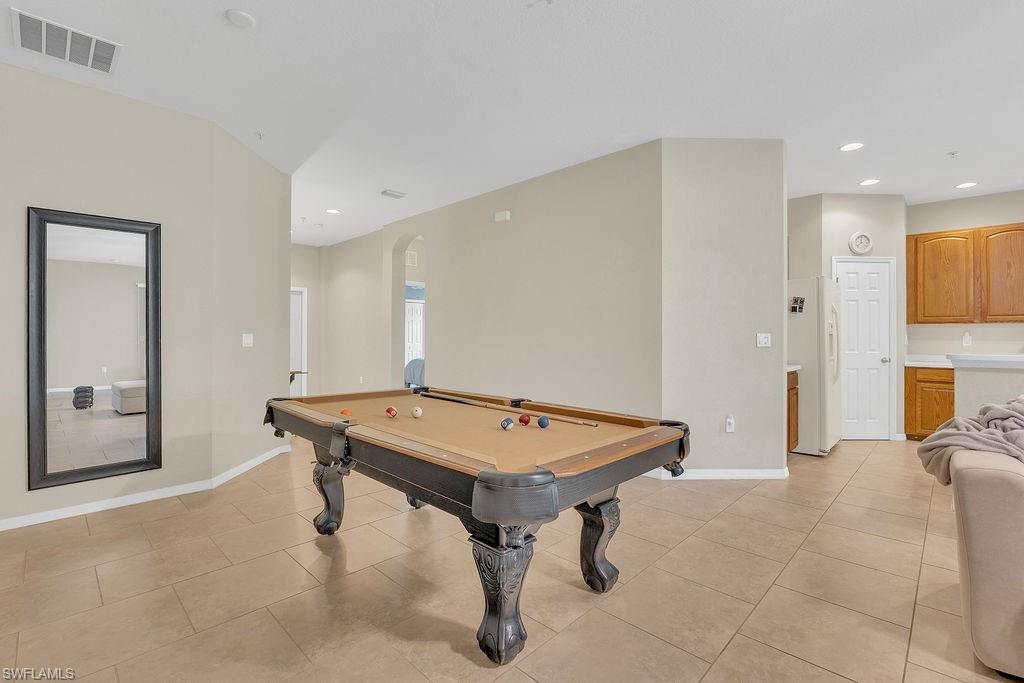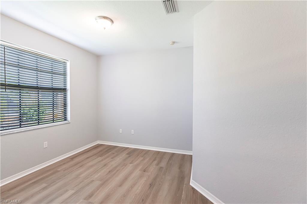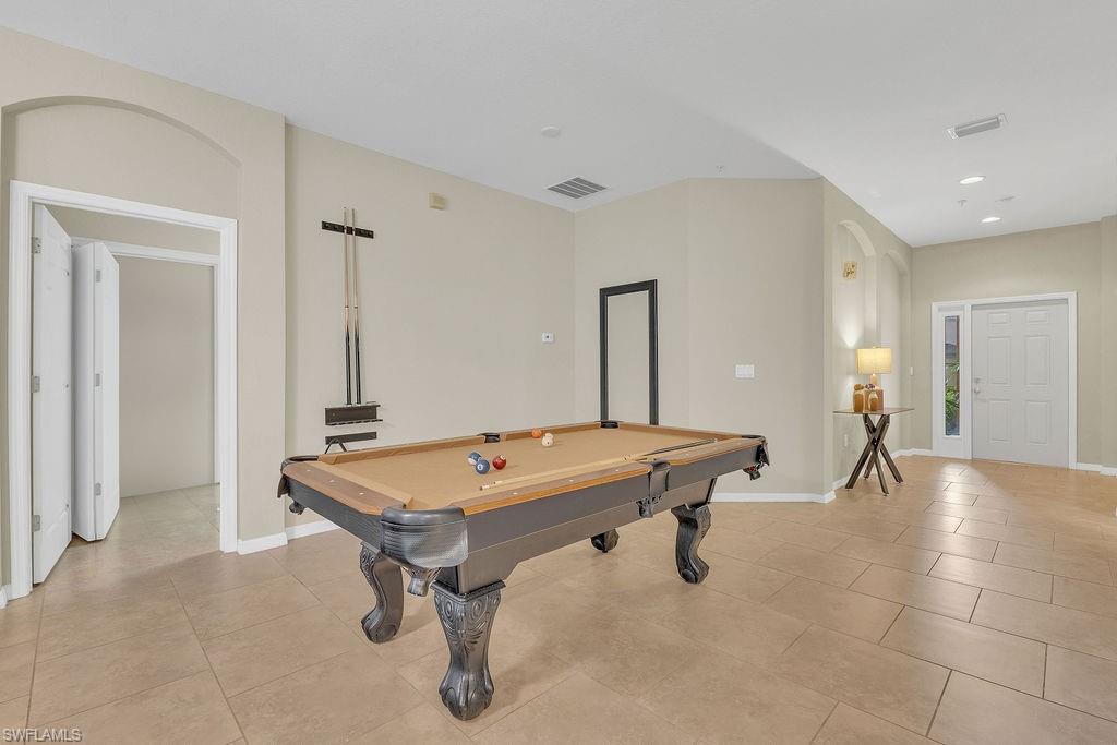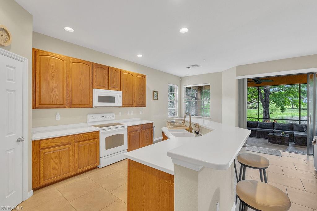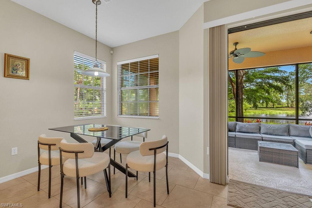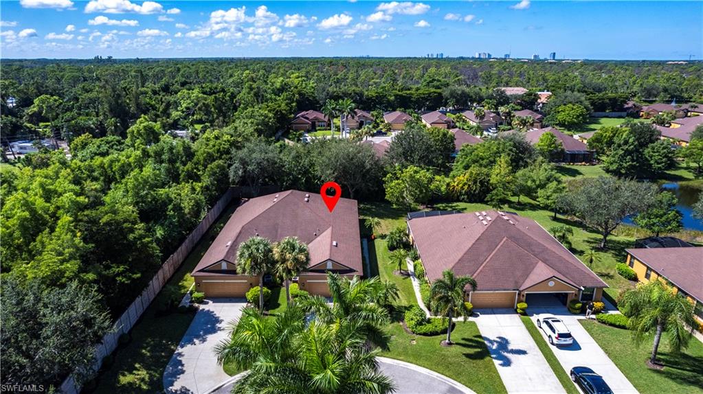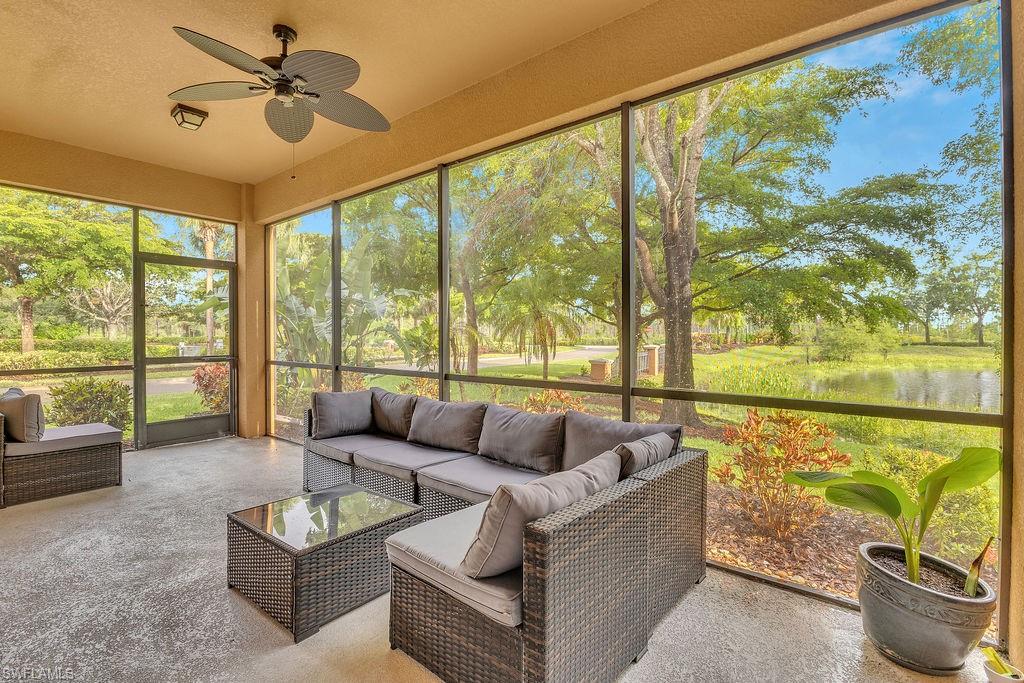 Owner ANXIOUS TO SELL and thus is PRICED TO SELL! BRING AN OFFER! Lowest Priced Condo in Terra Vista and this is a Gorgeous FIRST FLOOR condo in an "X" FEMA Zone which means you don't have to worry about any flooding and you don't have to pay for flood insurance! Also, the beauty of the FIRST FLOOR is there are NO STAIRS to climb! This meticulously maintained condo is virtually MAINTENANCE FREE with NO CARPET, just beautiful TILE and WOOD PLANK CERAMIC FLOORING throughout. Offering a split floor plan with 2 bedrooms, plus a den (which could be a 3rd bedroom), and an OPEN FLOOR PLAN with timeless wood cabinetry and granite counter tops. The kitchen offers high end Samsung appliances. The Primary Bedroom Suite is complete with a tiled walk-in shower & huge walk-in closet. Feel the peace on your lanai enjoying the birds and butterflies while overlooking the landscape views. There are new screens on the lanai and on the front door screen that prevents any bugs from entering, making it that much more enjoyable and even more private. Also, there are two roller blinds on the lanai for the ultimate in privacy. The A/C system was replaced in 2024! ELECTRIC, WATER AND CABLE ARE INCLUDED IN THE HOA! Terra Vista offers a private gated community with a relaxing community pool and clubhouse. It is located west of US-41 and north of Corkscrew Rd, so it is close to the beaches, close to fabulous restaurants, 20 minutes to RSW Airport. Just minutes to local grocery stores and shopping, to Coconut Point Outdoor Mall, and to Miromar Outlet Mall.