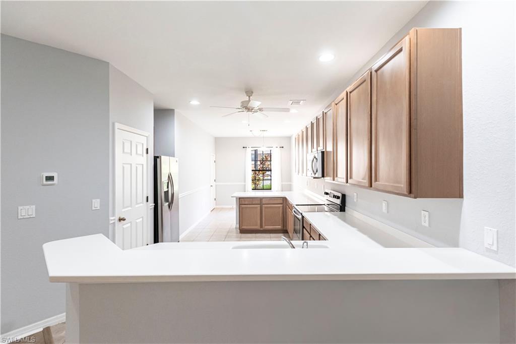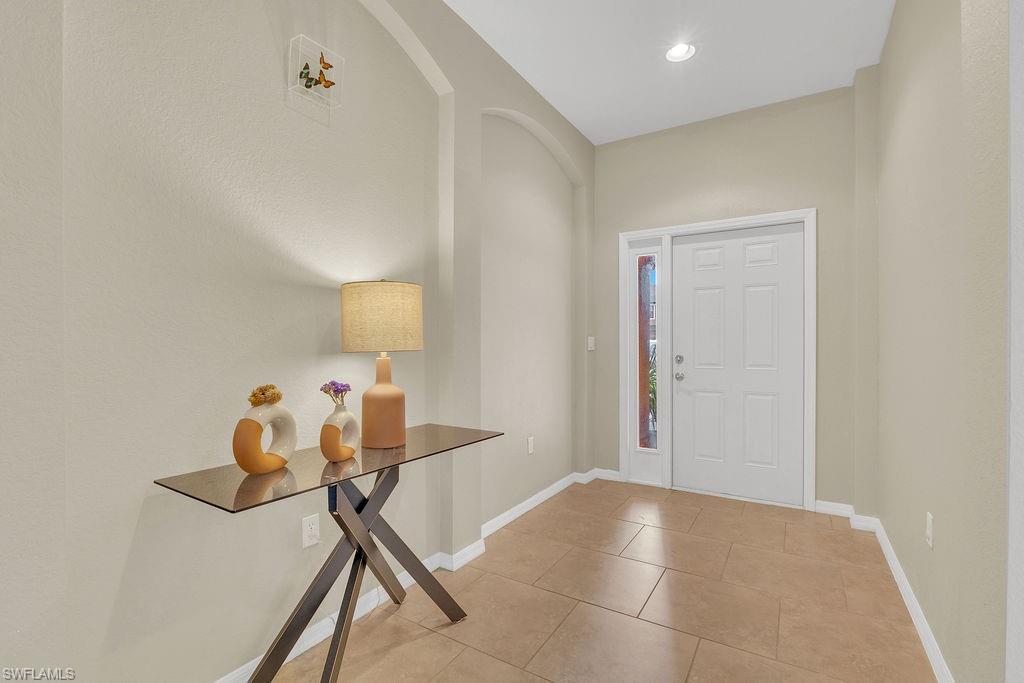 Endless possibilities await you at 3781 Costa Maya Way, #101, in Terra Vista of Estero. Feel instantly at home in this spacious, stunning, first-floor end unit offering three bedrooms and two baths. This private retreat is nestled among lush tropical landscaping in the heart of Estero. Guests will appreciate the abundant parking with a two-car garage and exceptionally long, rare driveway. The expansive split floor plan features a luxurious master suite with dual vanities, oversized walk-in closet, garden tub, and walk-in shower. There’s space for everyone with two additional bedrooms, a formal dining area, and a large, screened lanai. Ample storage can be found in the large laundry room. Enjoy high ceilings and stylish architectural arches. The roomy eat-in kitchen boasts tall wood cabinetry and a large pantry. Terra Vista is a charming, gated community in the heart of Estero, featuring a spacious community pool and inviting clubhouse. A PRIME LOCATION—just minutes from shopping, dining, and convenient access to both US 41 and I-75. This home truly has everything you're looking for!