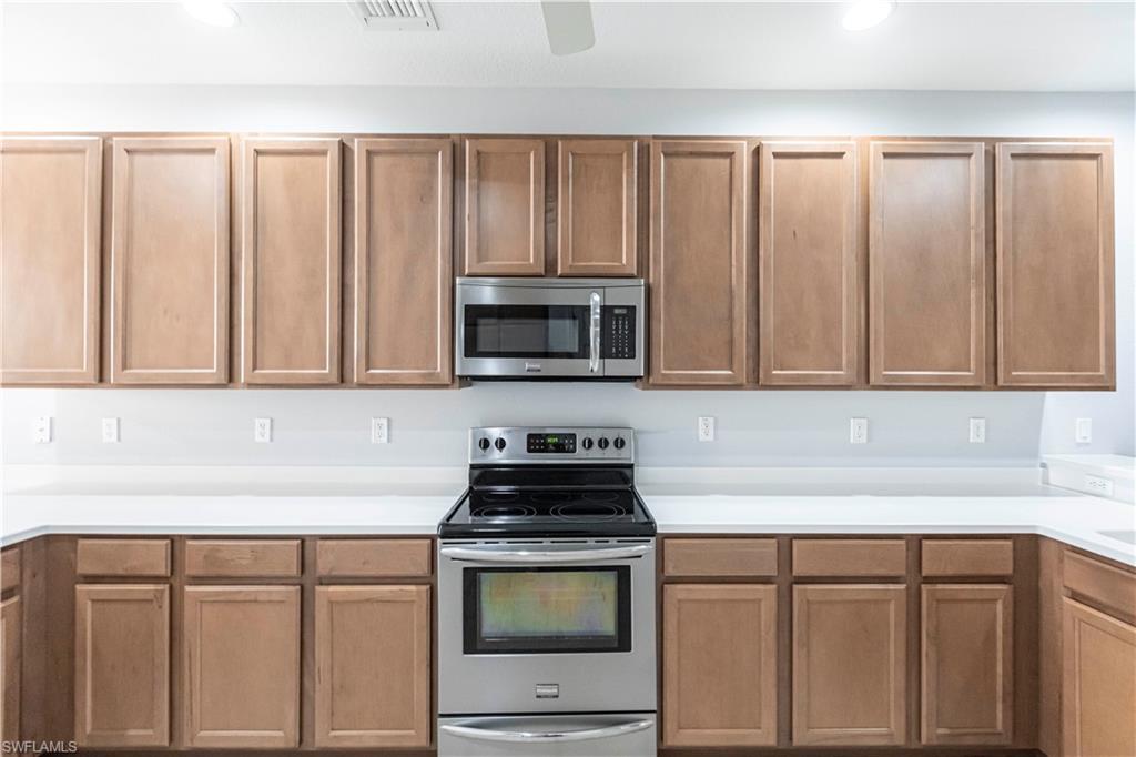 The opportunities are ENDLESS at 3799 Costa Maya Way #202 in Terra Vista of Estero. You will feel right at home in this HUGE, beautiful, and spacious second floor end unit with Four bedrooms and two bathrooms. Your family will love this private oasis--surrounded by lush tropical landscaping and located on a quiet Cul de sac. You will have plenty of room for guest parking with an attached two car garage along with a very rare, extremely long driveway. You will love this expansive split floor plan which offers a huge master retreat--complete with dual vanities, an extra-large walk-in closet, garden tub, and walk in shower! Plenty of room for everyone with three additional bedrooms, a formal dining room, bonus office nook, and a large screened in lanai. You will find a ton of storage, as every bedroom features a large walk-in closet. This unit lives like a palace with vast open living space, high ceilings, and beautiful architectural arches throughout. Large eat-in kitchen with upgraded stainless-steel appliances, extra tall wood cabinets and a large pantry. Terra Vista is a beautiful, gated community in the heart of Estero with a large community pool and clubhouse. PERFECT LOCATION...close to shopping and dining, and easy access to both US 41 and I-75.