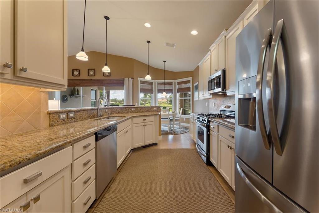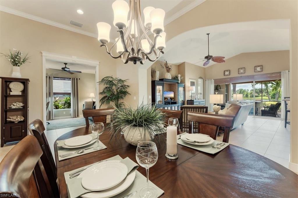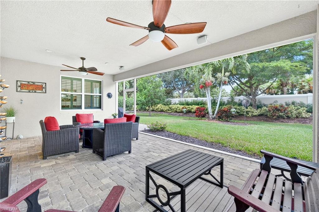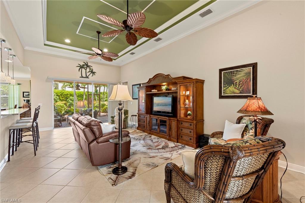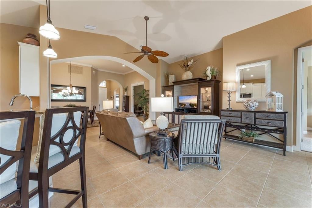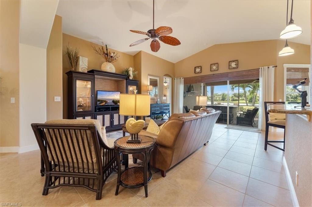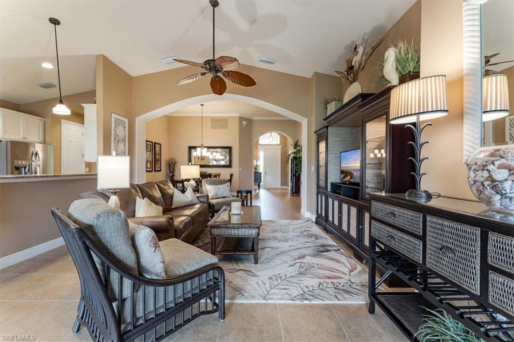 Experience the perfect blend of comfort, style, and convenience in this beautifully maintained single-story residence nestled within one of Southwest Florida’s most desirable communities. Designed with vaulted ceilings and an open-concept floor plan, this home offers a bright and spacious layout that seamlessly connects the main living areas—ideal for entertaining or relaxing in effortless comfort. The kitchen features newer stainless-steel appliances, including a gas stove, and a charming breakfast nook with a bay window that fills the space with warm natural light. It flows gracefully into the dining and great room, creating an inviting atmosphere perfect for gatherings. Throughout the home, ceiling fans are conveniently controlled by remote, adding ease and comfort to daily living. Large sliding doors open to the screened lanai, where you can enjoy morning coffee or evening breezes surrounded by lush tropical landscaping. The spacious primary suite offers a peaceful retreat, complemented by well-appointed guest rooms that provide privacy for family and visitors alike, as well as tub and shower combo in guest bath. Perfectly situated just steps from the community’s resort-style amenities, you’ll enjoy easy access to the clubhouse, fitness center, pool, and social spaces that make this neighborhood so special. Whether you’re looking for a full-time residence or seasonal retreat, this home captures the best of the Southwest Florida lifestyle—where everyday living feels like a vacation.