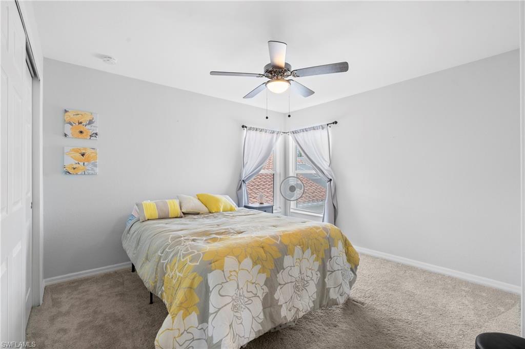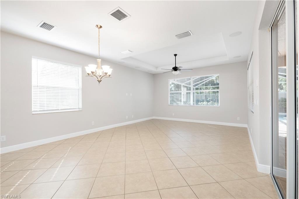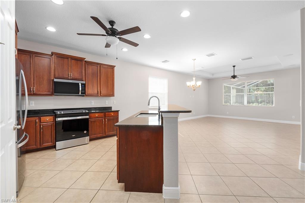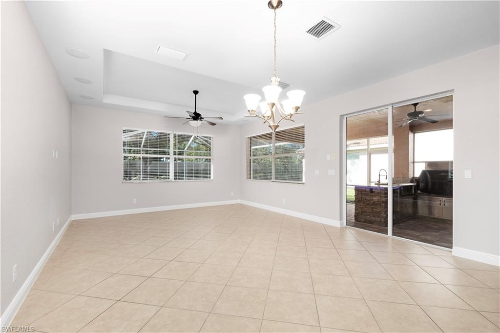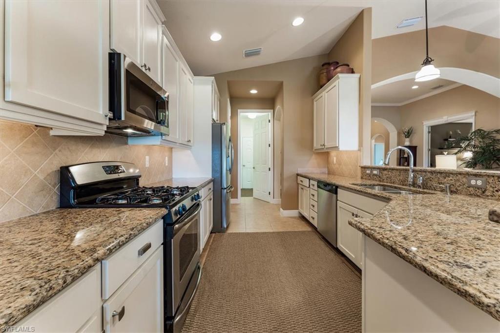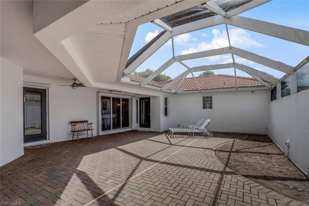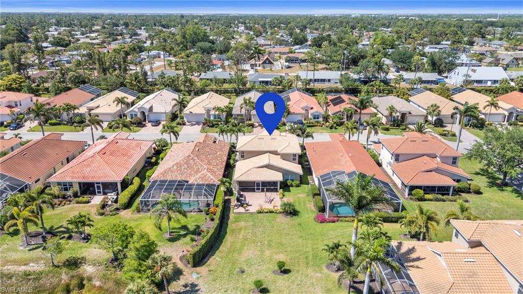 Experience the perfect blend of comfort, style, and convenience in this beautifully maintained single-story residence nestled within one of Southwest Florida’s most desirable communities. Designed with vaulted ceilings and an open-concept floor plan, this home offers a bright and spacious layout that seamlessly connects the main living areas—ideal for entertaining or relaxing in effortless comfort. The kitchen features newer stainless-steel appliances, including a gas stove, and a charming breakfast nook with a bay window that fills the space with warm natural light. It flows gracefully into the dining and great room, creating an inviting atmosphere perfect for gatherings. Throughout the home, ceiling fans are conveniently controlled by remote, adding ease and comfort to daily living. Large sliding doors open to the screened lanai, where you can enjoy morning coffee or evening breezes surrounded by lush tropical landscaping. The spacious primary suite offers a peaceful retreat, complemented by well-appointed guest rooms that provide privacy for family and visitors alike, as well as tub and shower combo in guest bath. Perfectly situated just steps from the community’s resort-style amenities, you’ll enjoy easy access to the clubhouse, fitness center, pool, and social spaces that make this neighborhood so special. Whether you’re looking for a full-time residence or seasonal retreat, this home captures the best of the Southwest Florida lifestyle—where everyday living feels like a vacation.