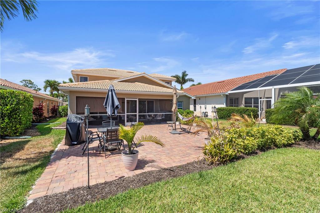 Welcome to this rarely available 2012-built Brevia floor plan with a private pool in the highly sought-after community of The Reserve at Estero! This thoughtfully designed home offers 2 bedrooms, a versatile den, 2 full baths, and a light-filled open-concept layout perfect for comfortable living and entertaining. The heart of the home is a spacious great room with tall volume ceilings, creating an airy and inviting space that flows seamlessly into the modern kitchen—complete with stainless steel appliances, granite countertops, and ample cabinetry. Storm protection includes shutters on all windows and an electric roll-down screen on the lanai, offering added peace of mind with the touch of a button. Step outside to your private backyard oasis, where a sparkling pool awaits—ideal for enjoying sunny Florida days or evening swims under the stars. The extended lanai and beautifully landscaped yard, complete with a striking Hong Kong Orchid tree, create a serene and secluded setting you’ll love coming home to. Located west of I-75 and centrally positioned between Naples and Fort Myers, The Reserve at Estero is a natural gas community offering resort-style amenities including a clubhouse, resort pool and spa, fitness center, tennis, pickleball, basketball, billiards, a library, and a play area. Just minutes from Coconut Point Mall, Miromar Outlets, FGCU, RSW Airport, and the beautiful Gulf beaches. Don’t miss your opportunity to own this exceptional pool home in one of Estero’s most desirable communities—schedule your private showing today!