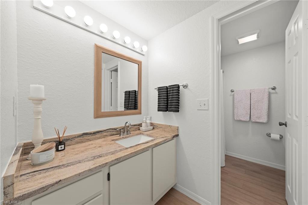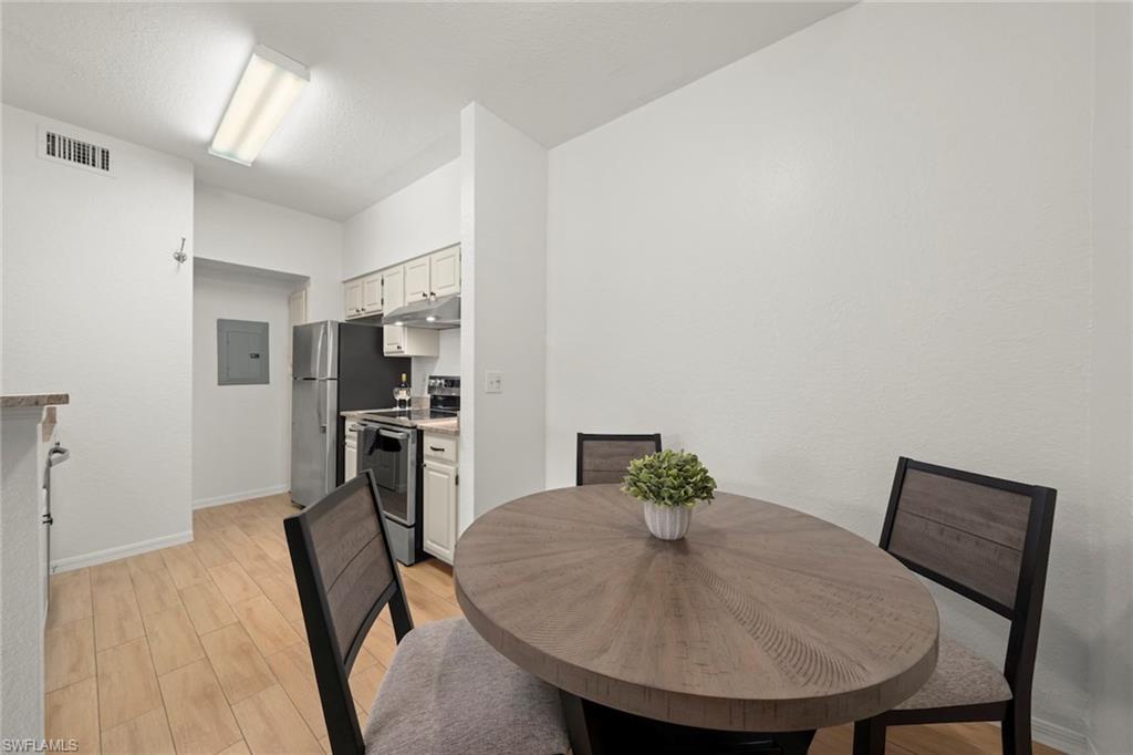 Welcome to this beautifully updated top-floor 1-bedroom, 1-bath condo in the gated community of The Tides at Pelican Landing. Fully remodeled in 2022 with over $50K in upgrades, this stylish unit features luxury vinyl flooring throughout, white shaker cabinets, granite countertops, an eat-in kitchen nook, and a center island with bar seating. Enjoy the peace and privacy of having no upstairs neighbors, plus added value with impact-resistant windows, a new A/C and stove in 2023, and a new water heater in 2024. The community offers lush landscaping and resort-style amenities including a pool, clubhouse, tennis/pickleball courts, basketball, and sand volleyball. Perfectly located across from Coconut Point Mall, close to the airport, and just 5 miles from Bonita Beach, this condo makes an excellent full-time residence or income-producing investment. Milestone Inspection Report Completed and Passed! Don’t delay—get your slice of paradise today!