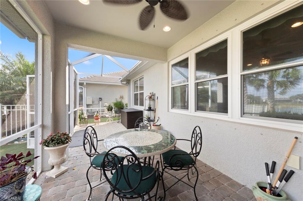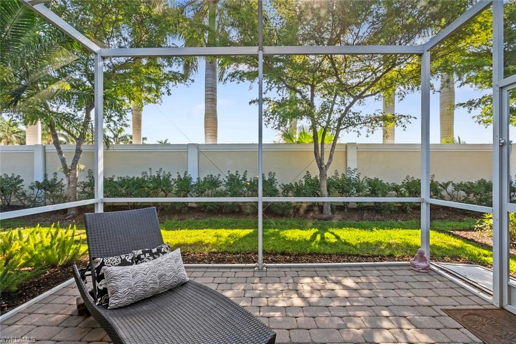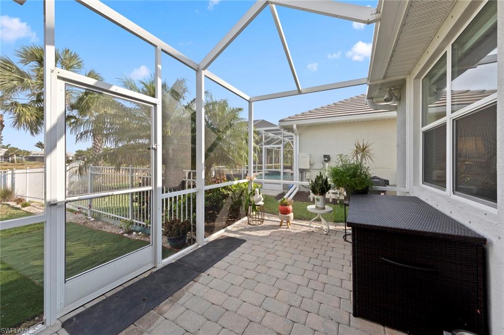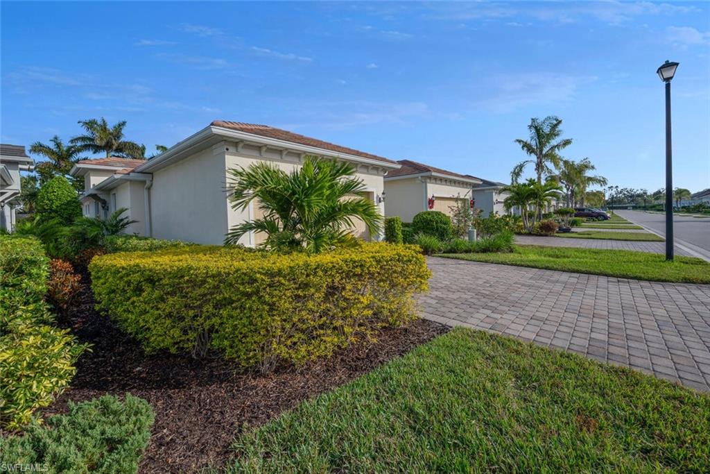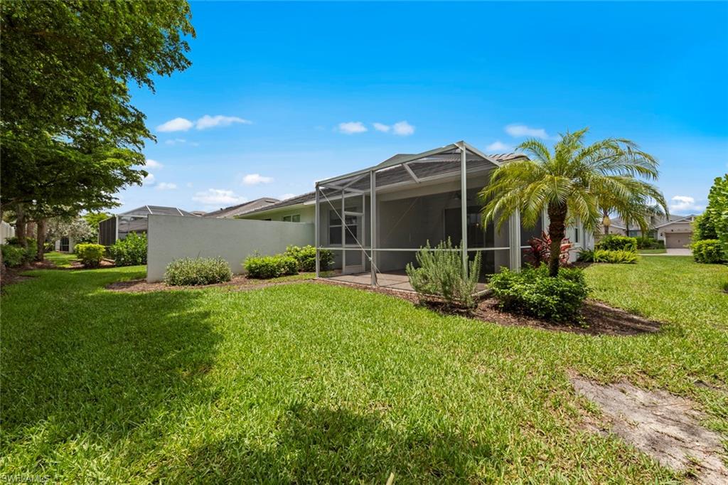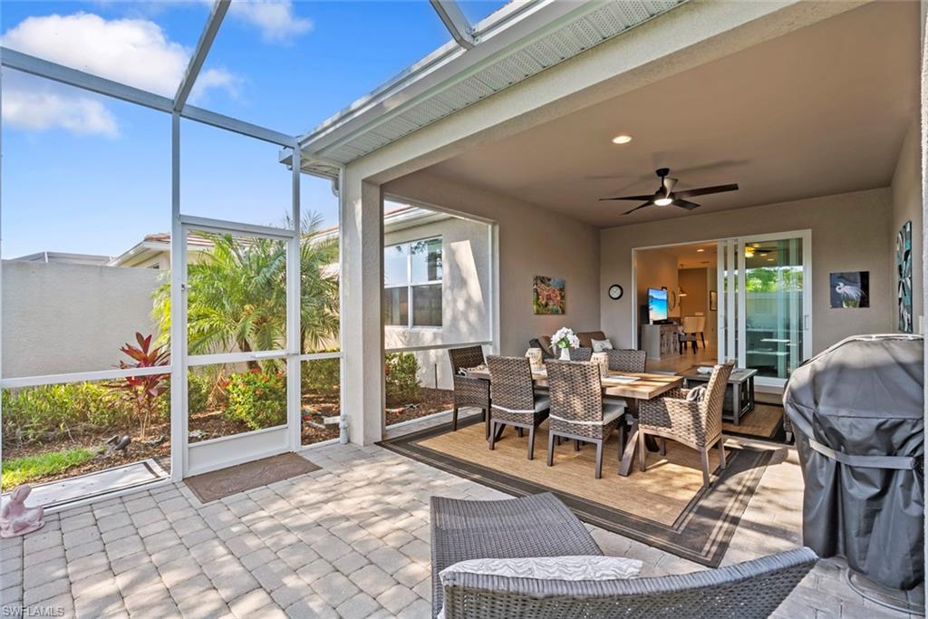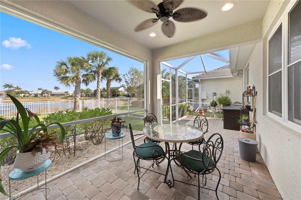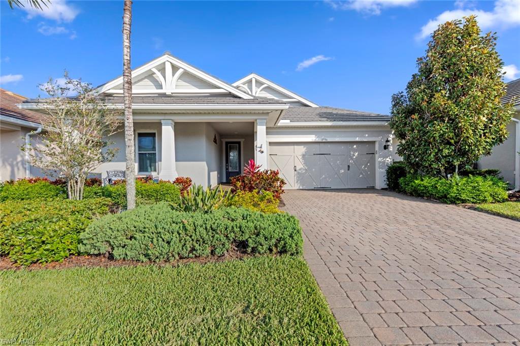 Welcome home to this stunning property located in the coveted city of Estero. Move right into this 2 bedroom/2bath+den TURNKEY villa in the luxurious 55+ Del Webb Community, loaded with wonderful amenities. Quartz countertops, stainless steel appliances, natural gas cooktop, 42” cabinets, updated light fixtures, Hunter Douglas window treatments, and new ultra-violet HVAC system are among the many features of this beautifully maintained and tastefully decorated home. The split bedroom floorplan allows privacy for you and your guests, and the French-doors enclosed den works well as an office and spill-over bedroom. The two-car garage provides plenty of extra space for storage and the private lanai offers a peaceful place for enjoying morning coffee or evening beverages. The many amenities include resort-style heated pool, pool-side cabanas, spa, BBQ area, pickleball, bocce, tennis, fitness center, dog park, community garden, lakeside outdoor bar, meeting & greeting spaces plus onsite management for resident convenience and community maintenance. Landscaping, irrigation, gated entries, exterior pest control and professional property management included in low quarterly HOA; NO CDD FEES, NO MANDATORY CLUB FEES AND NO FLOOD ZONE!! Schedule your showing today!