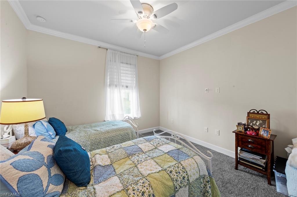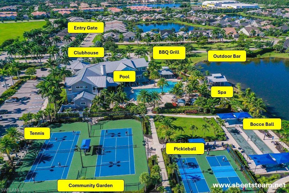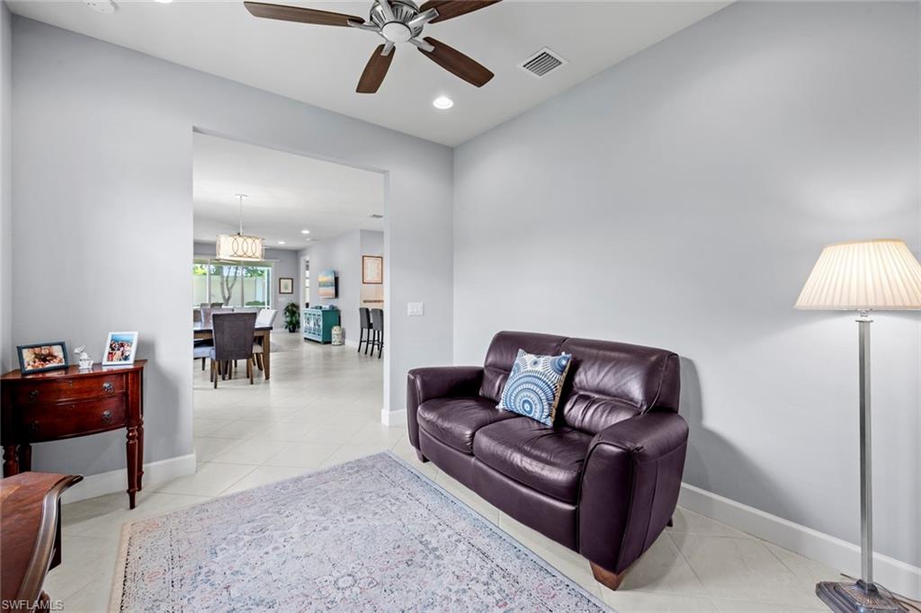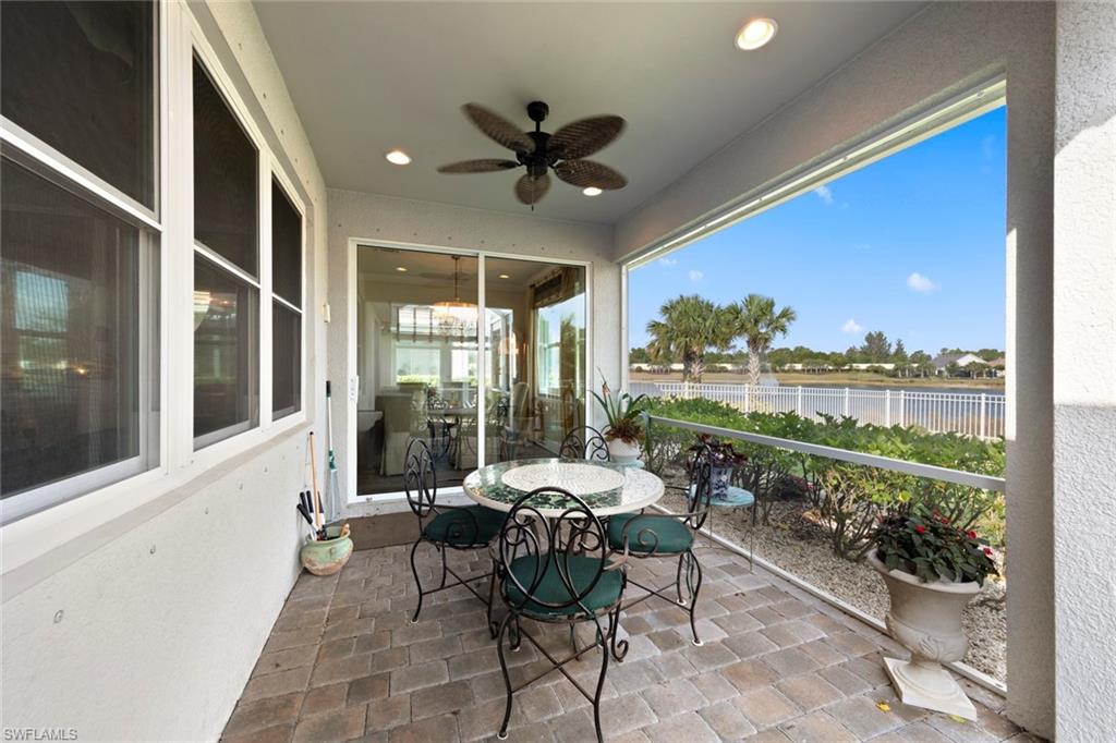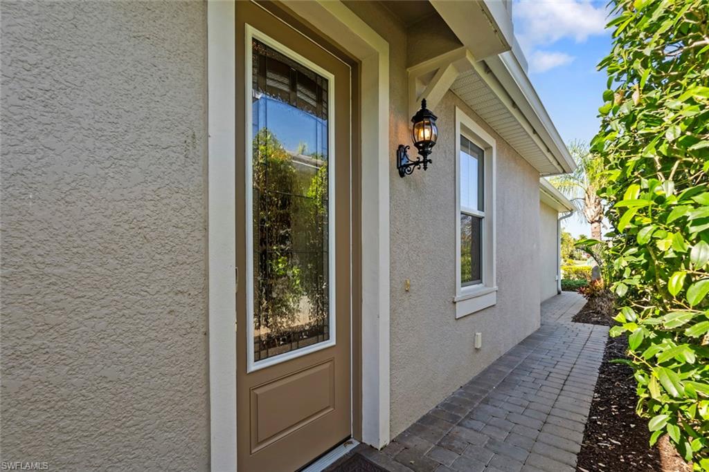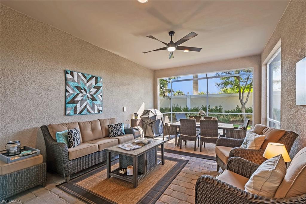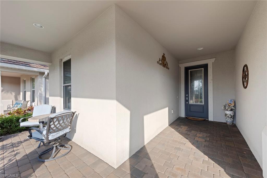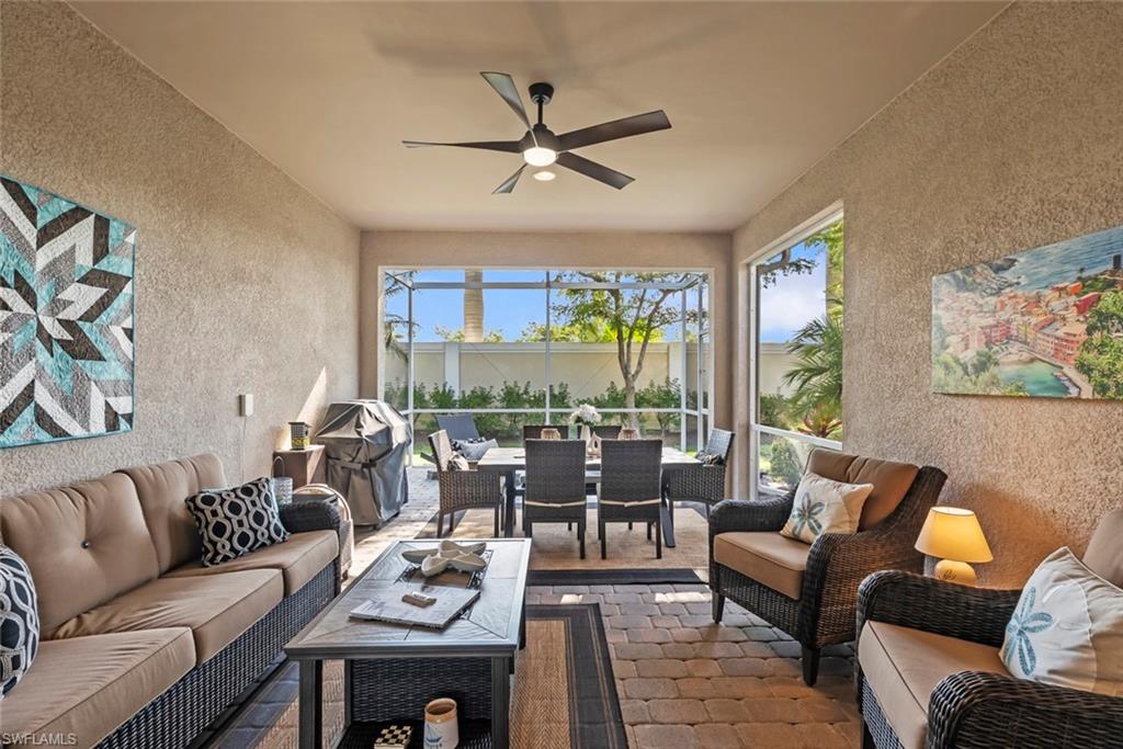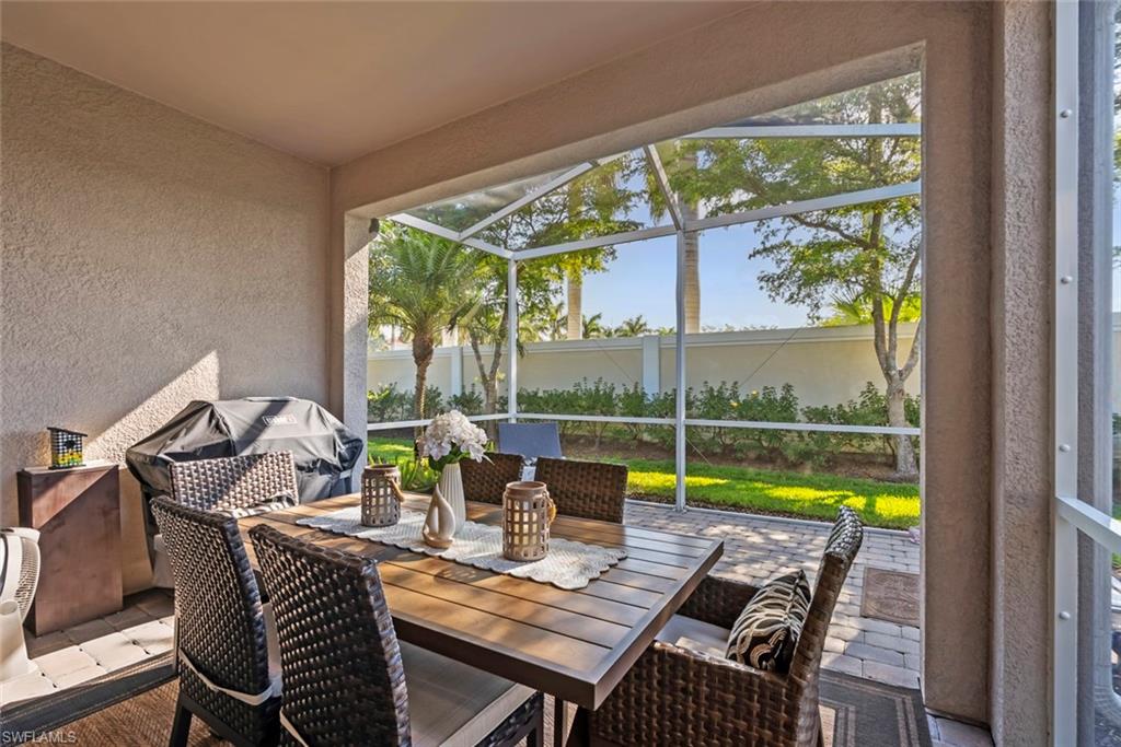 Welcome home to this stunning property located in the coveted city of Estero. Move right into this 2 bedroom/2bath+den TURNKEY villa in the luxurious 55+ Del Webb Community, loaded with wonderful amenities. Quartz countertops, stainless steel appliances, natural gas cooktop, 42” cabinets, updated light fixtures, Hunter Douglas window treatments, and new ultra-violet HVAC system are among the many features of this beautifully maintained and tastefully decorated home. The split bedroom floorplan allows privacy for you and your guests, and the French-doors enclosed den works well as an office and spill-over bedroom. The two-car garage provides plenty of extra space for storage and the private lanai offers a peaceful place for enjoying morning coffee or evening beverages. The many amenities include resort-style heated pool, pool-side cabanas, spa, BBQ area, pickleball, bocce, tennis, fitness center, dog park, community garden, lakeside outdoor bar, meeting & greeting spaces plus onsite management for resident convenience and community maintenance. Landscaping, irrigation, gated entries, exterior pest control and professional property management included in low quarterly HOA; NO CDD FEES, NO MANDATORY CLUB FEES AND NO FLOOD ZONE!! Schedule your showing today!