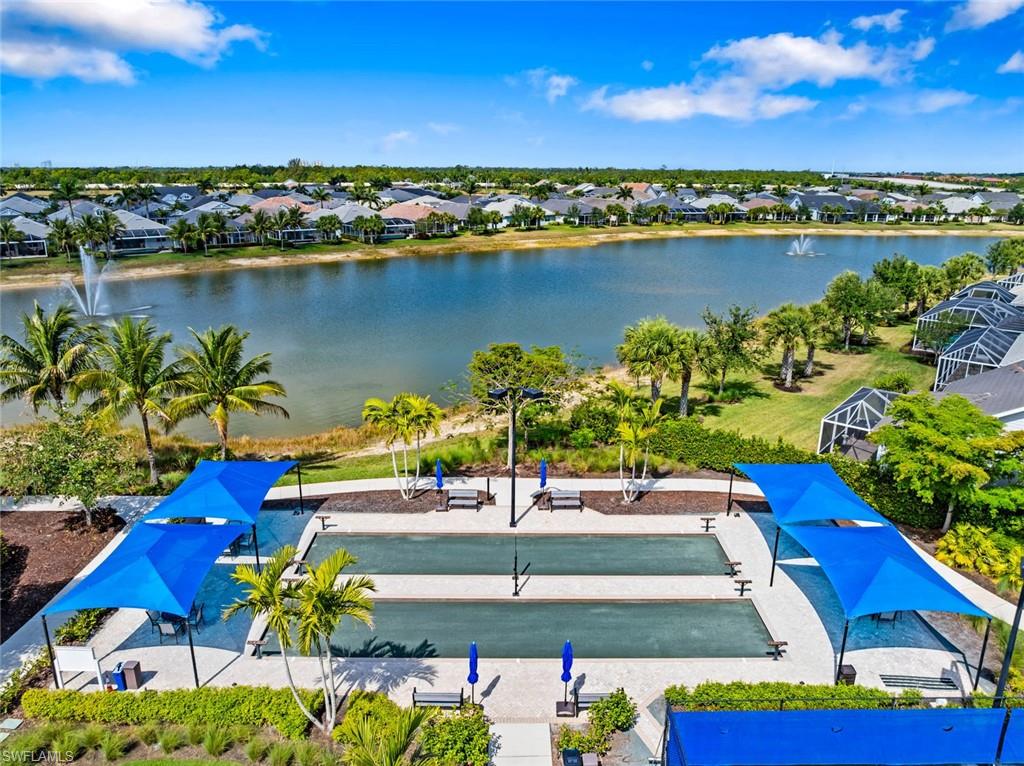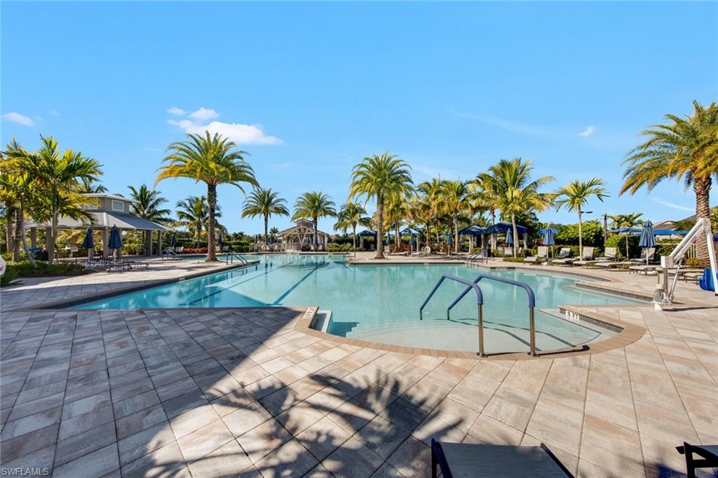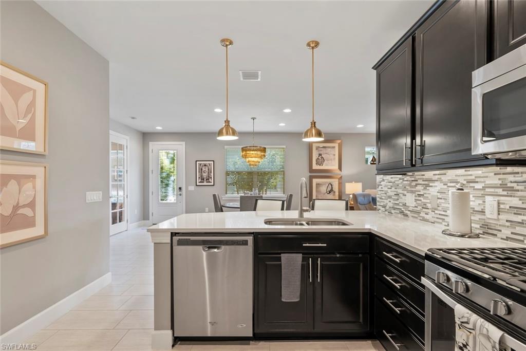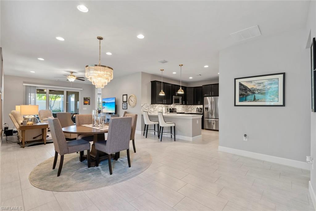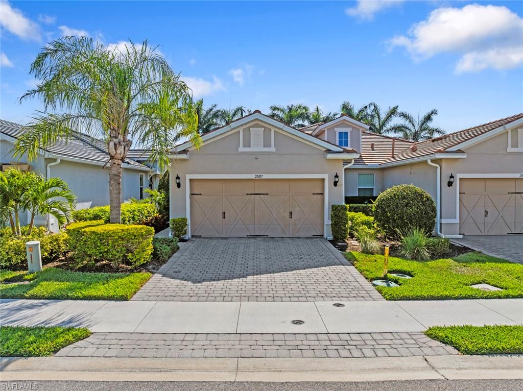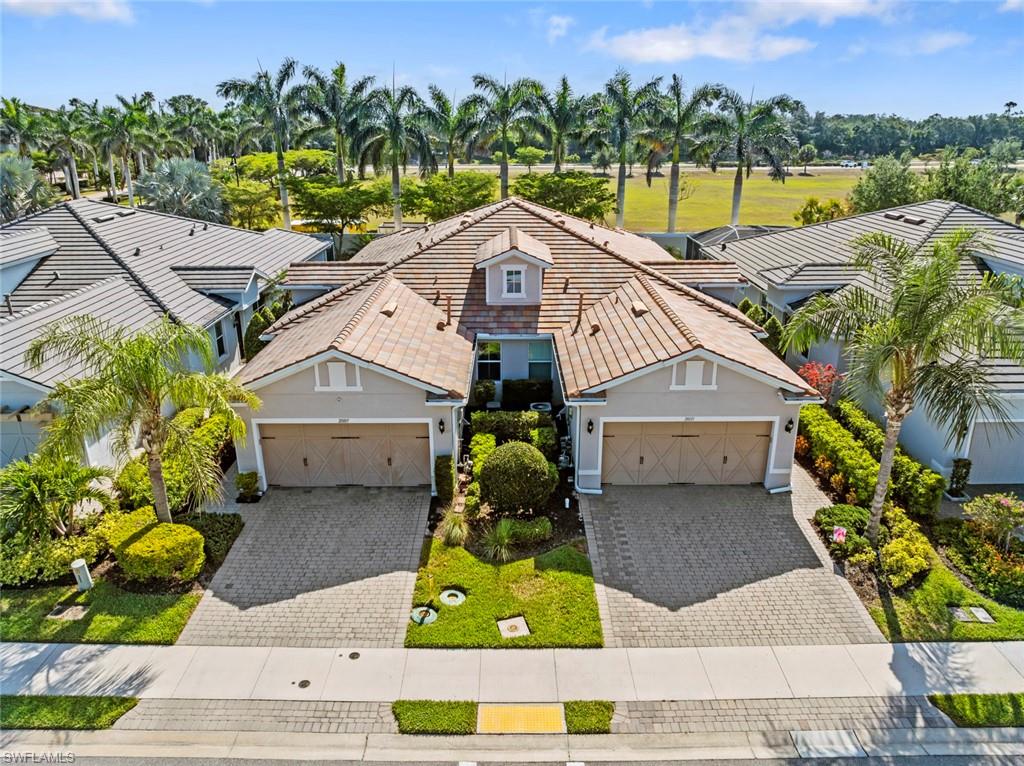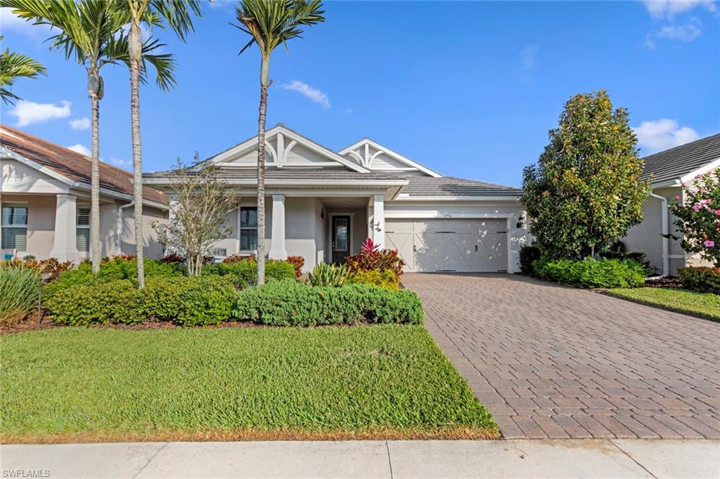 Incredible opportunity! Call today to schedule your private showing of this STUNNING 2 bedroom, 2 bath, plus DEN, attached 2 car garage, villa in one of the area's premier 55+ communities ... Tidewater by Del Webb! Your new home feels like a NEW home ~ as it's been occupied roughly only 3 years since it was built! As you step inside you'll immediately notice the staggered plank tile throughout the entire home; making home maintenance incredibly easy! The kitchen is absolutely gorgeous and boasts a GAS RANGE, pantry, breakfast bar, Expresso hard wood cabinetry, glass tile backsplash, and stainless appliances. The adjacent great room, with combination dining and living areas, is light and bright with transom windows, additional recessed lighting, and sliders that lead to your screened, OVERSIZED, lanai! With upgraded dropped tray ceiling - you'll be amazed at how spacious your new primary suite feels! Other features include double sinks, walk-in shower, separate water closet and walk-in closet. Just outside the guest room is the second bath with upgraded shower complete with tile that runs to the ceiling, glass tile accents and linen closet. With pocket slider that closes off the guest room and bath, essentially making it an additional en suite, guests will love the privacy! The den, closed off by French doors, could easily be utilized as a third bedroom, or could be the perfect space for home office, gym or craft room. The expansive lanai offers a secluded feel with privacy wall in the back additional and an additional privacy wall on the side; making it the perfect place to entertain. Plus, it's already pre-plumbed for a summer kitchen and offers a natural gas line for your grilling needs. You'll also appreciate the impact windows and doors for extra efficiency! And the community? Second to none! Del Webb's Tidewater offers a 13,000 sq ft amenity center that includes a resort style heated pool (with lanes for laps), poolside cabanas, BBQ grills, clubhouse, fitness center (with a myriad of classes), tennis, pickleball, and bocce courts, dog park, spa, library, and business center. From games, clubs and fitness classes, to excursions, educational lectures and social gatherings, Tidewater has something for everyone! Copy/follow this link to view their community calendar! #!calendar. It's true what they say ~ location, location, location! Here you 1.5 miles from the renowned Miromar Outlets, only 3 miles to Gulf Coast Town Center, and 5.5 miles to Coconut Point Mall! At Tidewater you are in the heart of what SW Florida has to offer ... not only endless sunshine, but also incredible access to a myriad of shopping, dining and healthcare options. Plus, only 8 miles from RSW International Airport so easy fly in-fly out! For beachgoers, Barefoot Beach is a short 8 mile drive. This isn't just the home you've been looking for, it's your new lifestyle. Call today!