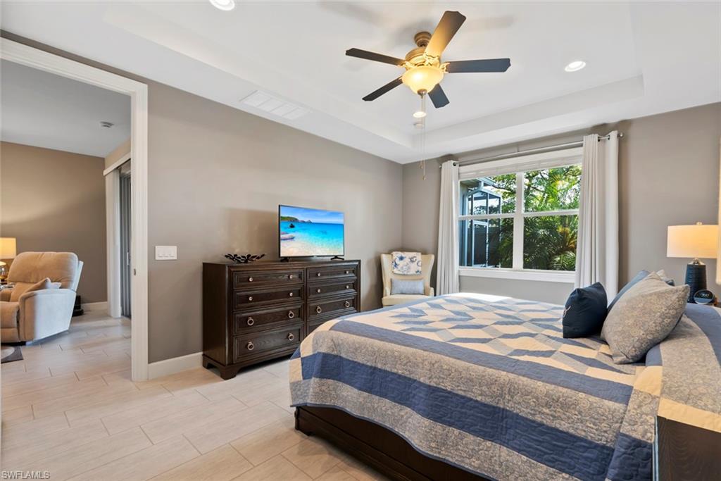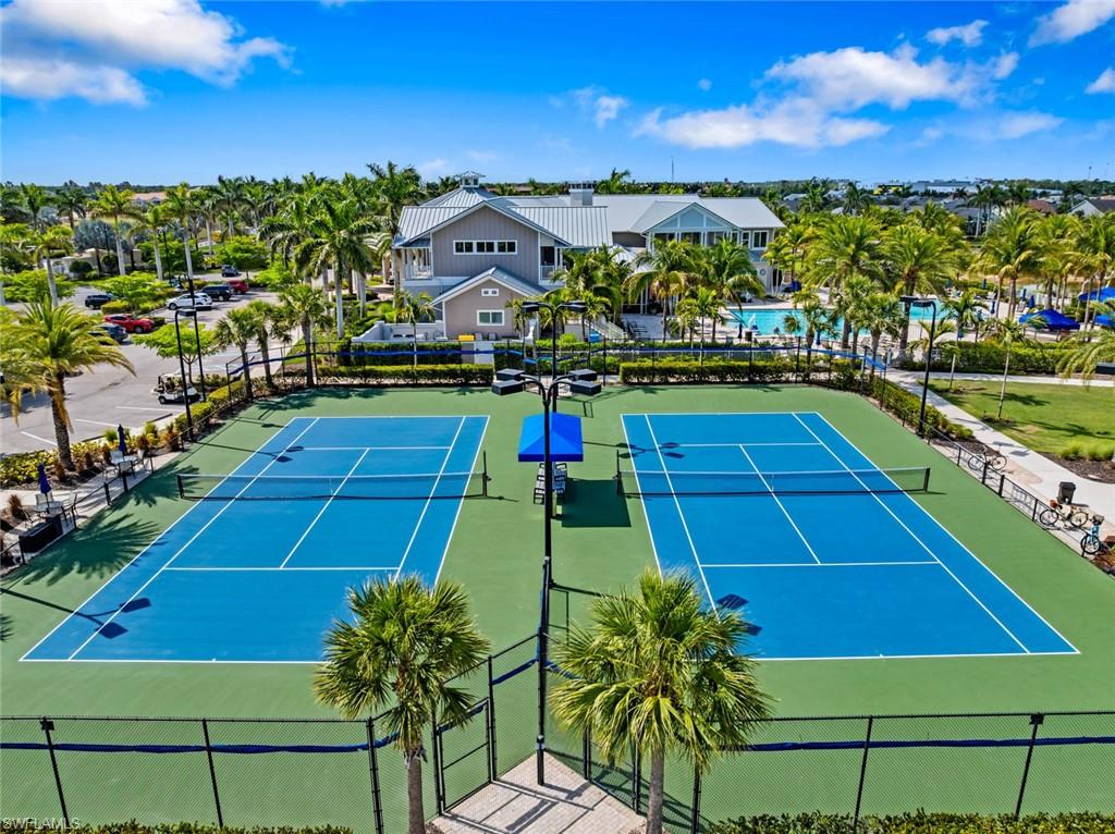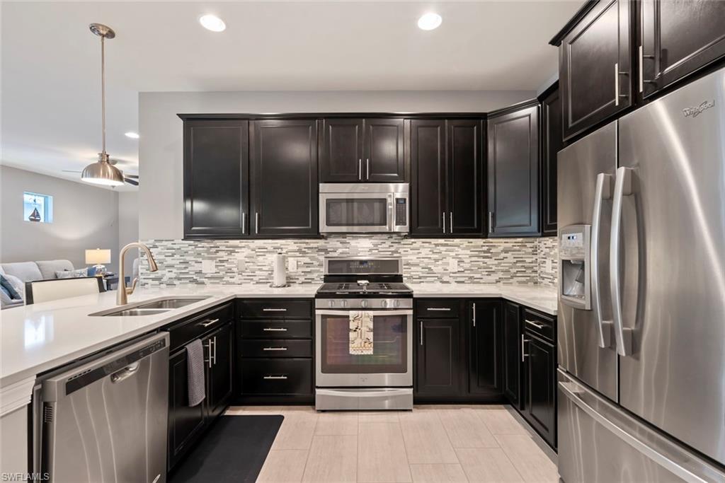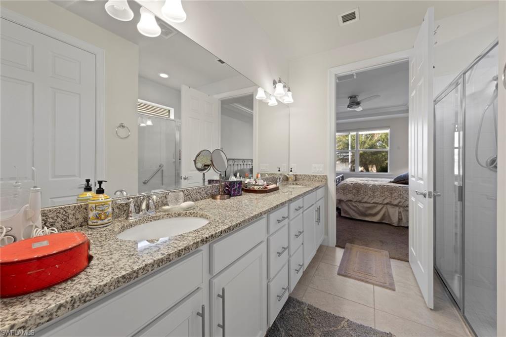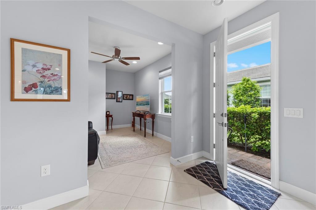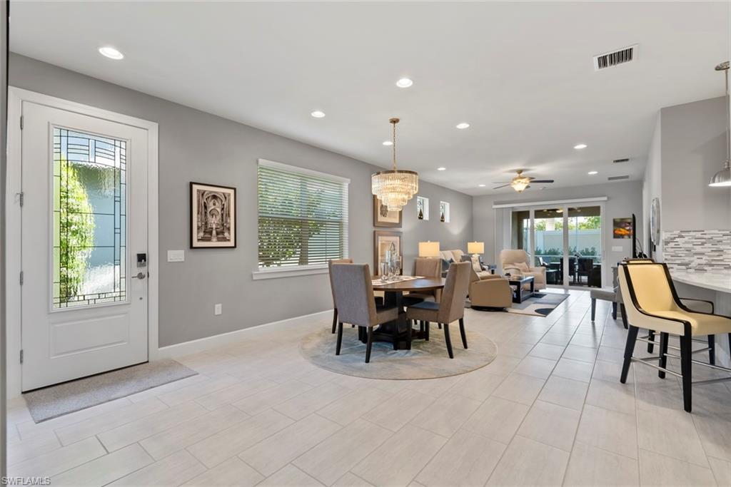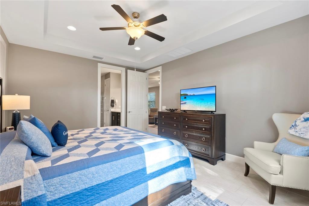 Incredible opportunity! Call today to schedule your private showing of this STUNNING 2 bedroom, 2 bath, plus DEN, attached 2 car garage, villa in one of the area's premier 55+ communities ... Tidewater by Del Webb! Your new home feels like a NEW home ~ as it's been occupied roughly only 3 years since it was built! As you step inside you'll immediately notice the staggered plank tile throughout the entire home; making home maintenance incredibly easy! The kitchen is absolutely gorgeous and boasts a GAS RANGE, pantry, breakfast bar, Expresso hard wood cabinetry, glass tile backsplash, and stainless appliances. The adjacent great room, with combination dining and living areas, is light and bright with transom windows, additional recessed lighting, and sliders that lead to your screened, OVERSIZED, lanai! With upgraded dropped tray ceiling - you'll be amazed at how spacious your new primary suite feels! Other features include double sinks, walk-in shower, separate water closet and walk-in closet. Just outside the guest room is the second bath with upgraded shower complete with tile that runs to the ceiling, glass tile accents and linen closet. With pocket slider that closes off the guest room and bath, essentially making it an additional en suite, guests will love the privacy! The den, closed off by French doors, could easily be utilized as a third bedroom, or could be the perfect space for home office, gym or craft room. The expansive lanai offers a secluded feel with privacy wall in the back additional and an additional privacy wall on the side; making it the perfect place to entertain. Plus, it's already pre-plumbed for a summer kitchen and offers a natural gas line for your grilling needs. You'll also appreciate the impact windows and doors for extra efficiency! And the community? Second to none! Del Webb's Tidewater offers a 13,000 sq ft amenity center that includes a resort style heated pool (with lanes for laps), poolside cabanas, BBQ grills, clubhouse, fitness center (with a myriad of classes), tennis, pickleball, and bocce courts, dog park, spa, library, and business center. From games, clubs and fitness classes, to excursions, educational lectures and social gatherings, Tidewater has something for everyone! Copy/follow this link to view their community calendar! #!calendar. It's true what they say ~ location, location, location! Here you 1.5 miles from the renowned Miromar Outlets, only 3 miles to Gulf Coast Town Center, and 5.5 miles to Coconut Point Mall! At Tidewater you are in the heart of what SW Florida has to offer ... not only endless sunshine, but also incredible access to a myriad of shopping, dining and healthcare options. Plus, only 8 miles from RSW International Airport so easy fly in-fly out! For beachgoers, Barefoot Beach is a short 8 mile drive. This isn't just the home you've been looking for, it's your new lifestyle. Call today!
