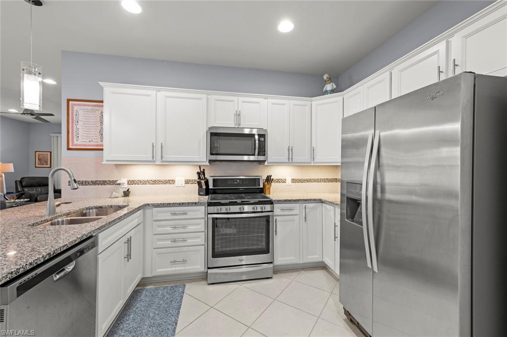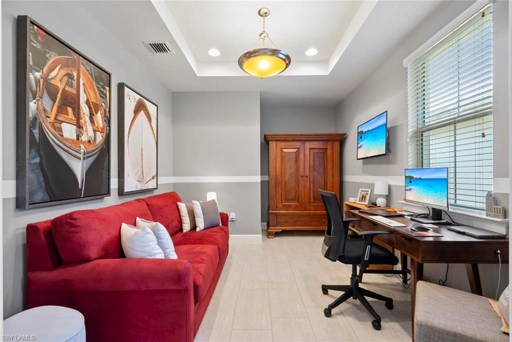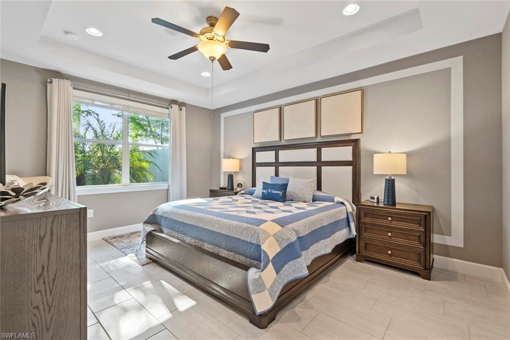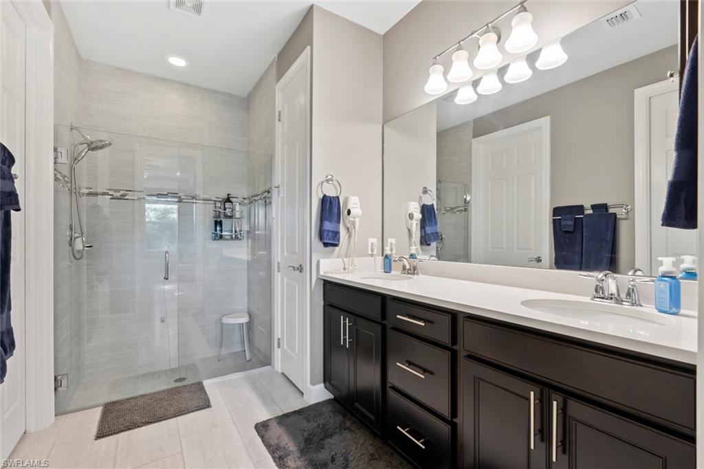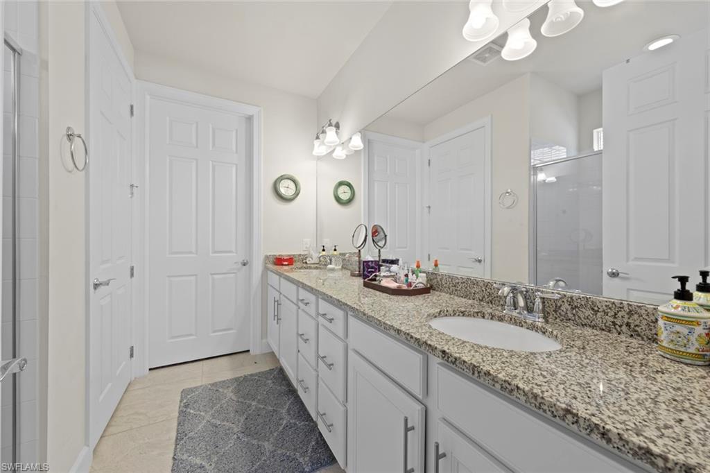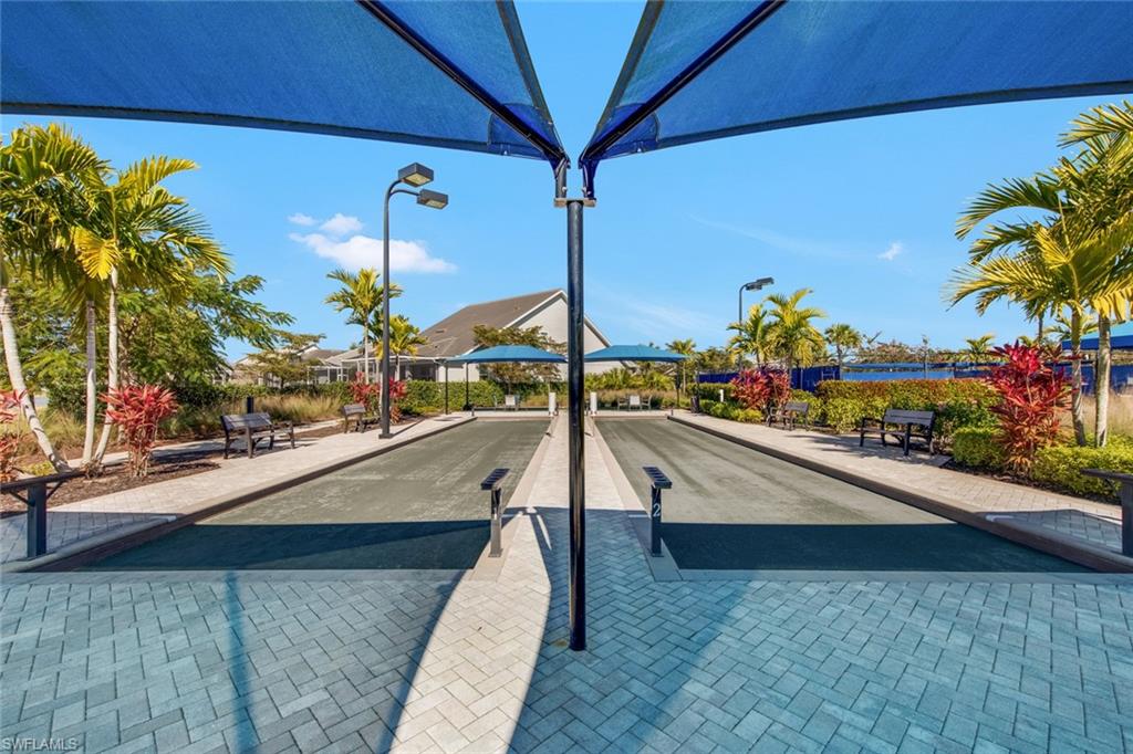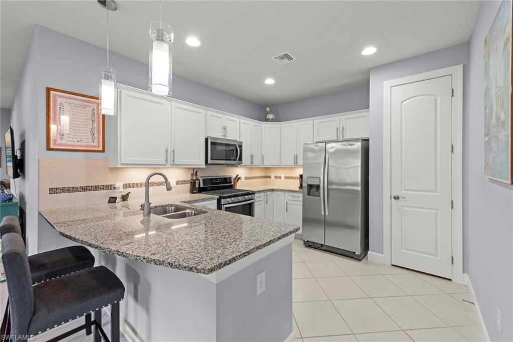Incredible opportunity! Call today to schedule your private showing of this STUNNING 2 bedroom, 2 bath, plus DEN, attached 2 car garage, villa in one of the area's premier 55+ communities ... Tidewater by Del Webb! Your new home feels like a NEW home ~ as it's been occupied roughly only 3 years since it was built! As you step inside you'll immediately notice the staggered plank tile throughout the entire home; making home maintenance incredibly easy! The kitchen is absolutely gorgeous and boasts a GAS RANGE, pantry, breakfast bar, Expresso hard wood cabinetry, glass tile backsplash, and stainless appliances. The adjacent great room, with combination dining and living areas, is light and bright with transom windows, additional recessed lighting, and sliders that lead to your screened, OVERSIZED, lanai! With upgraded dropped tray ceiling - you'll be amazed at how spacious your new primary suite feels! Other features include double sinks, walk-in shower, separate water closet and walk-in closet. Just outside the guest room is the second bath with upgraded shower complete with tile that runs to the ceiling, glass tile accents and linen closet. With pocket slider that closes off the guest room and bath, essentially making it an additional en suite, guests will love the privacy! The den, closed off by French doors, could easily be utilized as a third bedroom, or could be the perfect space for home office, gym or craft room. The expansive lanai offers a secluded feel with privacy wall in the back additional and an additional privacy wall on the side; making it the perfect place to entertain. Plus, it's already pre-plumbed for a summer kitchen and offers a natural gas line for your grilling needs. You'll also appreciate the impact windows and doors for extra efficiency! And the community? Second to none! Del Webb's Tidewater offers a 13,000 sq ft amenity center that includes a resort style heated pool (with lanes for laps), poolside cabanas, BBQ grills, clubhouse, fitness center (with a myriad of classes), tennis, pickleball, and bocce courts, dog park, spa, library, and business center. From games, clubs and fitness classes, to excursions, educational lectures and social gatherings, Tidewater has something for everyone! Copy/follow this link to view their community calendar! #!calendar. It's true what they say ~ location, location, location! Here you 1.5 miles from the renowned Miromar Outlets, only 3 miles to Gulf Coast Town Center, and 5.5 miles to Coconut Point Mall! At Tidewater you are in the heart of what SW Florida has to offer ... not only endless sunshine, but also incredible access to a myriad of shopping, dining and healthcare options. Plus, only 8 miles from RSW International Airport so easy fly in-fly out! For beachgoers, Barefoot Beach is a short 8 mile drive. This isn't just the home you've been looking for, it's your new lifestyle. Call today!