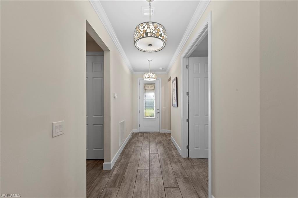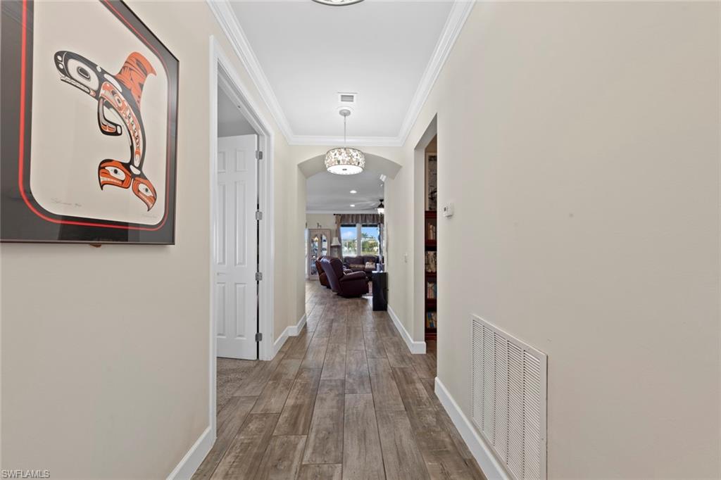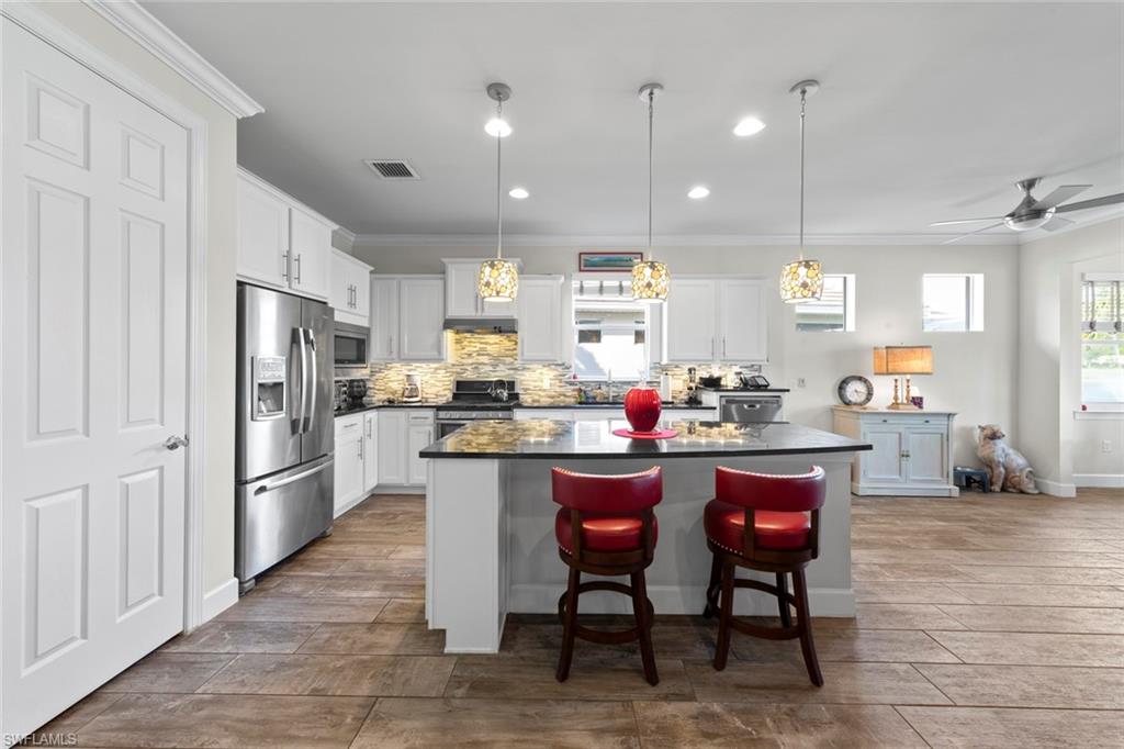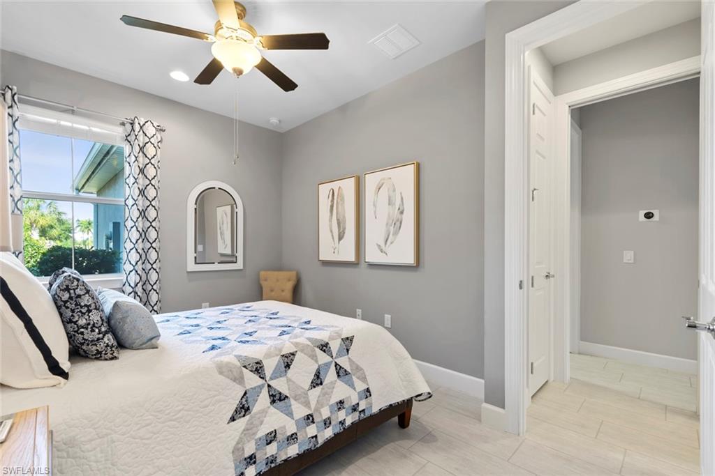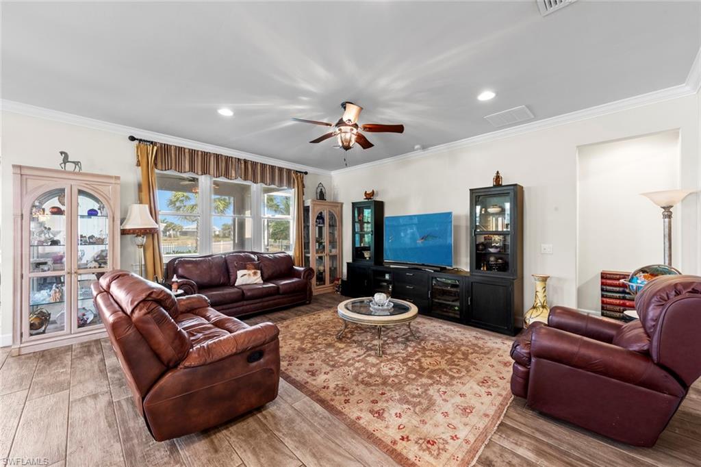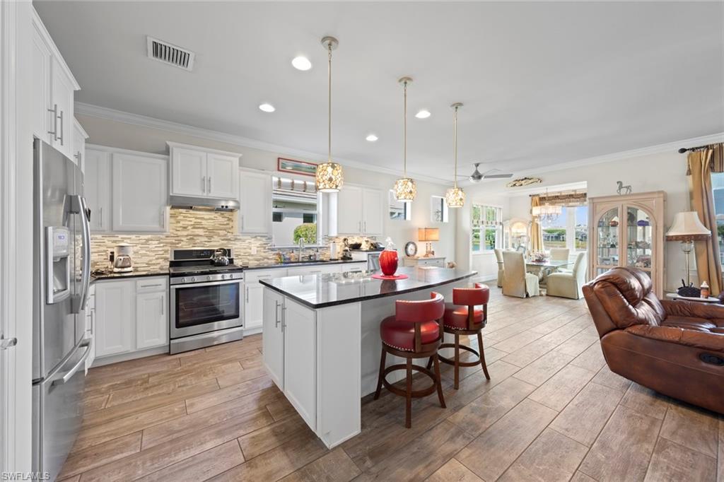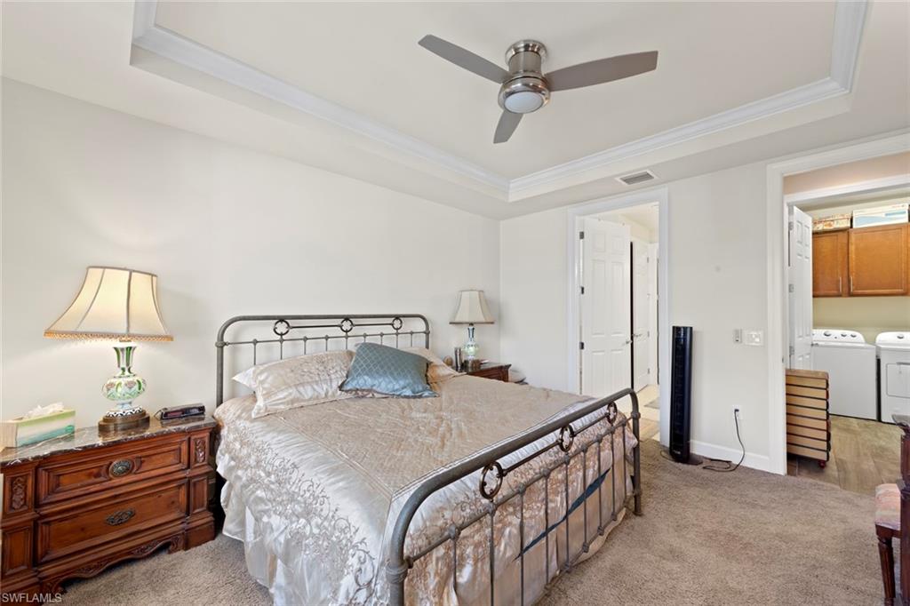 Incredible opportunity! Call today to schedule your private showing of this STUNNING 2 bedroom, 2 bath, plus DEN, attached 2 car garage, villa in one of the area's premier 55+ communities ... Tidewater by Del Webb! Your new home feels like a NEW home ~ as it's been occupied roughly only 3 years since it was built! As you step inside you'll immediately notice the staggered plank tile throughout the entire home; making home maintenance incredibly easy! The kitchen is absolutely gorgeous and boasts a GAS RANGE, pantry, breakfast bar, Expresso hard wood cabinetry, glass tile backsplash, and stainless appliances. The adjacent great room, with combination dining and living areas, is light and bright with transom windows, additional recessed lighting, and sliders that lead to your screened, OVERSIZED, lanai! With upgraded dropped tray ceiling - you'll be amazed at how spacious your new primary suite feels! Other features include double sinks, walk-in shower, separate water closet and walk-in closet. Just outside the guest room is the second bath with upgraded shower complete with tile that runs to the ceiling, glass tile accents and linen closet. With pocket slider that closes off the guest room and bath, essentially making it an additional en suite, guests will love the privacy! The den, closed off by French doors, could easily be utilized as a third bedroom, or could be the perfect space for home office, gym or craft room. The expansive lanai offers a secluded feel with privacy wall in the back additional and an additional privacy wall on the side; making it the perfect place to entertain. Plus, it's already pre-plumbed for a summer kitchen and offers a natural gas line for your grilling needs. You'll also appreciate the impact windows and doors for extra efficiency! And the community? Second to none! Del Webb's Tidewater offers a 13,000 sq ft amenity center that includes a resort style heated pool (with lanes for laps), poolside cabanas, BBQ grills, clubhouse, fitness center (with a myriad of classes), tennis, pickleball, and bocce courts, dog park, spa, library, and business center. From games, clubs and fitness classes, to excursions, educational lectures and social gatherings, Tidewater has something for everyone! Copy/follow this link to view their community calendar! #!calendar. It's true what they say ~ location, location, location! Here you 1.5 miles from the renowned Miromar Outlets, only 3 miles to Gulf Coast Town Center, and 5.5 miles to Coconut Point Mall! At Tidewater you are in the heart of what SW Florida has to offer ... not only endless sunshine, but also incredible access to a myriad of shopping, dining and healthcare options. Plus, only 8 miles from RSW International Airport so easy fly in-fly out! For beachgoers, Barefoot Beach is a short 8 mile drive. This isn't just the home you've been looking for, it's your new lifestyle. Call today!
