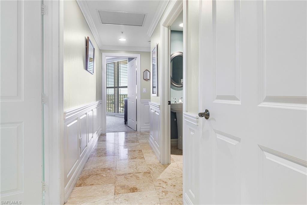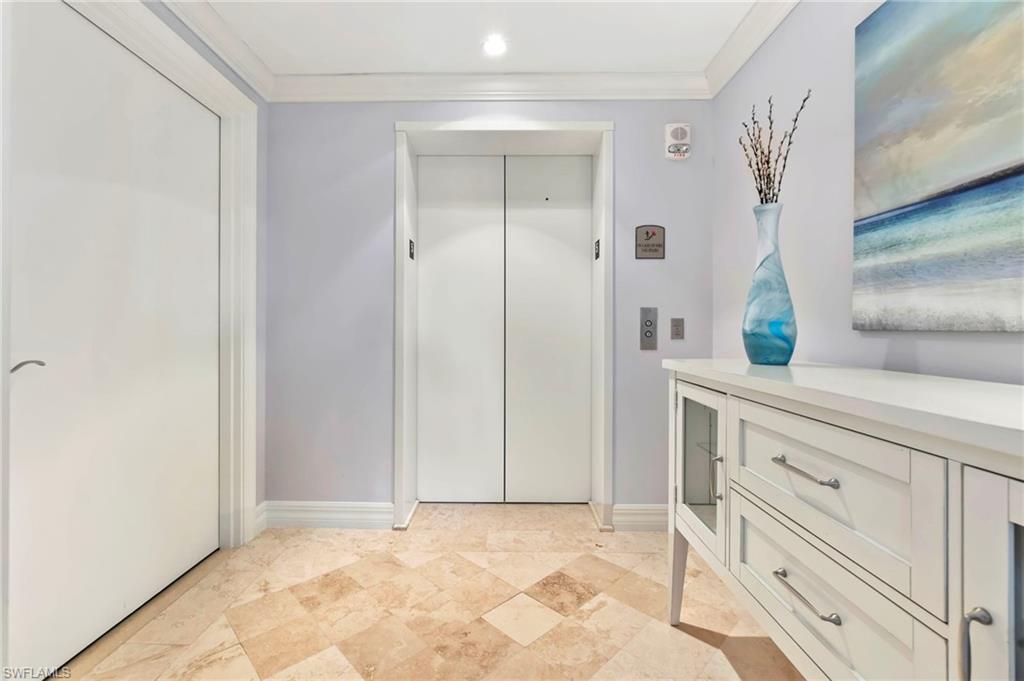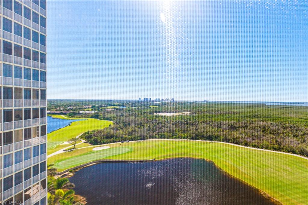 This beautifully appointed 5th floor condo offers the highly sought-after location – private end of the North Tower in Jasmine Bay with unobstructed western sunset views over the lake, golf course, preserve, and Estero Bay right to the Gulf. With 2342 sq. ft. under air, 3 bedrooms and 3.5 bathrooms, the floorplan is open and airy with light neutral tones and Travertine marble flooring in all main living areas and on the spacious wraparound balcony. From the private elevator foyer, the condo opens to the generous great room and dining area showcasing panoramic views. The master suite includes a huge bathroom, his-her fitted closets, and access to the balcony. A separate hallway leads to two guest suites with private bathrooms and second balcony. The gourmet kitchen features granite counters and newer refrigerator. Other features include tall pocketing sliders to the balcony, coffered ceilings, crown molding, plantation shutters and hurricane shutters on the lanai. New AC. Jasmine Bay offers an array of resort-style amenities, including a fully equipped private gym, club room, card room, movie theater, and a stunning infinity-edge pool with hot tub. Enjoy outdoor relaxation in private poolside cabanas or take advantage of the gas grills located on the pool deck. The towers also offer four spacious guest suites perfect for overflow guests. West Bay Club amenities include a new private Beach Club on the Gulf of Mexico with a restaurant/bar, plus chair and towel service. The newly renovated Bay House offers a resort-style pool, yoga studio, Pilates, stretching, spinning room, sauna, Aqua Cafe poolside restaurant for indoor or poolside dining, 8 clay tennis courts, and a Technogym state-of-the-art fitness center. West Bay’s River Park is on the Estero River and features a fishing pier, boat launch w/Gulf access, boat storage, kayaks/canoes, playground, basketball court, picnic areas, and a 1.5-mile walking trail. The Sports Park offers residents 6 pickleball courts, a fitness lawn, bocce courts, and 2 separate dog parks. Memberships are also available to the private 18-hole Pete and PB Dye golf course and clubhouse.
