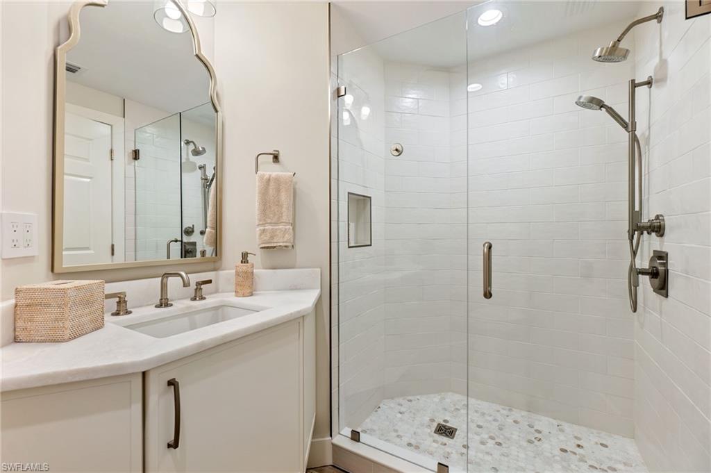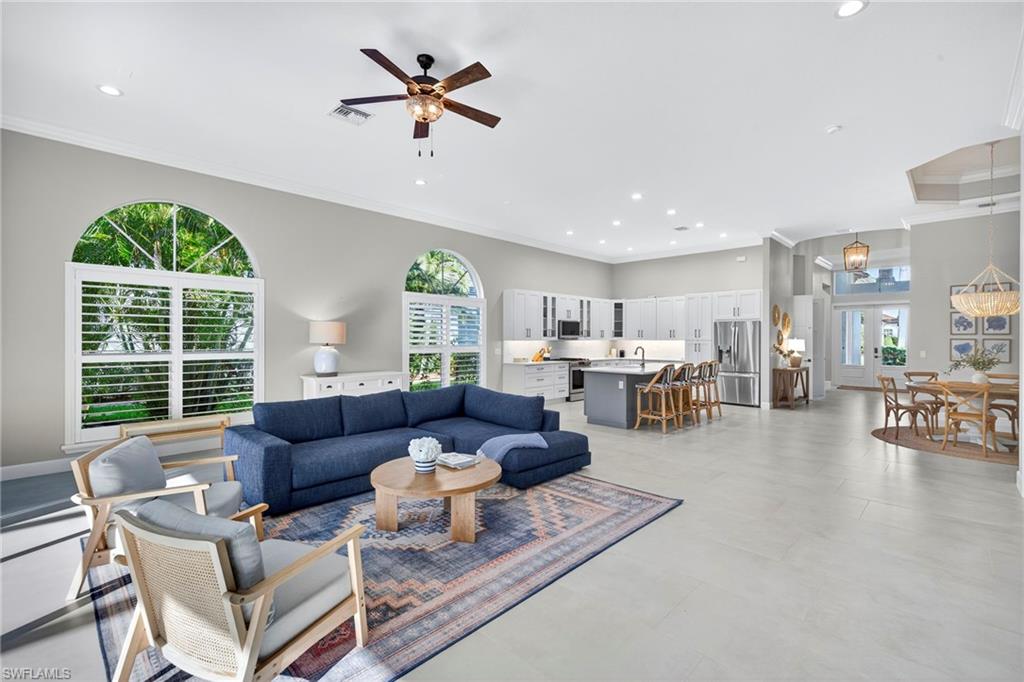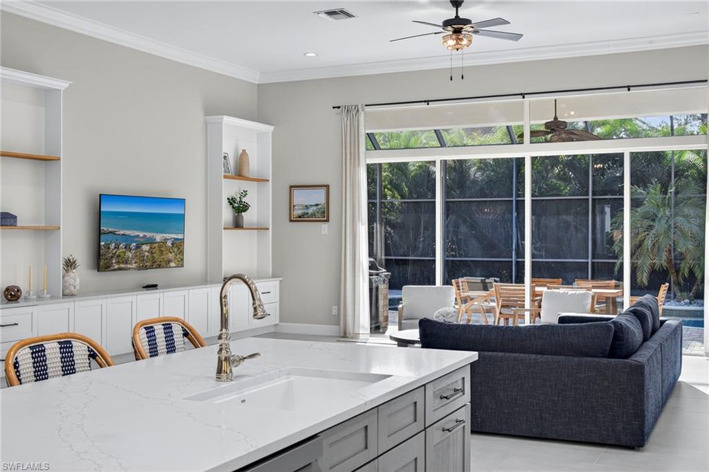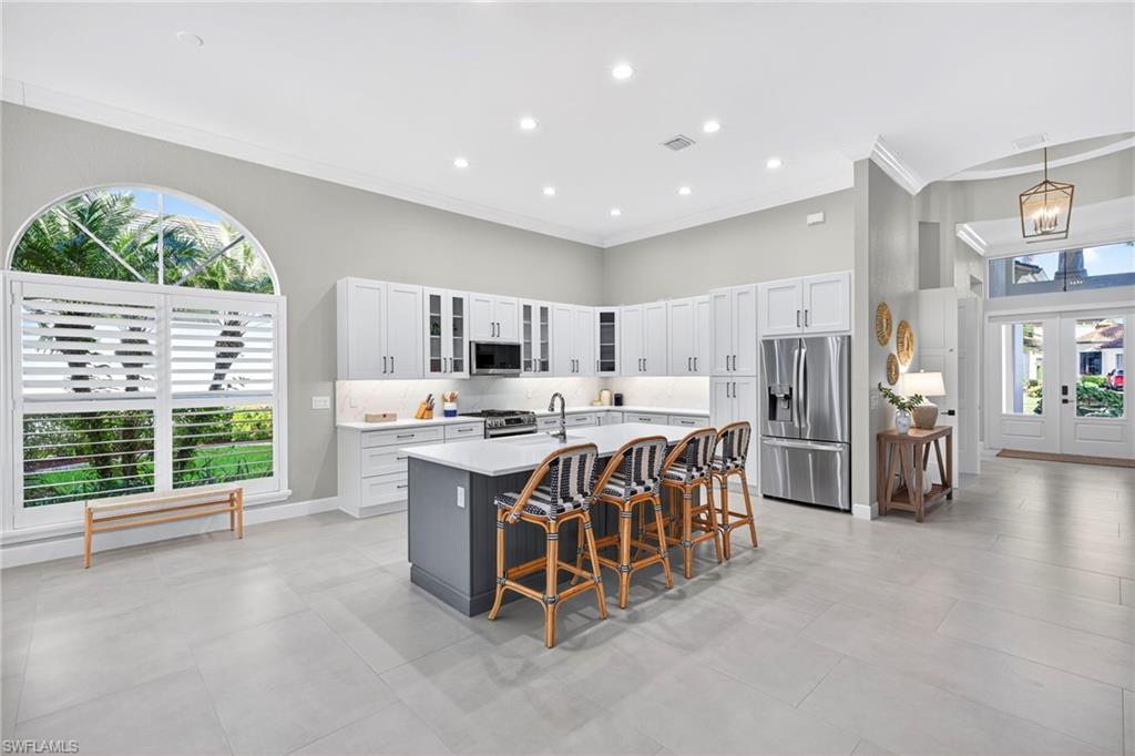 Stunning Fully Renovated Home in Prestigious West Bay Club! Experience the ultimate Florida lifestyle in this beautifully renovated home nestled within the exclusive West Bay Club. Perfect as a luxurious winter retreat or full-time residence, this open-concept residence offers 3 spacious bedrooms, 2 modern baths, a 2-car garage, private pool, spa, and expansive lanai — all designed for relaxed indoor-outdoor living. Step inside to discover a bright, contemporary interior with designer finishes and high-end upgrades throughout. Every detail has been thoughtfully reimagined, including new tile flooring, European-style custom cabinetry, quartz countertops, stainless steel appliances, a sleek mini bar, and a brand-new roof for peace of mind. The gourmet kitchen seamlessly opens to the living and dining areas, making entertaining effortless. The luxurious owner’s suite is a true sanctuary, featuring a spa-inspired bathroom with an oversized walk-in shower equipped with multiple showerheads, dual sinks, and custom-designed closets. Beyond your private oasis, indulge in the unmatched amenities of West Bay Club, a premier gated community known for its inclusive, resort-style living. Nearly every amenity is included in your HOA fees—except the private golf club—providing incredible value and convenience. Enjoy the brand-new private Beach Club on the Gulf of Mexico with full restaurant and bar service, beach chairs, and towel service. Spend your afternoons at the recently renovated Bay House, featuring a resort-style pool, Aqua Café restaurant, and a state-of-the-art fitness center. Outdoor enthusiasts will love the River Park, offering a fishing pier, boat launch with Gulf access, kayaks and canoes, playground, and boat storage. Sports lovers can take advantage of six pickleball courts, eight Har-Tru clay tennis courts, Bocce, a basketball court, and two dog parks. For golf enthusiasts, optional memberships are available at the private 18-hole Pete and P.B. Dye championship golf course and clubhouse — offering yet another level of prestige and recreation. This extraordinary home combines modern elegance, resort-style amenities, and a coveted coastal location, making it one of the best lifestyle values in Southwest Florida. Come discover why West Bay Club is more than a community — it’s a way of life.