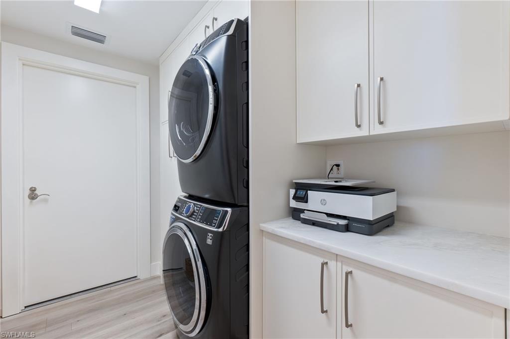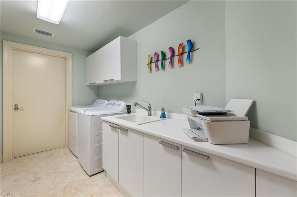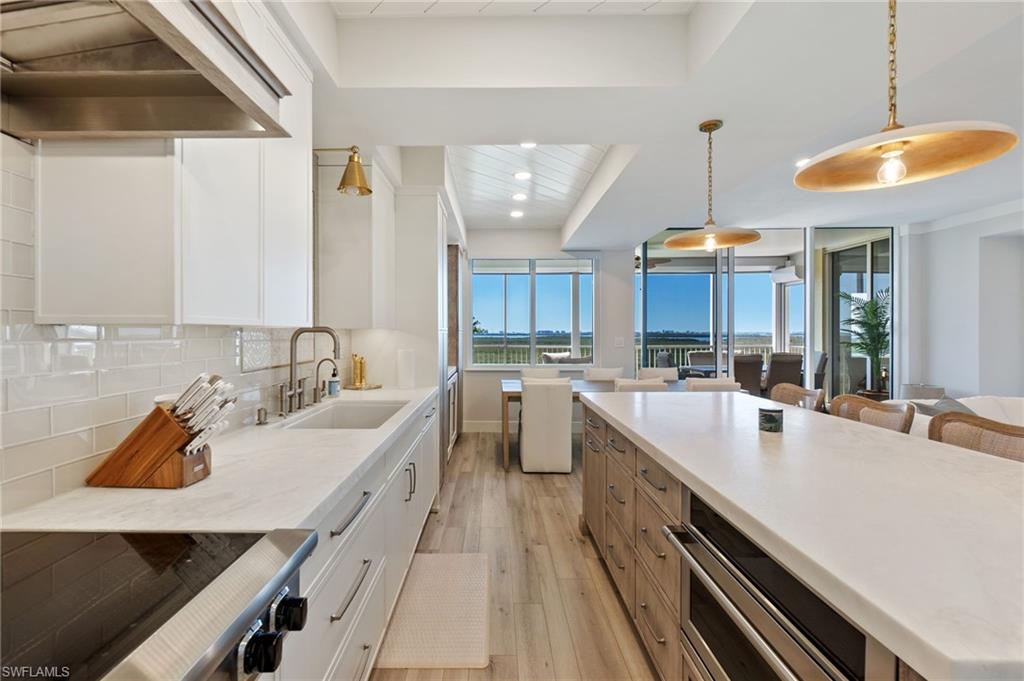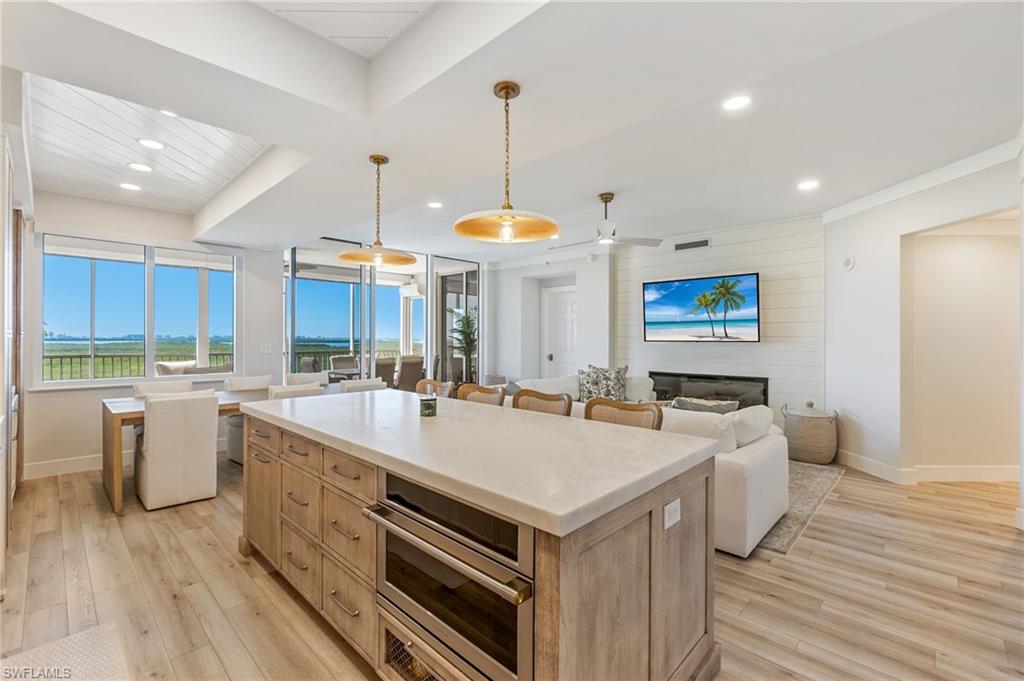 Prepare to be WOWED when entering this magnificently updated condo, offering an unparalleled blend of luxury, modern design, and functionality. Recently renovated in 2024, this residence boasts meticulous attention to detail with premium finishes and thoughtful touches throughout. The stunning chef-inspired kitchen features premium quartz countertops, Cabico Cabinetry and all-new top-of-the-line appliances. Enjoy cooking in style with your 36” Viking induction cooktop with elegant hood, 30” French door double oven, complete with air fryer, plus a 48” Subzero built-in refrigerator with water filter. The 30” GE microwave oven adds convenience, while two pantries, a unique produce drawer, spice drawer, and pull-out utensil caddy, provide excellent storage. Additional high-end appliances include a Miele dishwasher, Avallon wine/beverage fridge, and GE Monogram washer and dryer. The stylish open-concept family room is perfect for both relaxation and entertaining, and boasts new luxury flooring, designer furnishings, Serena and Lily lighting, custom crown molding, sleek shiplap wall treatment and built-in fireplace. Relax in your completely reimagined spa-like master bath, featuring all new vanities, pull-out hairdryer drawer, dual sinks, quartz countertops, shower glass, tile and large soaking tub. The spacious western facing lanai offers amazing sunset views over Estero Bay and the Gulf of Mexico and includes the convenience of electric hurricane shutters. Jasmine Bay offers an array of resort-style amenities, including a fully equipped private gym, club room, card room, movie theater, and a stunning infinity-edge pool with hot tub. Enjoy outdoor relaxation in private poolside cabanas or take advantage of the gas grills located on the pool deck. The towers also offer four spacious guest suites perfect for overflow guests. West Bay Club amenities include a new private Beach Club on the Gulf of Mexico with a restaurant/bar, plus chair and towel service. The newly renovated Bay House offers a resort-style pool, yoga studio, Pilates, stretching, spinning room, sauna, Aqua Cafe poolside restaurant for indoor or poolside dining, 8 clay tennis courts, and a Technogym state-of-the-art fitness center. West Bay’s River Park is on the Estero River and features a fishing pier, boat launch w/Gulf access, boat storage, kayaks/canoes, playground, basketball court, picnic areas, and a 1.5-mile walking trail. The Sports Park offers residents 6 pickleball courts, a fitness lawn, bocce courts, and 2 separate dog parks. Memberships are also available to the private 18-hole Pete and PB Dye golf course and clubhouse.