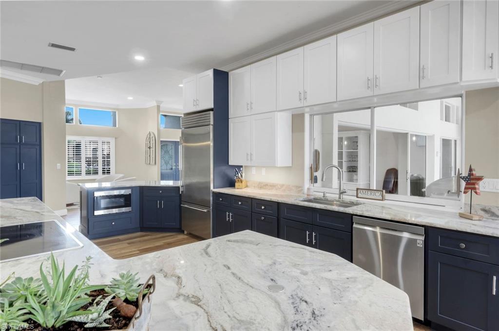 Experience refined living in this exceptional Wildcat Run residence, showcasing the coveted Muirfield floor plan by STOCK. Set on a private cul-de-sac with sweeping lake and golf course views, this elegant home features 4 bedrooms plus a den, 3.5 baths, and a spacious 3-car garage. Crafted with Stock’s award-winning design and quality, the home boasts a luxury kitchen with upgraded cabinetry, quartz countertops, JennAir stainless steel appliances, a gas cooktop, wine cooler, and beverage refrigerator. An inviting den offers the perfect home office setting, while elegant tile flooring enhances the main living areas and rich hardwood floors elevate each bedroom. Designed for the ultimate Southwest Florida lifestyle, the outdoor living space is truly exceptional. Enjoy the stunning saltwater pool and spa powered by a new upgraded Titanium heater that warms the spa quickly for effortless relaxation anytime. The covered lanai is ideal or entertaining, complete with a Sonos system, sophisticated outdoor kitchen, and cozy fireplace—all overlooking picturesque water and fairway vistas. Wildcat Run residents enjoy an impressive array of amenities, including pickleball, bocce, tennis, a state-of-the-art fitness center, and two onsite restaurants. Golf enthusiasts will appreciate the option to join the renowned Wildcat Run golf club. Perfectly located just minutes from Southwest Florida International Airport (RSW), this home is ideal for frequent travelers or those welcoming visiting guests. Don’t miss the opportunity to own your piece of paradise in Wildcat Run.