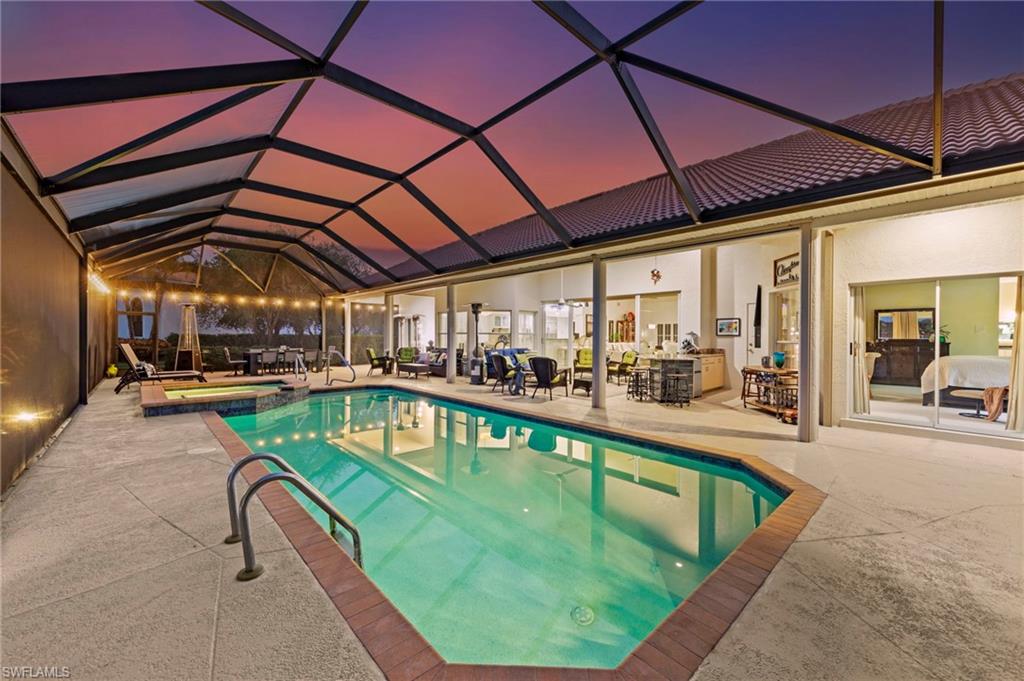 Exquisite Estate Home in Wildcat Run – Luxurious Living on the Golf Course!! Welcome to 20234 Country Club Dr, an exquisite estate home situated on a large, oversized corner lot in the prestigious Wildcat Run Golf & Country Club. The sprawling single-story Ventalo floor plan boasts 3,130 sq ft under air, featuring 3 bedrooms, 3 baths, a formal dining room, a huge great room, a bonus room, and a 3-car garage. This luxury home is designed with an open, spacious, and functional floor plan, perfect for both entertaining and family enjoyment. The recently updated gourmet kitchen is a chef’s delight, featuring quartz countertops, custom cabinetry, an expansive walk-in pantry, and high-end Monogram appliances, including a gas cooktop by Jennair, a side-by-side refrigerator/freezer, a speed cook oven, and a dishwasher. Enjoy cozy gatherings in the family room, complete with a newly installed stone-faced fireplace, setting the perfect ambiance for relaxed evenings. The primary suite serves as a private retreat, offering his-and-hers walk-in closets, a double step tray ceiling, and a spa-inspired en-suite with a luxurious soaking tub, dual vanities, and a walk-in shower. Two additional bedrooms, each with well-appointed private bathrooms, provide ample space for family or guests. A versatile Bonus-Flex Room serves as a den, study, or game room, adding even more flexibility to suit your lifestyle. Step outside to an expansive outdoor living space, featuring a large outdoor kitchen, a screen-enclosed saltwater pool and spa with a new pool heater, and breathtaking views of the scenic golf course. The paver pool deck and large driveway lead to a 3-car garage, with one stall transformed into an air-conditioned man cave—ideal for hobbies or sports equipment storage, and easily convertible back to a third car stall. This home is packed with thoughtful upgrades, including solar panels by Zando Energy, a Noritz tankless water heater, a commercial-grade Maytag top-load washer and dryer, and plantation shutters throughout. Hurricane protection is top-notch with roll-down and accordion shutters for your peace of mind. Located just a short walk from the golf clubhouse, Wildcat Run offers an enviable lifestyle with a low-density community of only 450 homes, an Arnold Palmer-designed championship golf course, five tennis courts, a state-of-the-art fitness and wellness center, and two on-site restaurants. Plus, you’ll be just minutes from Estero’s premier shopping, dining, and entertainment. This isn’t just a house; it’s the dream home you’ve been waiting for. Schedule your personalized showing today and experience Your Slice of Paradise!