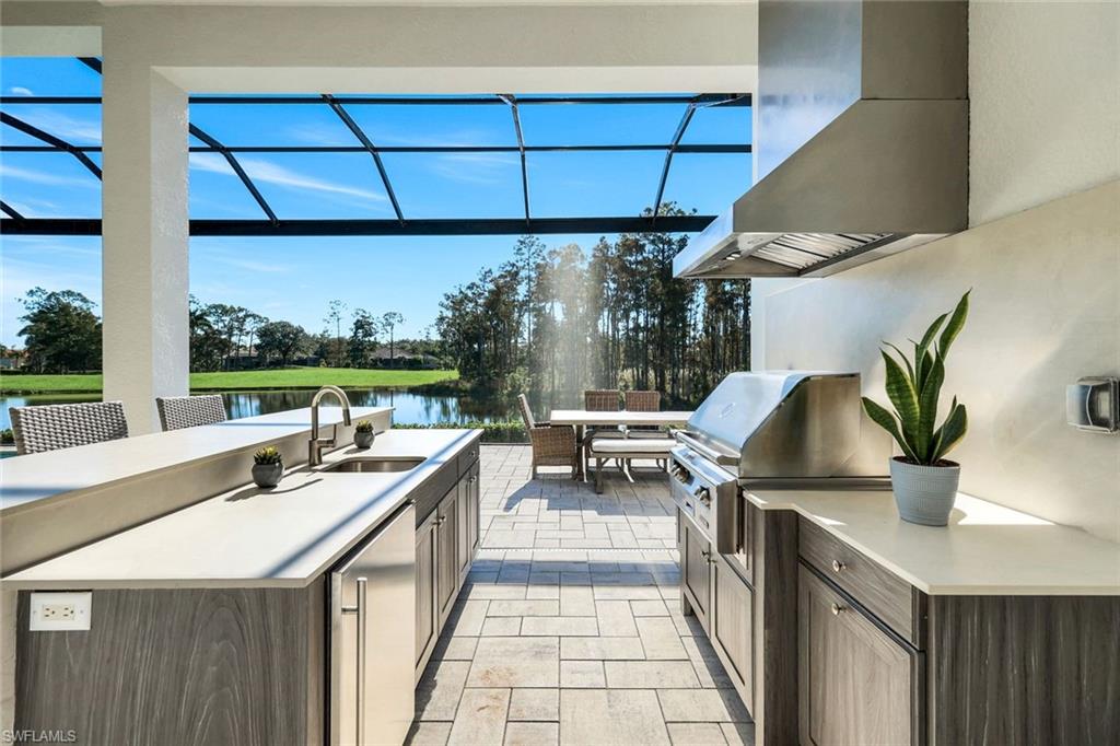 This unparalleled new construction home offers breathtaking southern views of both a pristine lake and an immaculate golf course, combining luxury living with natural beauty. Designed with exquisite craftsmanship and attention to detail, this home features soaring ceilings, expansive windows that flood the space with natural light, and an open-concept layout perfect for both relaxation and entertaining. The gourmet kitchen is a chef’s dream, boasting numerous appliances, custom cabinetry with hidden walk-in pantry and elegant quartz countertops throughout. The primary suite is a private retreat, complete with a spa-inspired ensuite shower and a spacious walk-in closet. Two other secondary suites are equally impressive in size with soaring ceilings, large walk-in closets and private bathrooms. This home features an oversized garage, thoughtfully designed to provide ample space for multiple vehicles, storage, and more. With extra-wide bays and extended depth, it easily accommodates larger vehicles or recreational equipment. Beyond parking, this versatile space is completely insulated and can serve as a workshop, home gym, or hobby room. Whether you're a car enthusiast, need additional storage, or want a flexible space for projects, this oversized garage offers unmatched convenience and possibilities. Outdoor living is elevated with two massive, covered patio living spaces, fully equipped outdoor kitchen, pool and spa, and seamless indoor-outdoor transitions, allowing you to fully immerse yourself in the stunning surroundings. Every inch of this home exudes sophistication and modern elegance, offering a rare opportunity to own a masterpiece in a premier location. At the heart of Wildcat Run is an Arnold Palmer Signature-designed golf course, renowned for its excellent conditions and challenging layout suitable for golfers of all skill levels. Complementing the golf experience is a 26,000-square-foot clubhouse that offers both formal and informal dining options, pro shops, and locker rooms. Wildcat Run's prime location in Estero provides residents with convenient access to nearby shopping, dining, and entertainment options, blending tranquility with modern conveniences.