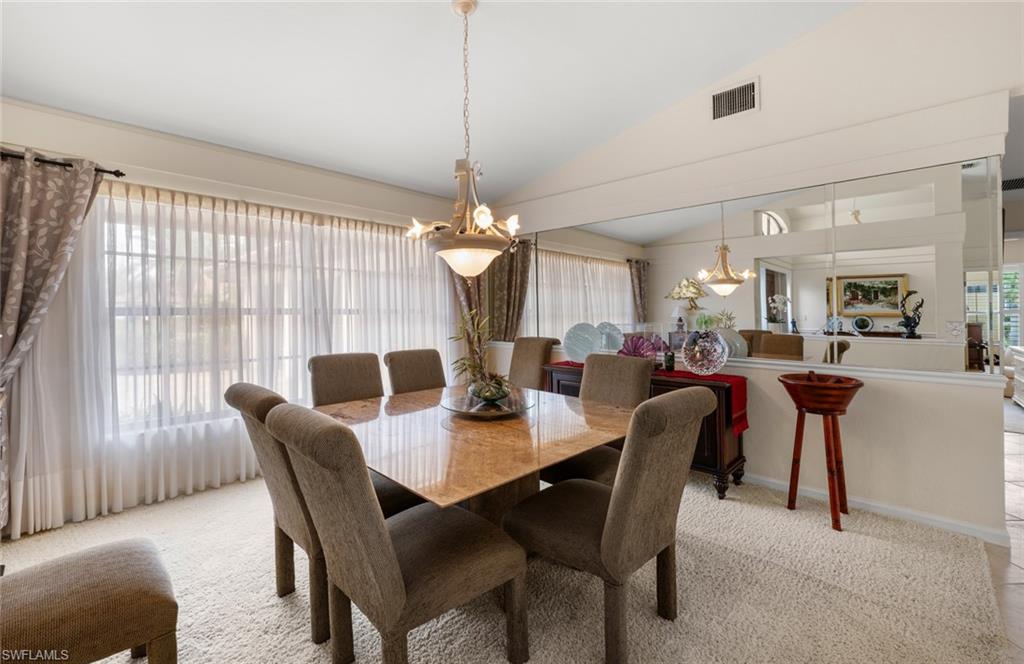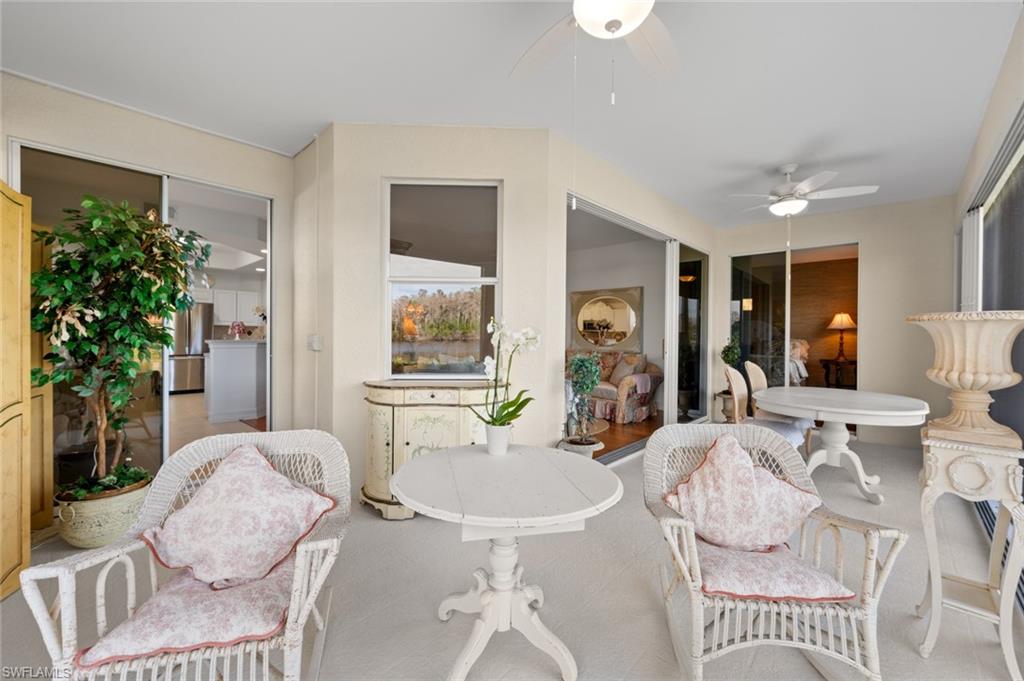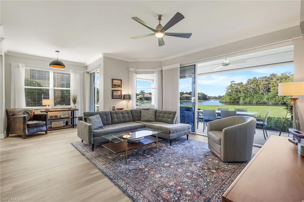 No waitlist for golf membership at this totally renovated Arnold Palmer designed 18 hole golf course! Wildcat Run Golf and Country Club is a smaller, intimate community where friends become family. There is a total of 449 residences, with a combination of single family homes, stand alone villas, attached villas and condos. For those who do not golf, as well as the golfers, there is tennis, bocce, pickle ball, cornhole toss, cards, Mahjong, book clubs and a fabulous fitness center with a full-time fitness director. The main clubhouse, grill room and pro-shop have all been renovated. Even the parking lot expansion is complete. There is a community pool for the exclusive use of owners at Cypress Cove and Wildcat Cove. Those owners all pay to maintain the pool and its parking lot. Another great place to meet your neighbors. This first floor unit with three bedrooms and two full baths has been meticulously cared for. The flooring in the main living area is engineered wood while the primary bedroom and third bedroom (den) have laminated wood flooring. The dining room chandelier and a piece of wooden art above the kitchen cabinets are not conveying with the sale of this property, but furnishings are negotiable. This unit has plexiglass sliders on the lanai giving you another 235 sq ft of living space. The screens on the lanai were replaced with picture window screens for unobstructed views down the lake. Keep in mind there are electric and manual shutters. You will love the location. A short drive to the airport, FGCU, University Shoppes, Hertz Arena, Miromar Outlets and two other major shopping venues are a short distance away. The South County Regional Library is scheduled to reopen in late 2025 after extensive renovations and that is fairly close also!!