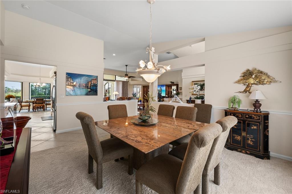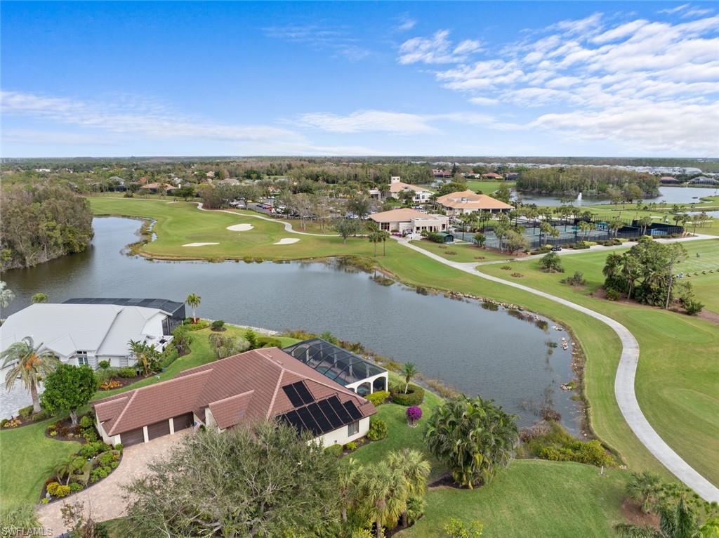 Discover luxury and serenity in this beautiful single-family home in the prestigious Wildcat Run Golf & Country Club, an exclusive gated community in Estero, featuring an Arnold Palmer Signature Golf Course. Boasting a new roof in 2019 and an air-conditioning system installed in 2019, plus a new hot water tank, this residence features a seamless open floor plan with two bedrooms plus a versatile den, and three full baths. The heart of the home includes a convenient breakfast bar, dedicated dining area with white shaker kitchen cabinets and a whole-house Kentico water system, ideal for everyday living and entertaining. Retreat to the primary bedroom, complete with walk-in closets and a spa-like en-suite full bath featuring a tiled shower and soaking tub. The den offers direct access to a full bath, adding flexibility for guests or a home office. The guest bedroom also has a full en-suite bath. Enjoy tray ceilings in main living area, freshly painted and new tile flooring in the bedrooms. Go outside to your private screened lanai, where a sparkling pool and spa await, protected by electric hurricane shutters and framed by breathtaking lake views that capture the essence of Southwest Florida living. Xfinity and water services are covered in HOA dues. Residents enjoy a wealth of amenities including five Har-Tru tennis courts, pickleball, bocce, a state-of-the-art fitness center, and a clubhouse with casual and fine dining options. Tucked between Naples and Fort Myers, it's ideally just two miles east of Interstate 75 off Corkscrew Road, providing easy access to Southwest Florida International Airport, Miromar Outlets, Coconut Point Mall, Hertz Arena and Florida Gulf Coast University.