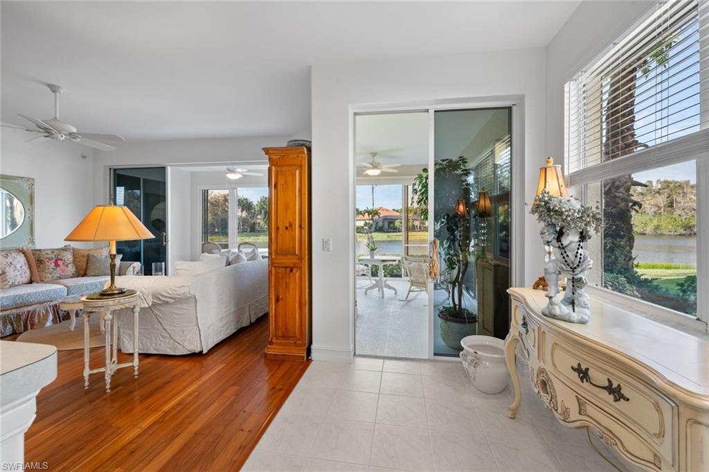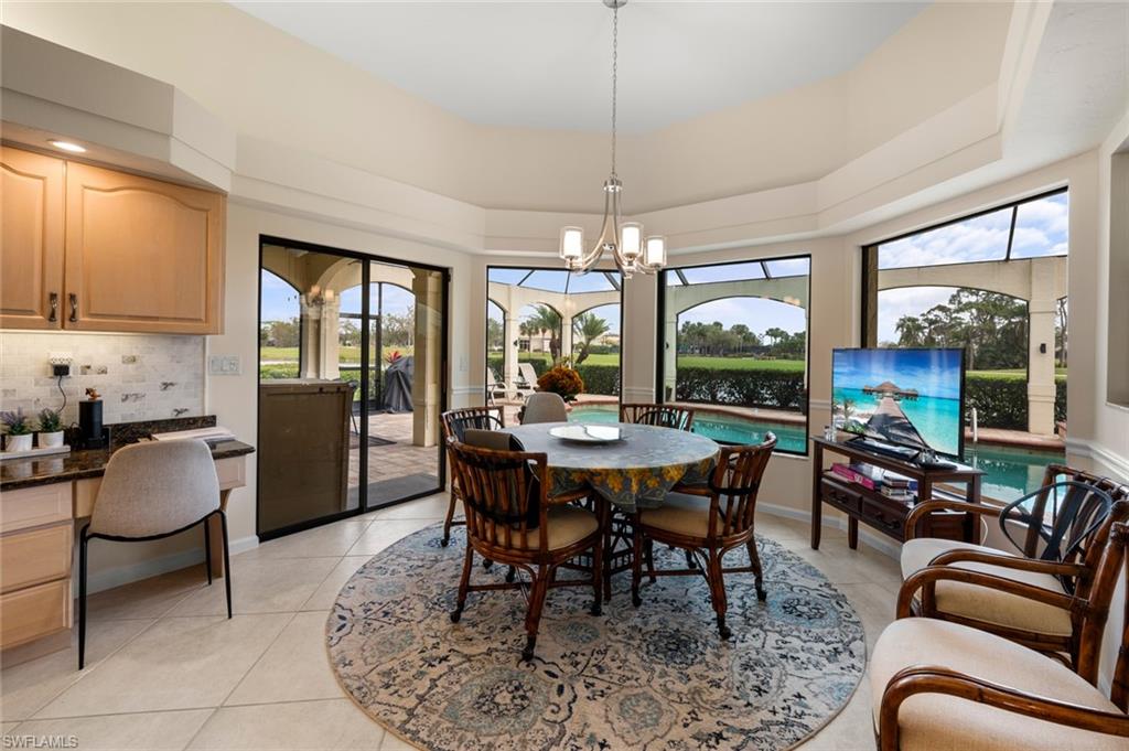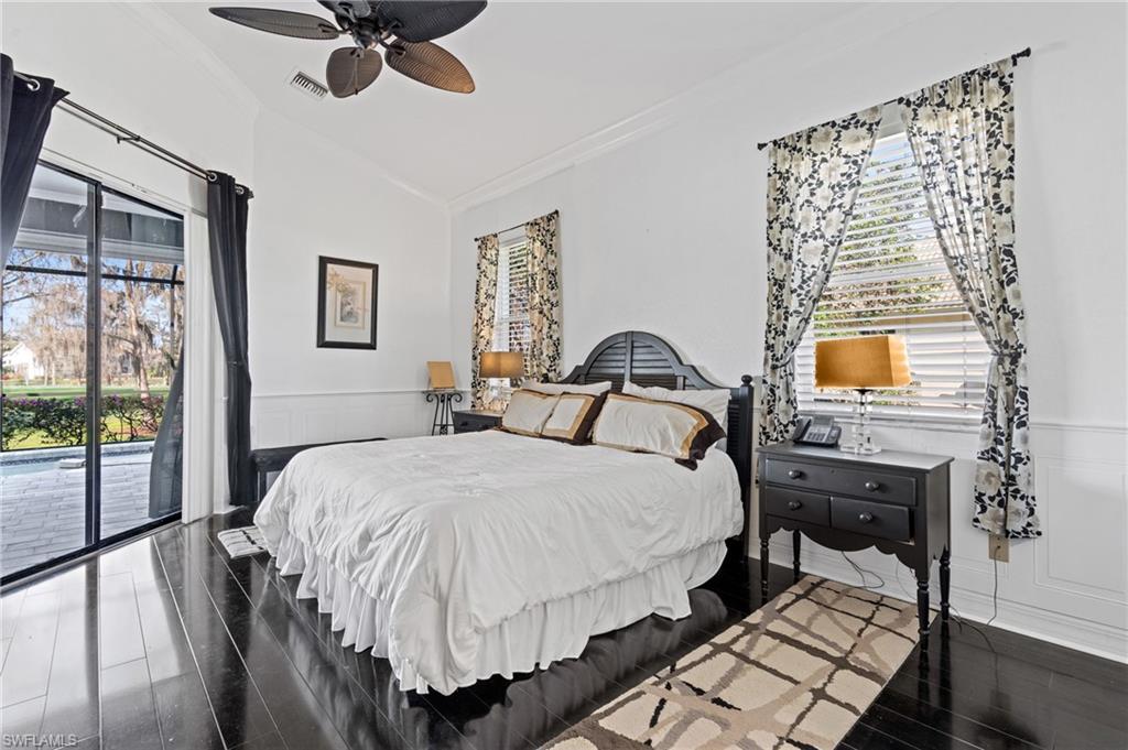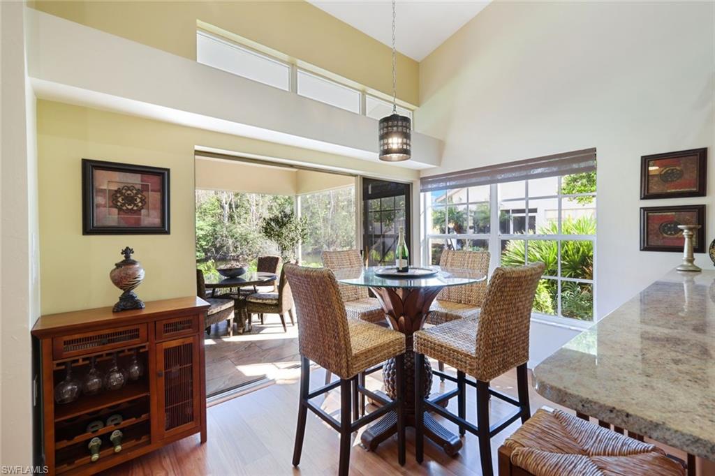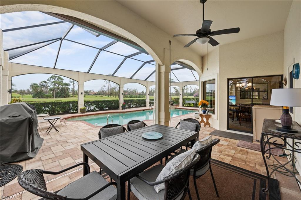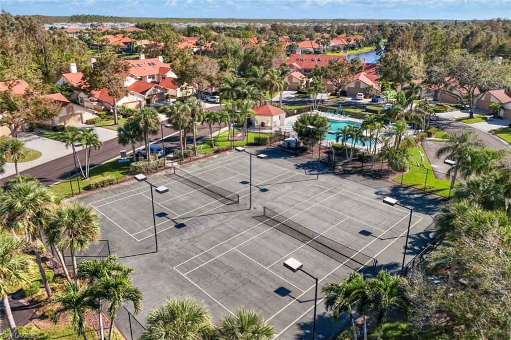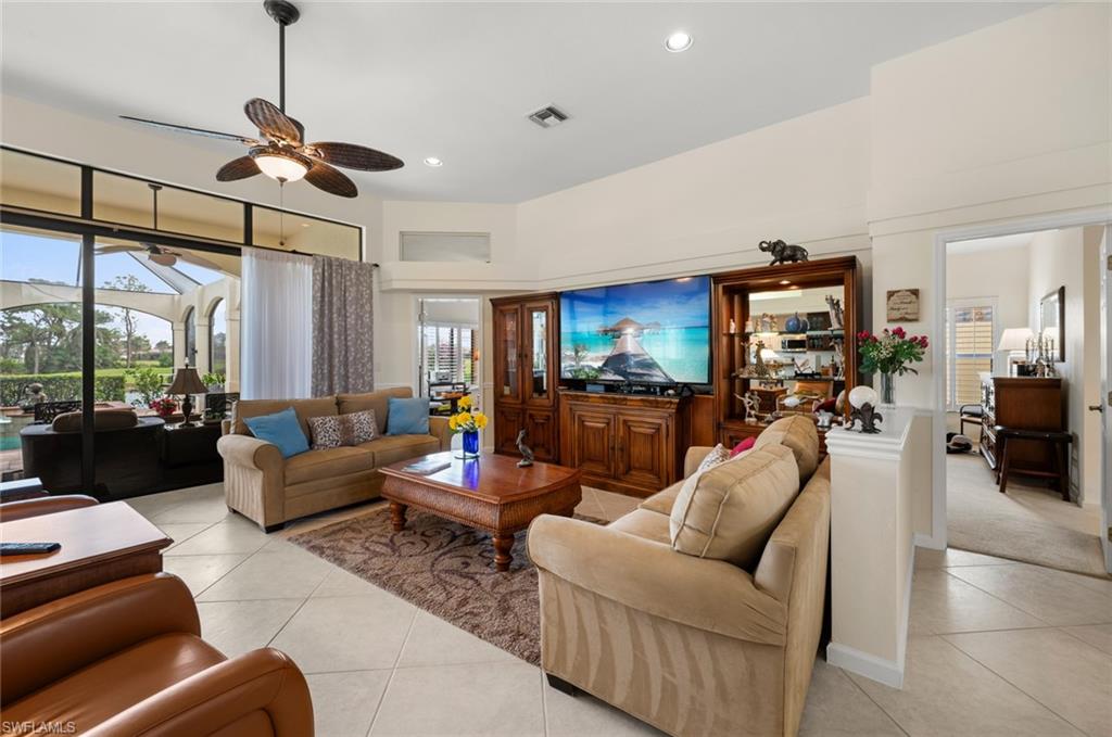 This 3 bedroom, 3 full and 1/2 bath attached villa pool/spa property lives like a single family home. A few updates are the beautifully engineered wood flooring throughout and the refurnished pool/spa. A new pool heater was installed in Dec. 2024. Exterior freshly painted in the spring of 2025. The new roof was installed in 2018. The kitchen stone backsplash is neutral in color and was also installed under the breakfast bar for a nice accent. The property is being sold turnkey for the convenience of both sellers & buyers. Being situated on the 14th fairway of the Arnold Palmer Signature 18 hole golf course provides a beautiful view of the fairway and approach to the green. The 1/2 bath is located on the lanai and serves as a pool bath for convenience. Along with the golf course, Wildcat Run offers tennis, pickleball, bocce and the state of the art fitness center which is fully staffed by a professional certified trainer. Two restaurants on campus allow you to enjoy lunch and dinner in the Grillroom with indoor/outdoor seating or dinner in the Clubhouse for a more formal atmosphere. Outdoor gathering is a popular spot when meeting up with friends after your day of activities. Wildcat Run is convenient to 3 large shopping malls, fine & casual dining, SWFL International airport and white sandy Gulf beaches.