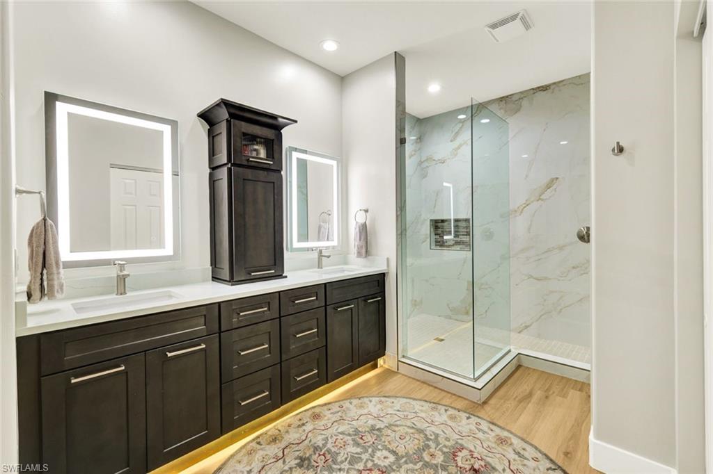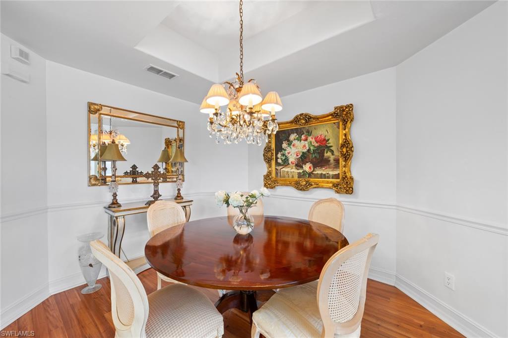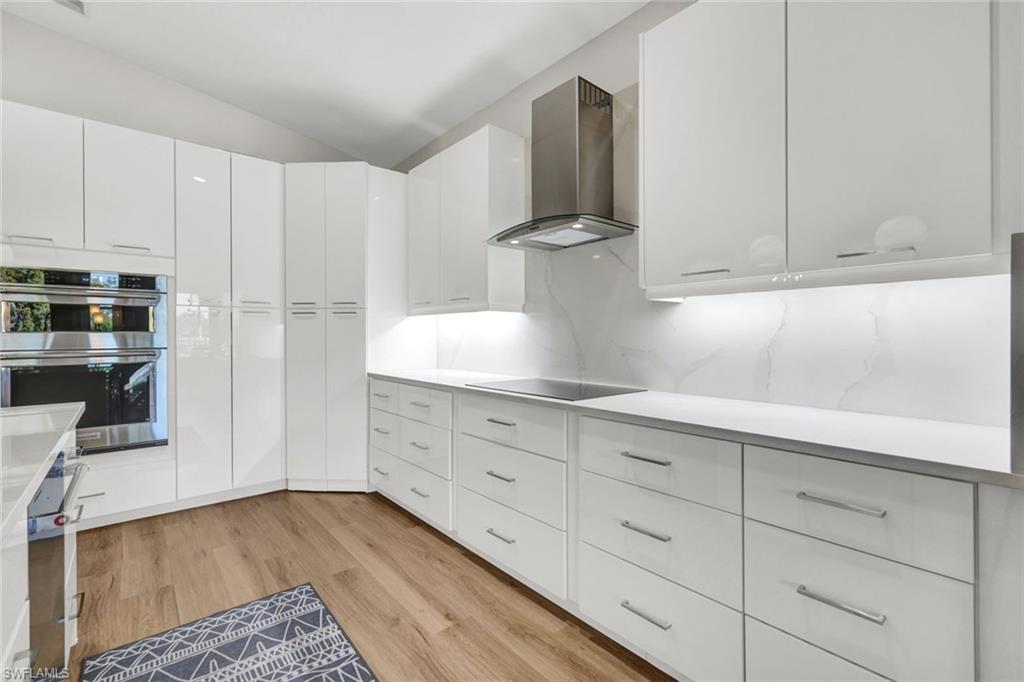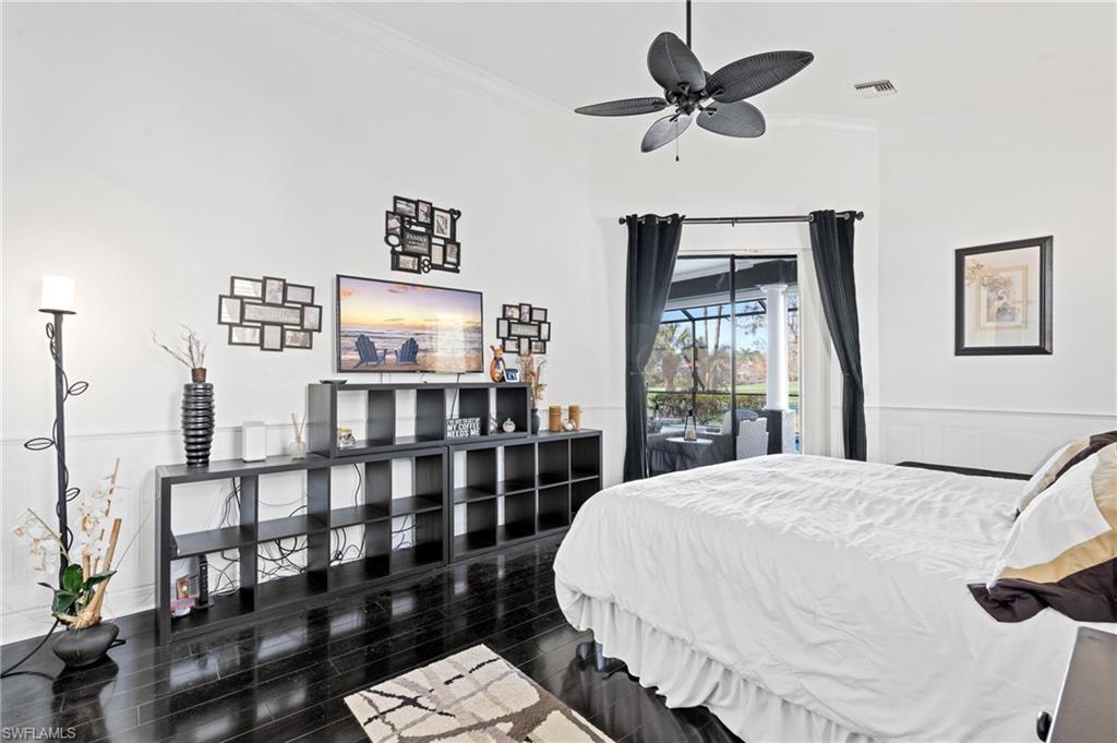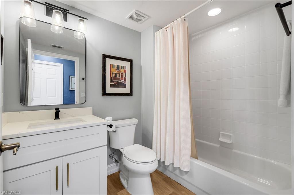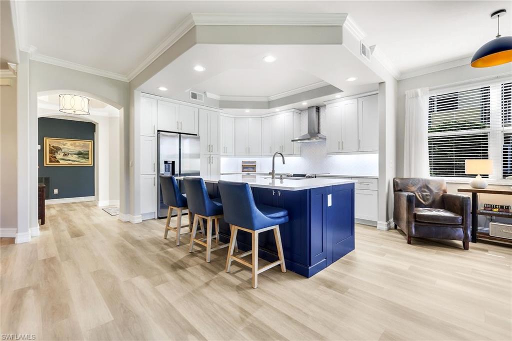 This 3 bedroom, 3 full and 1/2 bath attached villa pool/spa property lives like a single family home. A few updates are the beautifully engineered wood flooring throughout and the refurnished pool/spa. A new pool heater was installed in Dec. 2024. Exterior freshly painted in the spring of 2025. The new roof was installed in 2018. The kitchen stone backsplash is neutral in color and was also installed under the breakfast bar for a nice accent. The property is being sold turnkey for the convenience of both sellers & buyers. Being situated on the 14th fairway of the Arnold Palmer Signature 18 hole golf course provides a beautiful view of the fairway and approach to the green. The 1/2 bath is located on the lanai and serves as a pool bath for convenience. Along with the golf course, Wildcat Run offers tennis, pickleball, bocce and the state of the art fitness center which is fully staffed by a professional certified trainer. Two restaurants on campus allow you to enjoy lunch and dinner in the Grillroom with indoor/outdoor seating or dinner in the Clubhouse for a more formal atmosphere. Outdoor gathering is a popular spot when meeting up with friends after your day of activities. Wildcat Run is convenient to 3 large shopping malls, fine & casual dining, SWFL International airport and white sandy Gulf beaches.
