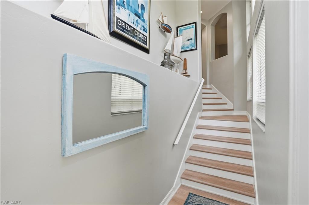 This TURNKEY condo shows like a model! Tasteful updates include guest bath total remodel with a beautiful walk-in tiled shower, a lovely large vanity and built in shelves for linens/toiletries. The upstairs units are very spacious offering 3 bedrooms + Den and volume ceilings. The elevated view overlooking the lake and private preserve provides a beautiful scenery from the lanai, great room and primary bedroom. A new air conditioning system was installed March 2022 and the hot water heater was replaced Aug 2023. The laundry room has a new stackable washer/dryer system to maximize the space allowing for a newly installed deep sink for the owner's convenience. Electric fabric hurricane shutters are across the screened lanai and the majority of the windows have 3M hurricane proof film. Luxury Vinyl flooring was installed in all areas that are not tiled. The 2 car garage is very spacious and the drive way is extra wide for easy access in and out of the garage. For your convenience the owners are leaving all furniture and a fully equipped kitchen & linens. Bring your clothes and golf clubs and you are moved in ready to hit the links.... Wildcat Run offers an 18 hole Arnold Palmer Signature golf course, tennis, pickleball and bocce courts. Two restaurants on property provide casual and formal dining opportunities. A full time certified trainer is available M-F to help you with your wellness program. Golf Memberships are available by contacting the club. Wildcat Run Golf & Country Club is conveniently located in SWFL minutes from 3 large malls, fine/causal dining and SWFL International Airport. White sandy beaches within 20 minutes from your door. Enjoy the backwater bay and Gulf of America which abounds with wildlife.
