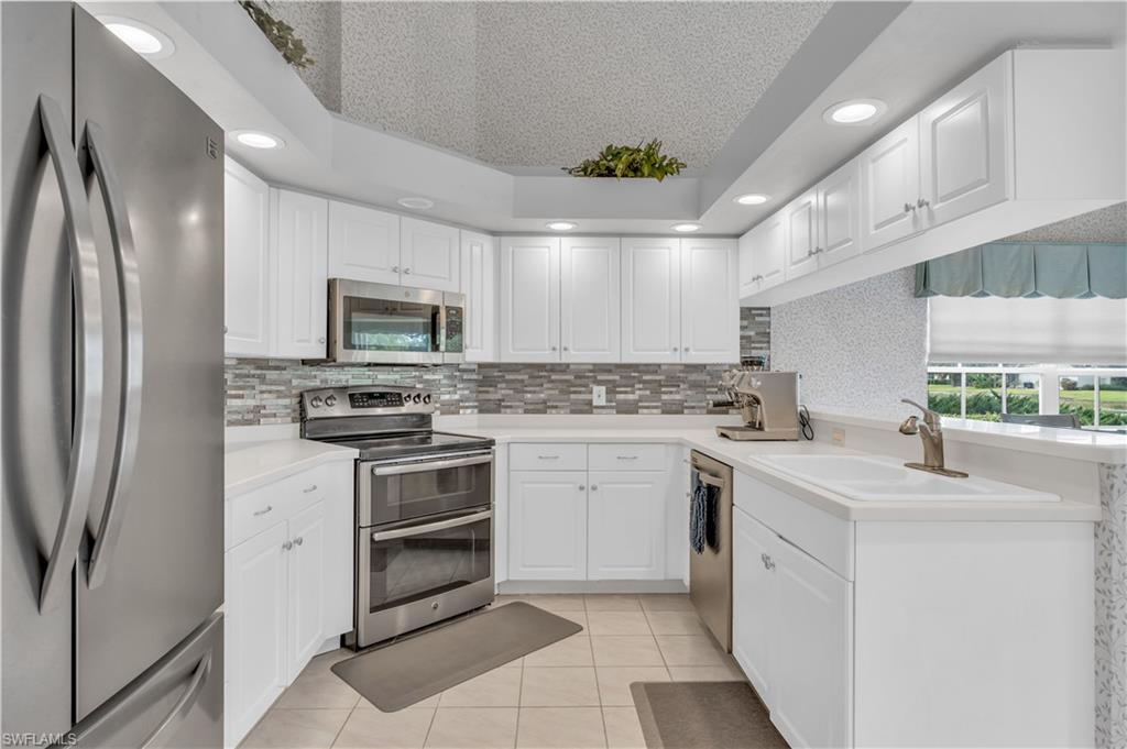 This beautifully maintained 2-bedroom, 2.5-bath condo with a desirable southwestern exposure features a spacious 2-car garage and thoughtfully designed interiors, including Corian countertops, stainless steel appliances, a wet bar, wood flooring in the bedrooms, and tile flooring throughout the main living areas. Step outside to the patio off the lanai and enjoy peaceful views of nature and the 16th green. The screened lanai with Plexiglass sliders provides year-round comfort and valuable additional living space, ideal for relaxing or entertaining. Just steps from your front door, you’ll find the community pool, basketball court, and tennis courts. offering endless opportunities to enjoy an active Florida lifestyle. Golf enthusiasts will love the no waitlist for golf memberships, granting immediate access to the renowned Arnold Palmer Signature Golf Course. Wildcat Run elevates everyday living with exceptional amenities, including two onsite restaurants, bocce, pickleball, tennis, and a fully equipped fitness center. Conveniently located near RSW International Airport, FGCU, Miromar Outlets, Hertz Arena, and major shopping destinations, this condo places the best of Southwest Florida just minutes away. Whether you’re seeking a peaceful retreat or a vibrant, amenity-rich community, this exceptional condo offers the perfect blend of comfort, convenience, and lifestyle. Don’t miss your opportunity to own a piece of paradise in Wildcat Run!