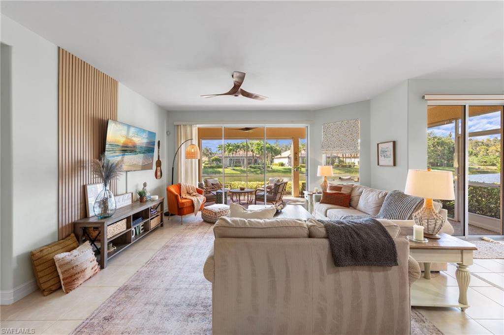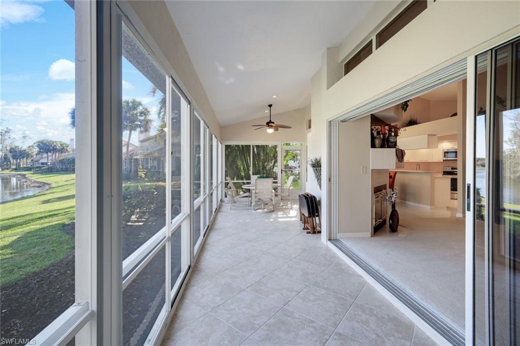 This turnkey condo offering 3 bedrooms, 2 car attached garage is ready for you to move into. The spacious kitchen has been tastefully updated and fully equipped for your convenience. A large walk-in pantry accommodates plenty of storage. The great room floorpan overlooks the screened lanai and lovely lakefront view. Enjoy your morning coffee and your sunset dinners on the lanai. The tile flooring throughout makes maintenance easy allowing more time to play golf, tennis, pickleball or bocce on the Wildcat Run campus. Custom window treatments throughout accenting the decor. The area off the kitchen is a flex space currently being used as an office work space, however, convert it can be converted to a bar area for easy entertaining. A large community lap pool & hot tub are steps away from your condo. The 18 hole Arnold Palmer golf course has been renovated and in pristine condition to challenge any golfer. A state of the art fitness center has a full time certified trainer available to design your wellness program. There are 2 restaurants on property to enjoy casual & formal dining experiences. Wildcat Run is conveniently located to many attractions in SWFL. Minutes from 3 large shopping malls, fine and casual dining, the SWFL Intel Airport and I-75 corridor to travel either North or South.