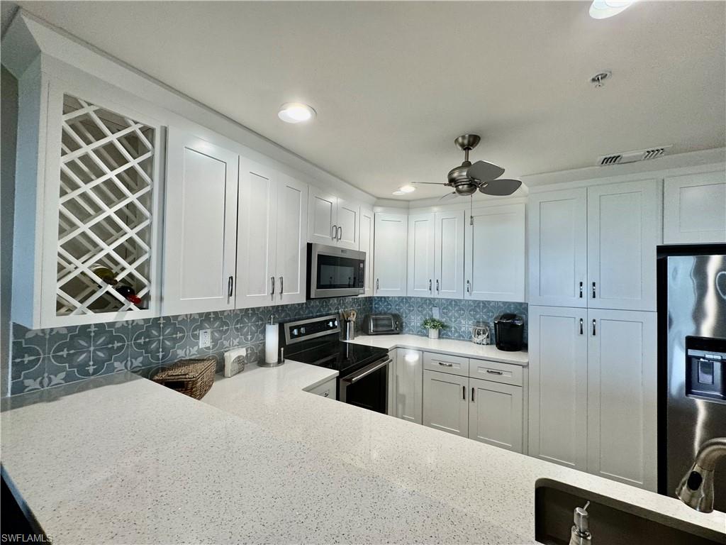 Very comfortable condominium with a great location. Peaceful views of Estero Bay. Just short walk to restaurants and beach. The unit was redone completely with new electrical, solid wood cabinets in kitchen and baths. All new appliances , luxury new flooring waterproofed. Quartz counter tops and so much more. All new furniture. Under building parking and storage located on the west side of the building. Estero Bayside offers a clubhouse, pool and spa, fitness center and close proximity to restaurants, shops and more! All lobbies have been renovated.