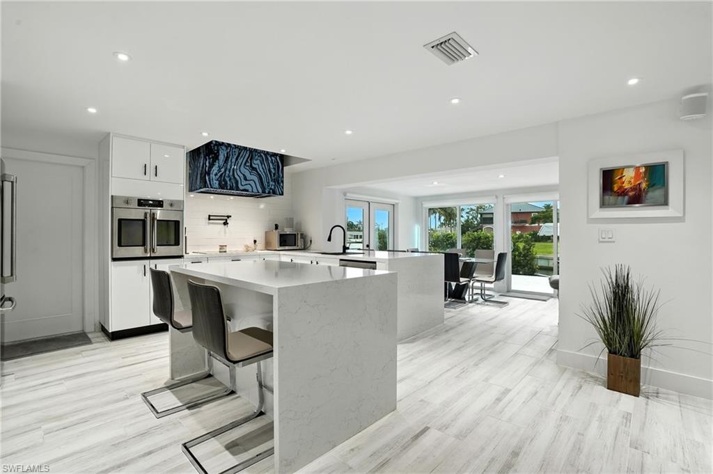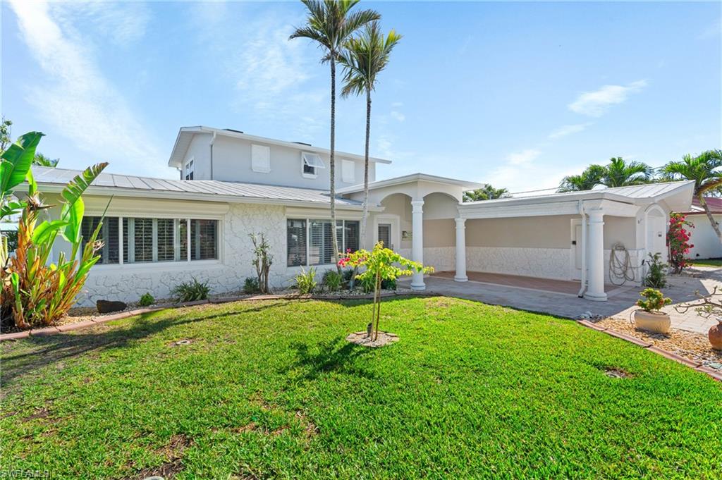 Beautifully renovated Gulf-access home situated on one of the largest canals in Estero Island! It is also one of the highest streets on the island at abut 10 feet above sea level. This coastal retreat is the ultimate beach and boaters’ delight with beach access only a short bike ride away & Gulf access from your boat dock/lift (20,000LB capacity). It could also be a prime rental investment opportunity if desired (7-day minimum rental zone)! This light, bright, and airy home boasts a fantastic open floor plan with 4 spacious bedrooms and 2 modern bathrooms. Step outside into your fenced-in backyard paradise featuring an infinity pool with a soothing water fountain, a tanning shelf, and ample space for lounging while taking in the breathtaking canal views. The tranquil boat dock area extends your outdoor enjoyment, with a large deck perfect for relaxing and watching dolphins and manatees glide by. The modernized chef’s kitchen features white quartz countertops, sleek white cabinetry, stainless steel appliances, and an expansive island with seating, perfect for entertaining. The spacious primary bedroom offers private access to the patio, walk-in closet, and a beautifully appointed bathroom with dual vanities and a frameless glass shower enclosure. This coastal retreat is perfectly located in the peaceful neighborhood of Glenview, close to many fantastic restaurants and easy access to Lovers Key/Bonita Beach.