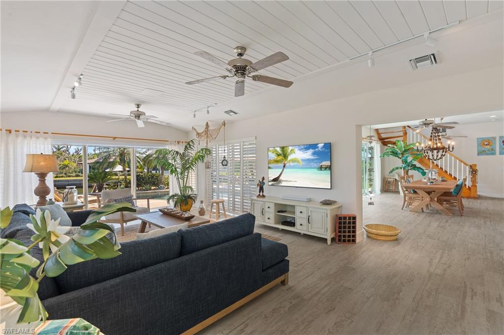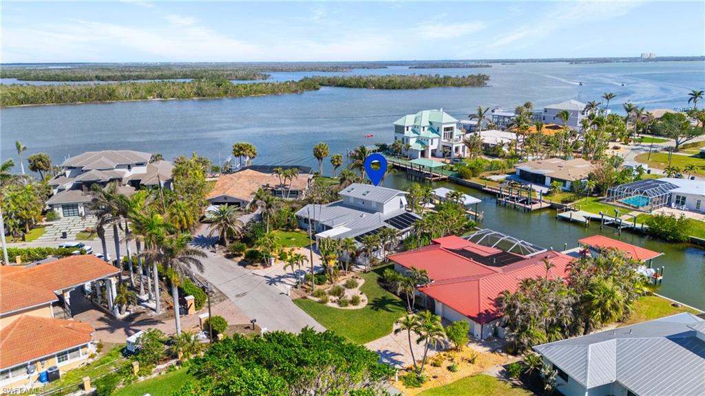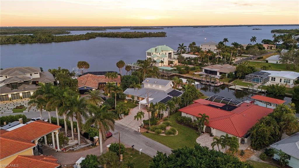 Experience elevated coastal living in Fort Myers Beach’s most sought-after neighborhood. Perfectly positioned in the island’s highest-elevated area, this impeccably remodeled residence embodies modern luxury and effortless sophistication. Every detail has been carefully curated—from the high-end cabinetry and premium Bosch appliances to the designer furnishings and elegant décor that complete this turnkey retreat. The open-concept living area was designed with entertaining in mind, offering seamless flow between the interior and the inviting outdoor spaces. Two spacious guest suites are thoughtfully tucked on the opposite side of the home, providing privacy and comfort for family and friends. Upstairs, the expansive primary suite serves as a private sanctuary with panoramic bay views, glass railings, and a spa-inspired bathroom illuminated by natural light through elegant skylights. Outside, lush tropical landscaping frames an extraordinary backyard oasis—complete with a custom pool, tranquil lounge areas, and a covered boat dock offering direct bay access for effortless boating adventures. Ideally situated just one block south of Publix, this home blends luxury, convenience, and island lifestyle in perfect harmony—an exceptional opportunity in the heart of Fort Myers Beach.