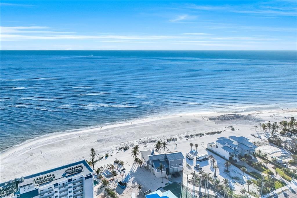 Welcome to your beachfront paradise on the coveted south end of Fort Myers Beach! This exceptional 3040 sqft, turnkey residence offers a unique opportunity to own a piece of island luxury with unobstructed, 180-degree views of the Gulf of Mexico, all for a price unlike anything else on the market. Designed for effortless entertaining and coastal living, the desirable open-concept floor plan creates a warm and inviting atmosphere. The standing seam metal roof installed in 2022 gives additional peace of mind. The chef's dream kitchen is a culinary masterpiece, featuring stainless steel Jean-Air appliances, including a six-burner range with a griddle and double ovens. A pasta arm faucet and a large exhaust hood complete the range area, while a separate island with a sleek prep sink and under-counter mini-fridge provides extra convenience. A huge breakfast bar overlooks the eat-in nook, living with additional wine refrigerator, and dining areas, all framed by breathtaking gulf views. The massive primary suite is a true retreat, boasting a wet bar and offering the kind of stunning Gulf coast sunsets typically reserved for travel magazines. The spa-like primary bath features dual vanities, marble flooring, a walk-in shower with multiple shower heads, and a separate jetted tub with a seamless, glass-to-glass corner window perfectly positioned to overlook the beach. The home offers additional luxurious accommodations, including an ensuite bedroom with a sliding glass door opening to a space to re-build the private beach-view balcony, plus two additional ensuite bedrooms that offer private balconies with views of Estero Boulevard. With two laundry areas, this home provides all the comforts and conveniences you desire. Open the windows and sliding glass doors to feel the inviting Gulf breeze fill the house. An elevator chase is conveniently located near the front of the house. A private path leads you to one of the island's most secluded, white sandy beaches, with pristine, turquoise waters. This versatile property is perfect for a private beachside residence or as a high-income rental investment. Enjoy the convenience of being close to shopping, dining, public marinas, and the vibrant life of Bonita Springs and Downtown Fort Myers Beach. For added peace of mind, a structural engineer approval letter was obtained after Hurricane Ian, and the publicly available FEMA 50% Rule letter indicates a building value of $1.274 million, leaving ample room for any necessary/desired improvements. Sold fully furnished and as-is, this exceptional opportunity is ready for you to start living your beachside dream.