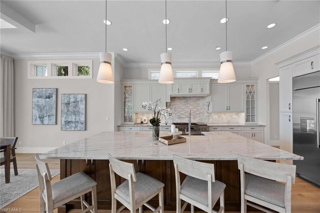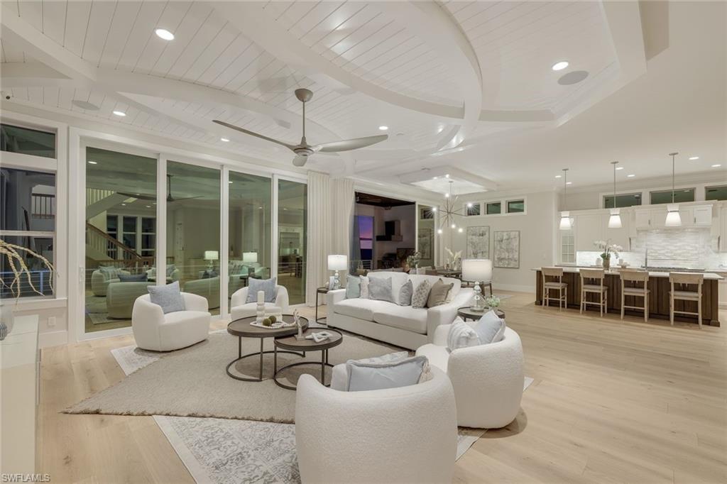 OFFERED FURNISHED! Enjoy the Gulf & Beach front lifestyle to its fullest with this newly remastered (ALAIR Custom Homes 2023/2024) coastal living, custom pool home. Originally built in 2015 by Gary W. Lau Inc. Custom Homes, here's the lifestyle you've always wanted & deserved with the scenic, stunning, unobstructed, shimmering views of the Gulf of Mexico right out your back door. From the moment you step into the foyer & take your private elevator or the custom-built staircase to the other levels, you know this is a special place for sharing with family & friends. As the home unfolds before you, your immediate focus may take you to the awe-inspiring expanded views of the Gulf of Mexico, its powdery-white sandy beach or the contrasting multi-shade turquoise gulf waters. Perhaps your eyes capture the spacious living room with coastal crisp décor’, natural sunlight, custom architectural ceilings, & the sprawling open floor plan. Then again, you may divert to the well-appointed kitchen that any chef would envy with new SS appliances, propane gas stove & oven, new tailored cabinetry, quartzite counter tops, glass-tiled backsplash, walk-in pantry & custom wood & tile flooring. Then again, it may direct you to the elevated pool & spa, the outdoor kitchen & lanai complete with gas fireplace & circular stairway to ground level where an outdoor shower, gas fire pit, direct access to the beach & gulf waters await you. Whichever, you'll be captivated & know, there is much more yet to see. Each of the 4 bedrooms are ensuites & there is a separate powder room as well. Custom closets, day-bar on both the 2nd & 3rd levels add to purposeful function & convenience. The list goes on, western-facing 3rd floor open balcony, 6-car garage, generator, electric hurricane shutters on the west-side of the home, impact resistant windows & doors, heavy gauge metal roof, new A/C, Security System, 350-gallon propane tank, new pool equipment & concrete block construction. The lot extends approximately 740' to the high-water mark on a select stretch of beach. The adjacent "buffer-zone" & designated bird sanctuary is home to Osprey, Eagles, Spoonbills & Pelicans along with a variety of other species that are indigenous to Florida to come & go as they please. The home has a set-back position from public beach goers, offering the utmost in privacy. Sunsets, as well as the distant lights of Naples, Bonita Beach & Sanibel on clear nights, add to the ambiance & will sweep you into your own oasis.