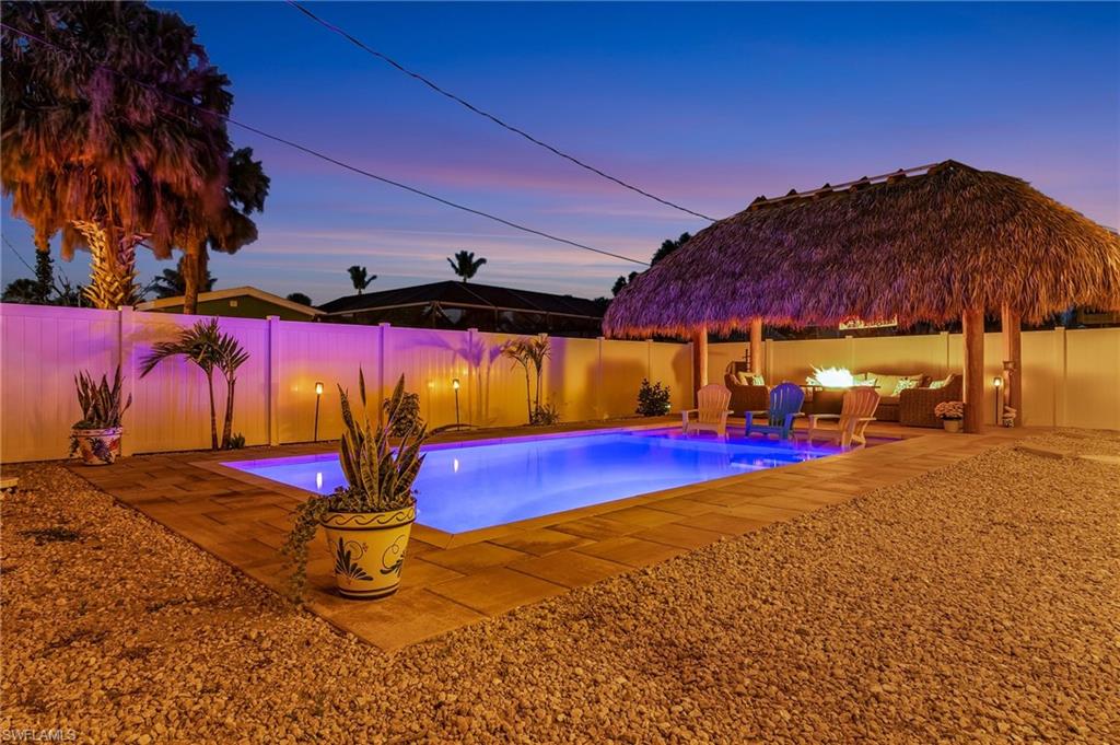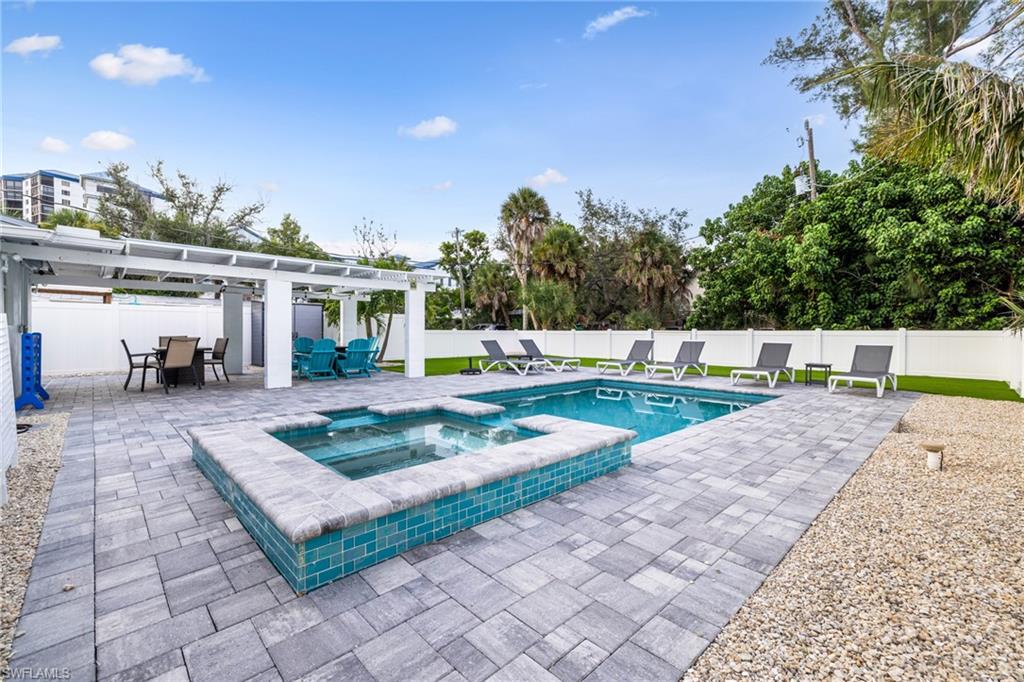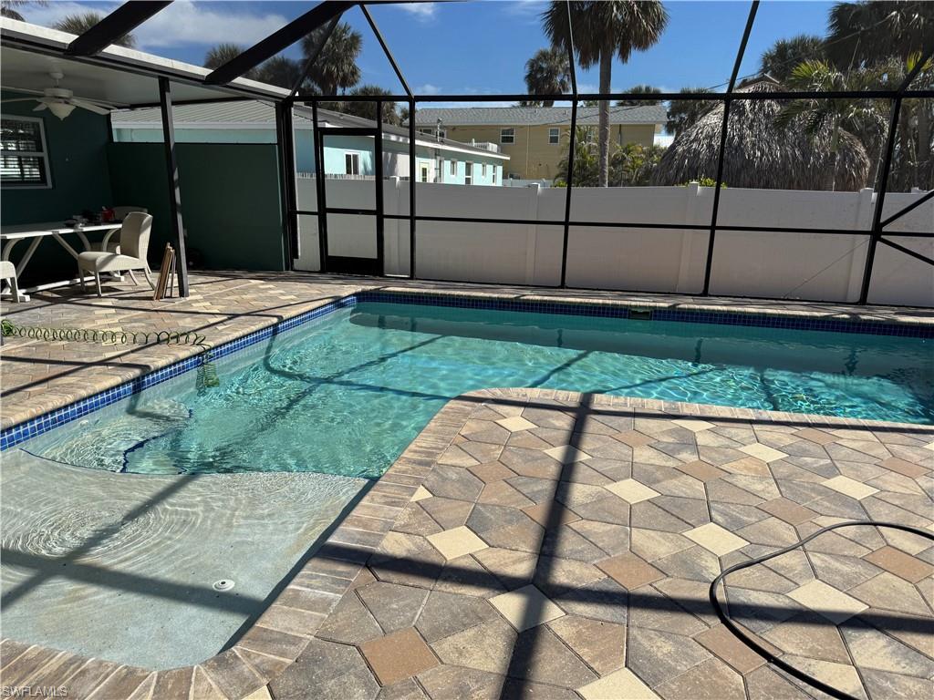 Step into your dream staycation escape—a fully remodeled DEEDED BEACH ACCESS cottage located right on the Island of Fort Myers Beach, just steps to the sand and across from scenic Estero Bay. No detail has been overlooked in this tropical oasis. The home boasts a 2018 roof, hurricane-impact windows and doors, updated electrical and plumbing, and everything brand new—from sleek flooring and high-end appliances to custom cabinetry and quartz countertops. Indulge in the spa-like custom rain shower with massage tower, unwind in the stunning new pool and spa, and enjoy the peace of mind that comes with storm impact protection. Outdoor living is taken to the next level with luxury upgrades and featuring expansive covered areas, lush landscaping, and a large private backyard perfect for entertaining. Inside, you’ll find double washer/dryers, a tankless water heater, and an airy open-concept layout designed for modern beachside living. Located just across from Estero Bay, and adjacent to Snook Bight Marina, Publix, and Fresh Catch Bistro, you’ll have the best of island life at your fingertips. Walk to the beach, or take a short bike ride to Times Square, restaurants, shopping, or head south to Lovers Key State Park for more nature and beach adventures.