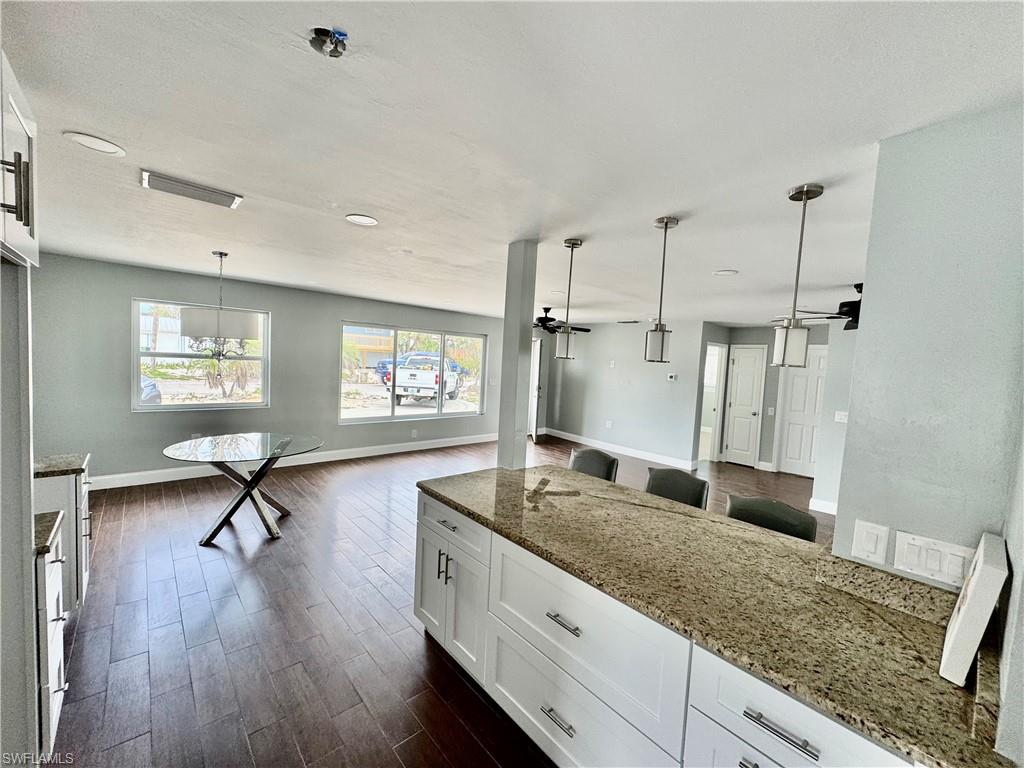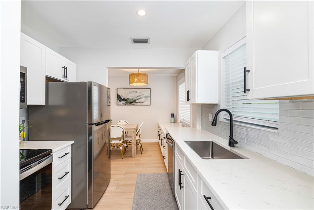 Just a 3-minute walk to the beach and Publix, this elevated, beautifully remodeled coastal retreat offers the perfect blend of luxury, comfort, and location on the quiet south end of Fort Myers Beach. Step inside to discover 4 spacious bedrooms—including two master suites with walk-in closets and a stunning oversized shower—plus 3 full bathrooms and a half bath just off the garage. The open-concept living area features gorgeous finishes, modern updates throughout, and a designer kitchen with Frigidaire Gallery appliances, shaker cabinets, and a custom tile backsplash that mirrors the outdoor shower. Upstairs showcases extra-thick luxury plank flooring, while the lower level offers convenient garage access and versatile utility space. The rear deck overlooks a private pool and tropical shell landscaping, creating the ideal setting for relaxing or entertaining. Walkable to the beach, shopping, dining, and boating, this home combines elevated living with true island convenience.