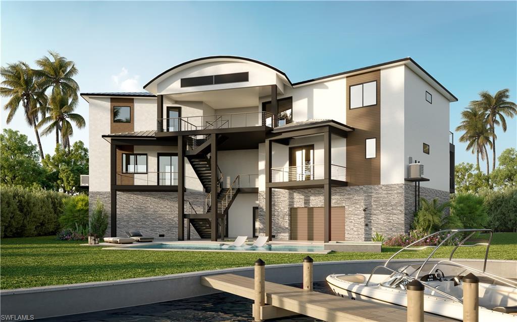 Estero Bay is every boaters dream location with endless water views on the exclusive North End of Fort Myers Beach. Here’s your opportunity to own one of the few remaining large parcels that can support a truly grand, private estate in this beautiful boater's community. Tucked away on a quiet cul de sac, this rare property offers the perfect blend of seclusion and proximity, with the connecting lot also available for sale (MLS#) —it's an ideal location for the ultimate waterfront compound. The adjoining 16,000 square foot parcel allows you to expand your footprint to nearly an acre of waterfront bliss, all with direct Gulf access, panoramic water views, and room to accommodate large yachts. This site offers everything the most discerning buyers seek—privacy, spectacular water views, and an unrivaled location just minutes from Times Square, Margaritaville, and the island’s top hotspots. The shoreline features 200 feet of protected seawall and intersecting canal frontage with the bonus exceptional deepwater access. Combining both lots would transform the property into an expansive waterfront retreat—perfect for hosting, relaxing, or simply enjoying the horizon from sunrise to sunset.The property is development ready with $350,000 design plans included by acclaimed architect Rich Guzman and styled by Adelyn Interiors. The plans showcase a sleek 6,075 sq. ft. estate with around 17,000 sq. ft. of outdoor living, including an elevated infinity pool, wrap around decks, and multiple outdoor lounges—blurring the line between indoors and out. Utilities are in place for a smooth start and every interior detail has been carefully curated for a flawless finish with the option to customize to your taste. This large site offers endless possibilities—add guest quarters, luxury amenities, or create a sprawling compound. With the ability to combine both parcels, you’re looking at a rare opportunity to build one of the most impressive estates on the island, fully tailored to your vision. Whether you choose to build on one of the lots or both, your vision starts here.