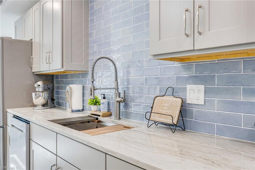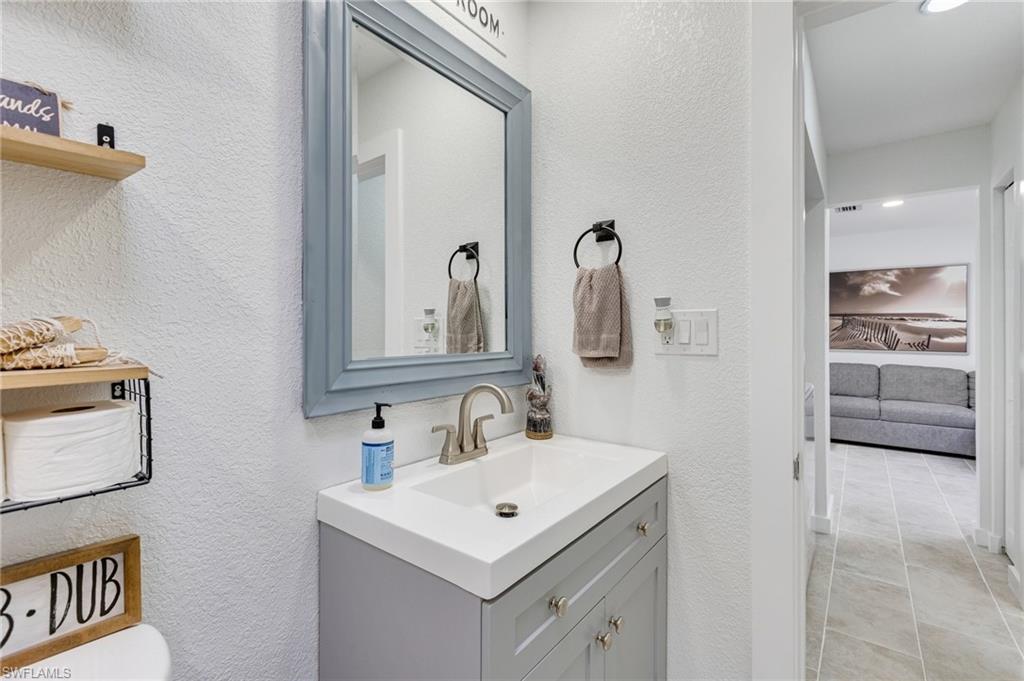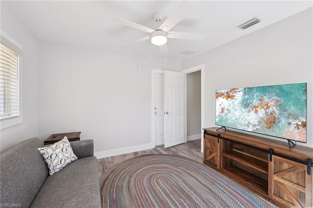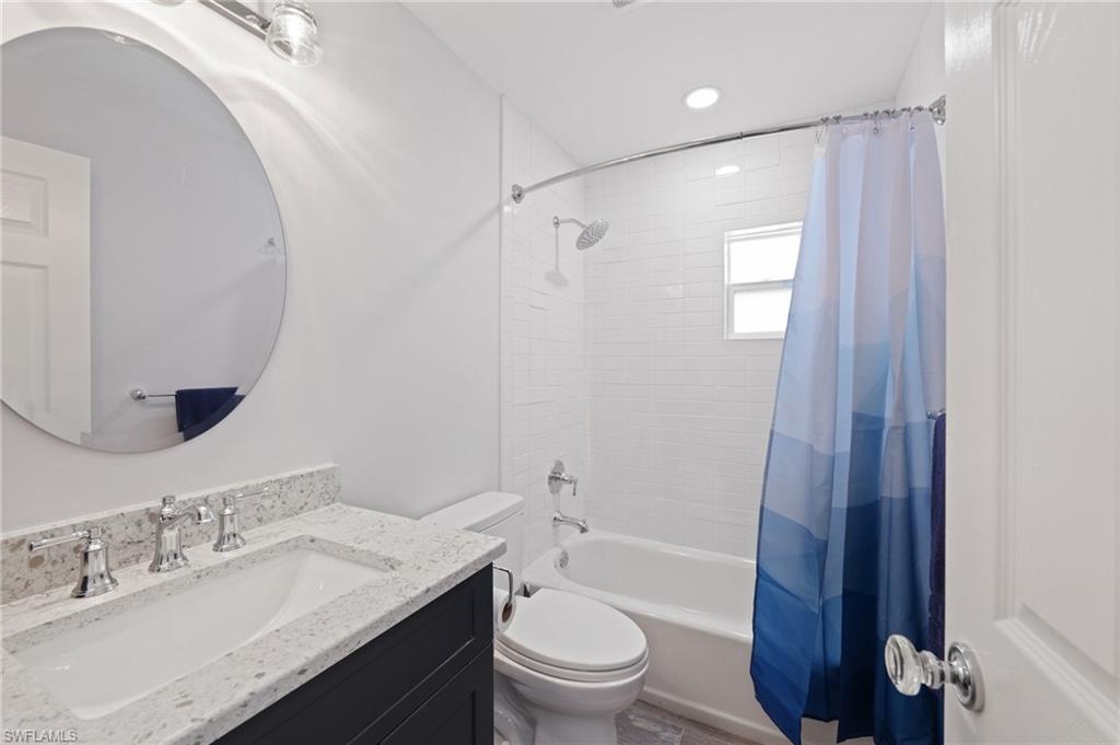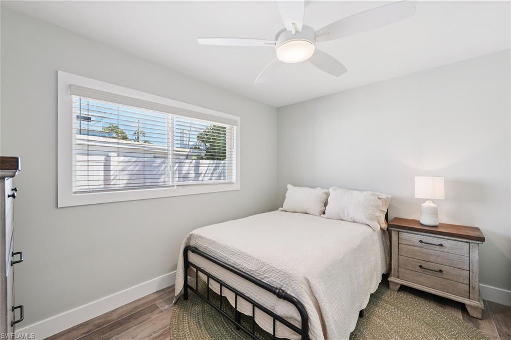 This beautifully remodeled single-family home is located Mid-Island on Fort Myers Beach, just steps from the bay and a private community fishing pier. Offering 3 bedrooms, 2 bathrooms, this coastal retreat is filled with natural light and modern upgrades throughout. The new kitchen features stainless steel appliances, quartz countertops, white shaker cabinets, a center island, and a spacious dining area. The master suite includes a walk-in closet, double vanity, and walk-in shower, while additional highlights include vinyl flooring throughout, impact windows and doors, a tankless Insta-hot water heater, newer roof, recessed lighting, and an inside laundry room. Outdoor living is a dream with an oversized screened lanai with no-see-um screening, an open-air paver patio, an oversized spa, a fully fenced yard, and plenty of room for a pool. With ample parking and a prime location within walking or biking distance to beach access across Estero Blvd and Publix grocery store, this home is move-in ready and offered turnkey.