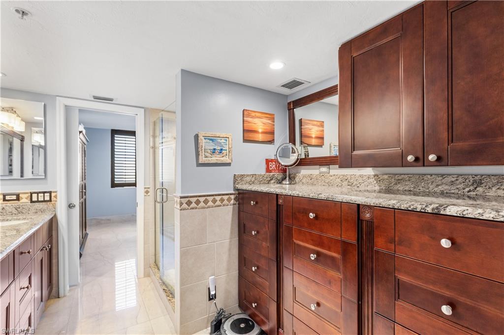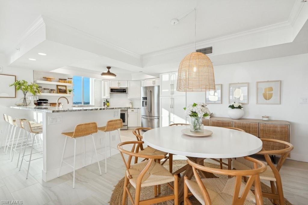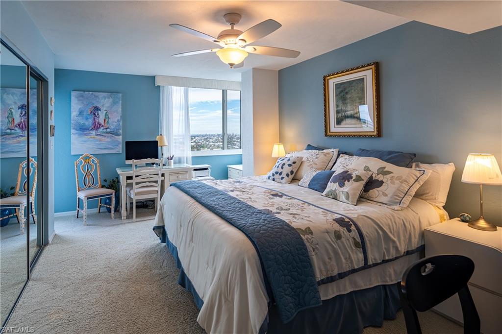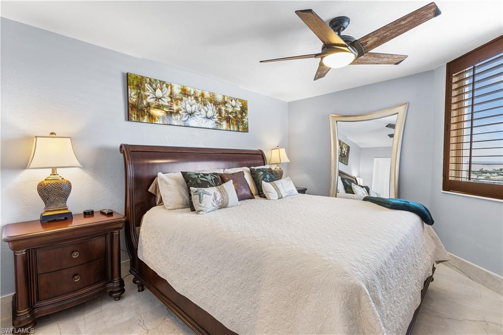 Welcome to the most beautiful grounds on Fort Myers Beach. This fully furnished 16th-floor Ocean Harbor penthouse offers the best of both worlds—stunning sunsets over the Gulf and peaceful sunrises across the Back Bay. Designed with versatility in mind, the floor plan features two ensuite bedrooms, each with its own private quarters, allowing for two fully equipped primary suites if desired. The custom kitchen has been tastefully updated with rich wood cabinetry, granite countertops, and abundant natural light that fills this corner residence. All windows and sliders are impact-resistant, the lanai features new electric storm shutters, there is a new hurricane-rated entry door, and all assessments have been paid. An in-residence laundry room provides added storage and convenience. Ocean Harbor offers some of the finest amenities on the island: • Six pickleball courts • Two tennis courts • Newly renovated community pool and clubhouse • State-of-the-art marina with 650+ feet of new seawall • Scenic boardwalk along the Back Bay Everyday conveniences are just steps away with a private entrance to Publix, direct beach access, a beach trolley stop, and the security of a gated community. This residence includes a premium under-building parking space close to the lobby, an additional assigned open space, and a private storage closet for bikes and beach gear. New carports are currently being installed. Pets allowed with Limits