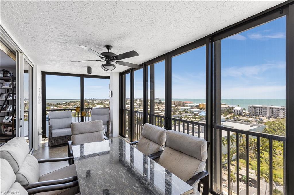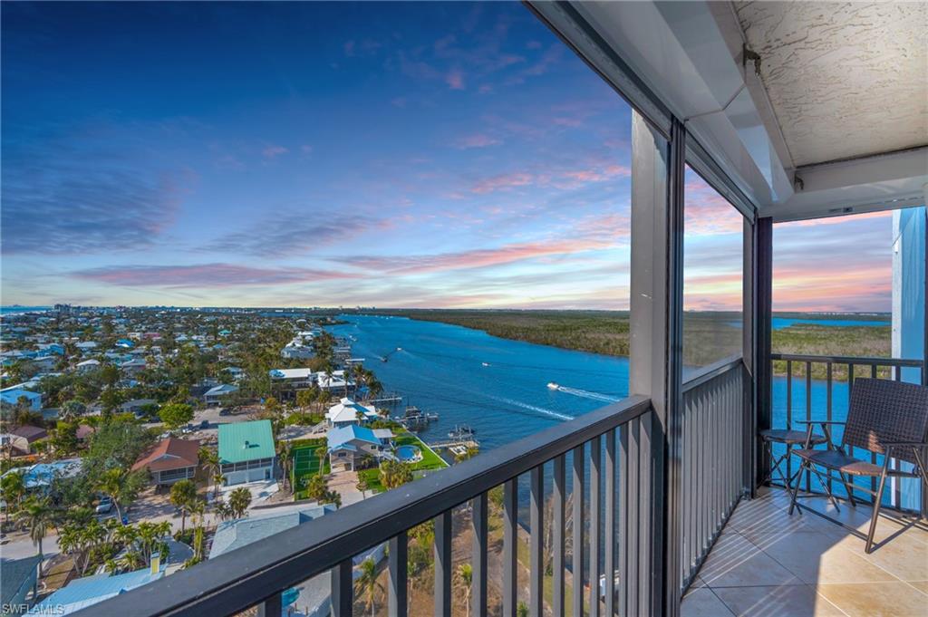Welcome to your private Ft. Myers Beach oasis at Ocean Harbor — one of the island’s most desirable gated communities nestled on 9 acres. This 14th floor corner unit has stunning views from all sides with 2 private balconies. Experience the best of water front living in this beautifully renovated 2-bedroom, 2-bath condo. Take in serene morning sunrises over the tranquil Back Bay, where dolphins and manatees glide through the water. Inside discover a bright living space with a seamless indoor-outdoor flow, with every detail thoughtfully modernized — from the hurricane-impact windows and doors to the stylish finishes throughout. Ocean Harbor offers resort-style amenities that make every day feel like a vacation — including a heated tropical swimming pool, two relaxing hot tubs, pickleball and tennis courts, bocce ball, a fitness room, private boat docks, and a kayak launch. Enjoy social gatherings in the clubhouse, take a short stroll to direct beach access on the island’s pristine white-sand beaches or fish off the dock. Discover the perfect blend of comfort, convenience, and island charm — welcome home to Ocean Harbor.