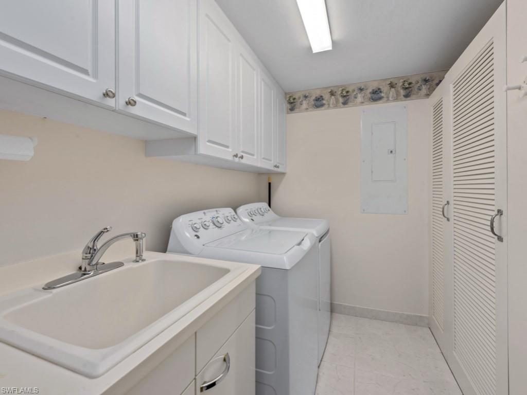 Welcome to the stunning Monterrey at Cape Marco! This luxury building is situated on the southern end of Marco Island overlooking the Gulf of Mexico and the 10,000 Islands. Watch manatee and dolphin swim by glorious sunsets from your front and back balconies. Enjoy gulf breezes on the main balcony, large enough to enjoy an outdoor living room and or dining space. Cape Marco is a very secure community with main gate manned 24 hours, secured building and parking area. Enter this condo via a semiprivate elevator servicing only 2 units per floor. The double door entry opens to a nice sized great room with incredible views. The split bedroom floor plan has den and guest room to the back of the condo and primary suite with balcony access to the front. Wake up to glorious views and morning sun. The primary bath has a large soaker tub and a walk-in shower, double vanity and a walk-in closet. The kitchen with white modern cabinets and granite counters has a coffee bar breakfast room area. Many updated items including AC 2020, Hot Water Heater 2024, Refrigerator 2018, Dishwasher 2023, Stove/Oven 2020, Disposal 2024, Washer/Dryer 2022. In addition to shared storage on the unit floor, there is a large private storage area in the garage. The building has an outstanding clubhouse room with full kitchen, bar, large screen TVs, game/card area and many sitting areas all with spectacular gulf views. Cape Marco has one of the most popular tennis groups on the island. Enjoy 6 Har Tur tennis courts, the newly renovated clubhouse and veranda area and all that the tropical Cape Marco grounds have to offer. This condo with its unobstructed view and ample 1800 sq. ft plus is one of the best buys on Marco at this time.