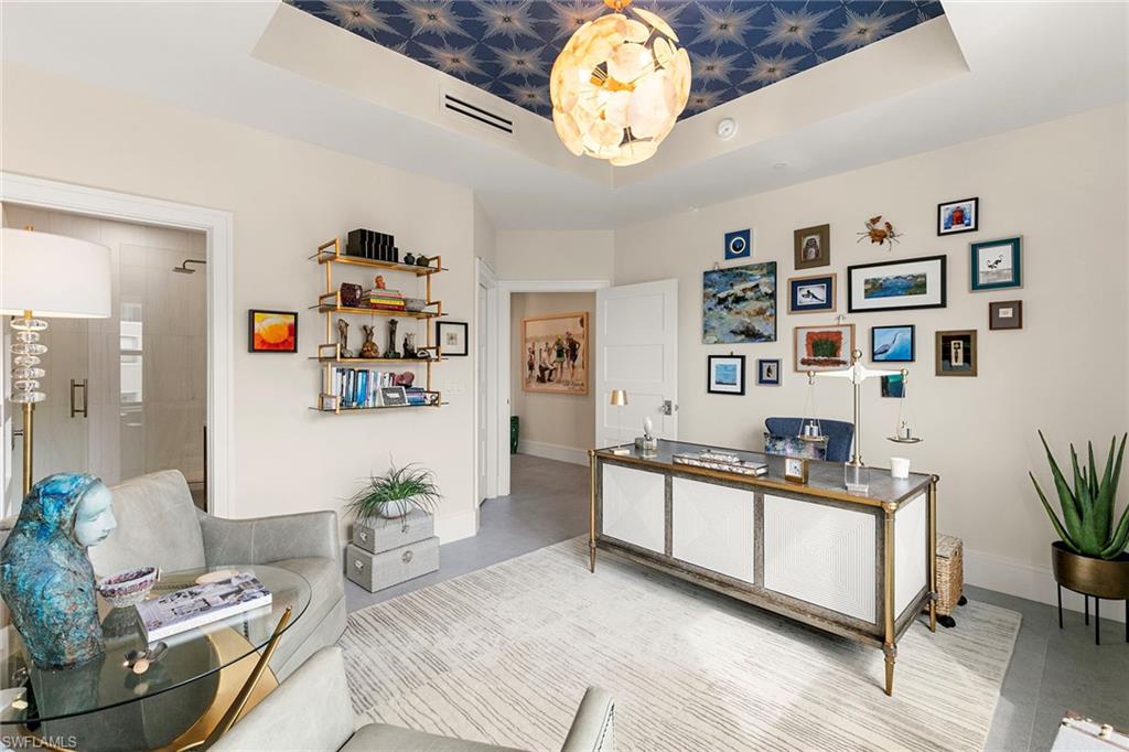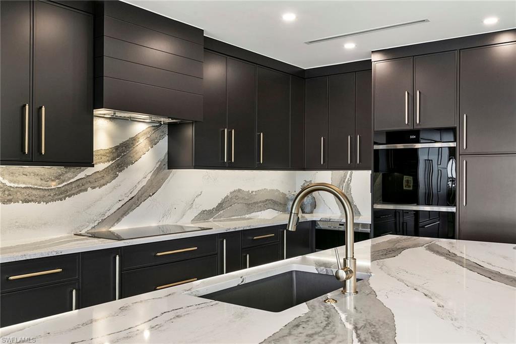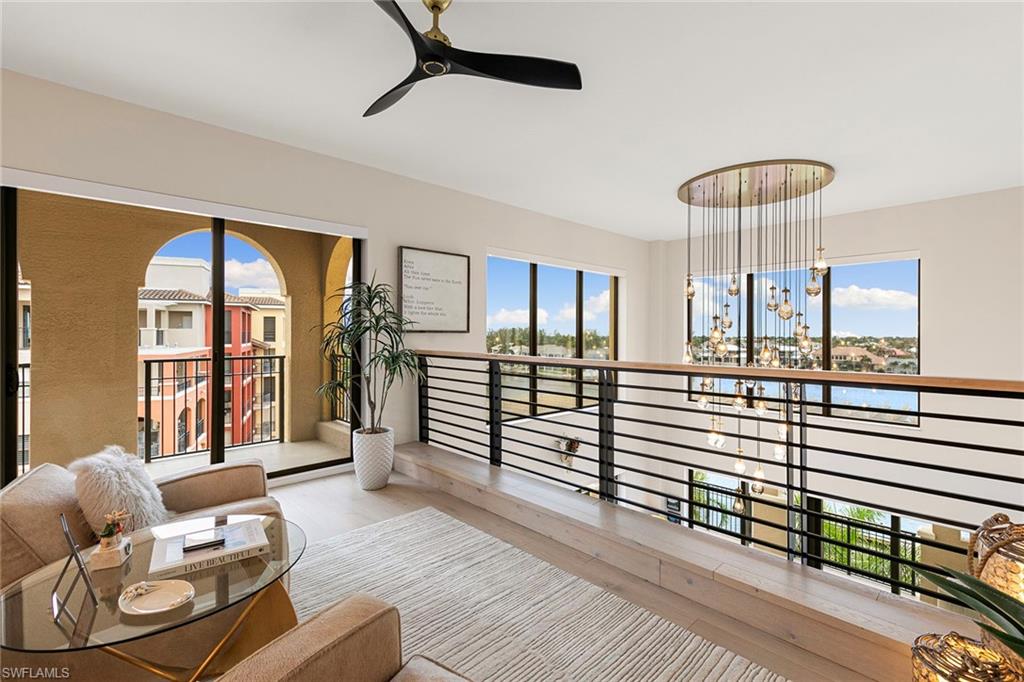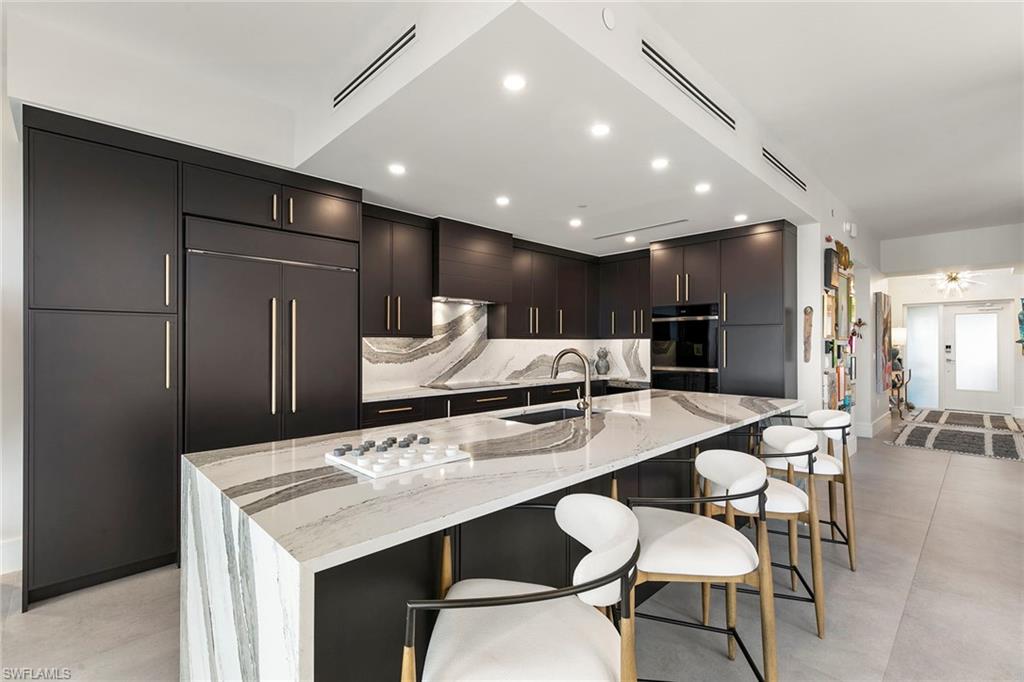 One-of-a-kind penthouse living on Marco Island. A residence unlike any other, this is the only two-story penthouse condominium on Marco Island, offering a lifestyle that lives like a private home. Encompassing the fourth and fifth floors of The Esplanade, Penthouse 402 is framed by walls of glass that bring in the outside, showcasing remarkable views of Smokehouse Bay from every angle. No detail was overlooked in a redesign by Driftwood Build, where modern craftsmanship meets timeless luxury. This three-bedroom, 3.5-bath residence blends striking design with everyday comfort. The first floor unfolds with a grand living and dining space anchored by a chef’s kitchen featuring a bold 13-foot quartz island, Wolf and Sub-Zero appliances, double ovens and custom cabinetry. Two en-suite guest rooms offer privacy and style, while the floating maple staircase leads to a spectacular upper-level retreat. The second-floor primary suite, nearly 1,000 square feet, delivers ultimate privacy. Highlights include engineered white oak flooring, a custom walnut-paneled wall, a built-in 74-inch linear fireplace, a private wet bar and an expansive lanai perched over Smokehouse Bay. The spa-inspired bath is adorned with Italian marble, a standalone soaking tub, double shower, dual 74-inch vanities with quartz counters and a custom California Closets walk-in. Additional features include luxury designer lighting, bespoke finishes throughout, impact-rated doors and windows, two deeded garage spaces and private storage. The Esplanade’s resort-style amenities complement the home’s elegance with vibrant marina views, dining and shopping just steps away. This penthouse is more than a residence, it’s a statement of rarity and refinement.
