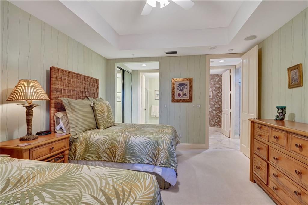 Welcome to luxury living at Riviera in Hideaway Beach, one of Marco Island’s most prestigious 24-hour gated communities. This spacious 2-bedroom + flexible den (previous bedroom) 3-bath condo offers 4,274 total SF on the 4th floor with soaring ceilings, abundant natural light, and an open floor plan. The bright, well-maintained kitchen features Corian countertops, white appliances, and a center island—ideal for casual dining or entertaining. The expansive primary suite includes dual walk-in closets, a spa-like bathroom with soaking tub, and lanai access. A flexible den serves as an office or extra sleeping area. Enjoy one large screened lanai facing the Gulf—perfect for sunsets—and two additional lanais with tranquil island views. This very clean, well-kept condo is offered furnished with some exclusions, and features hurricane shutters, in-unit laundry, private storage, under-building parking, and an on-site manager. Amenities include a 9-hole golf course, tennis, pickleball, bocce, walking & biking paths, a brand-new fitness center, beachside pool, private beach access, and multiple on-site restaurants. Resort-style living at its best!