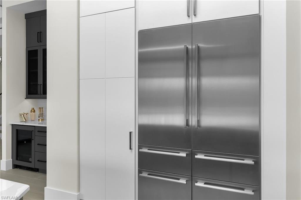 Enjoy a captivating bay view with quick direct access to the Gulf of Mexico from your recently built oversized private dock with a 16,000-pound boat lift and a 7,500-pound platform lift. This extraordinary four-bedroom plus office and den home is a gathering place for friends and family, offering soaring ceilings and abundant space in the open floor plan with formal living and dining areas, a kitchen, breakfast nook and family room. Relax poolside under the screened lanai with a built-in outdoor gas fireplace and spa. A spacious primary suite is on the first floor along with two guest rooms on the other side of the home. Upstairs two more guest rooms complete with a kitchenette and wine cooler flow out to a cozy balcony overlooking the tranquil bay. Pocketing impact glass sliders, impact windows, a security system, storm shutters and a massive three-car garage with tall ceilings that can accommodate car lifts are also of note. This tastefully updated custom-built home offers luxurious comfort. The chef’s kitchen features a Wolf gas cooktop and Wolf wall ovens complete with a 48-inch Sub-Zero built-in refrigerator and KitchenAid dishwasher. The pool and spa are controlled by an Aqualink system and electric heat. An additional gas line was run for the barbecue grill served by a 200-gallon propane tank. A brand new flat tile roof and new gutters were just installed in 2025 for peace of mind and lower insurance costs. Seller has a transferable NFIP flood insurance policy.