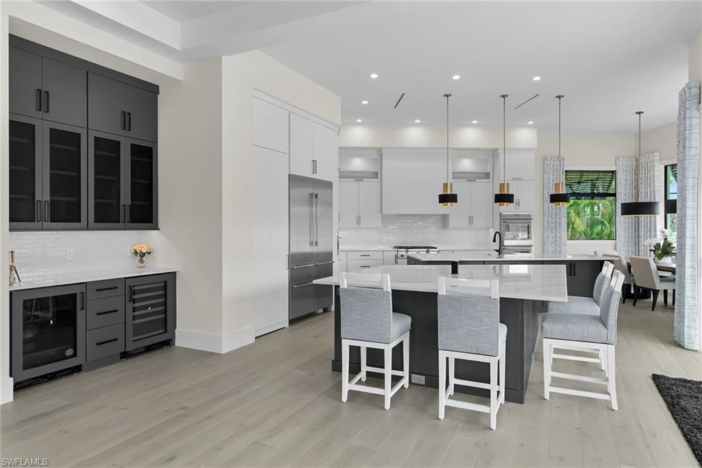 Newly built exquisite modern contemporary masterpiece is now being offered for sale in the heart of Marco Island, Florida. Spacious, open floor plan 5 bedroom and 5.5 bathroom two story luxurious property situated within walking distance from fine dinning, shopping, entertainment, boating and beaching. Each bedroom has it's on bathroom, as well as, powder bath for the quests and visitors. High end quality built home is built up 3 feet higher than FEMA requirements and has impact widows and doors throughout out entire property, therefore you do not have to worry about possible mother nature unpleasant surprises and will always be safe and sound ! This home truly stands out amongst it's competitors with functional open floor plan, quality craftsmanship, elegant, classy and tasteful design, color scheme selections, high end appliances, floor to ceiling window, fabulous indoors and outdoors living combined together, with a large entertainment, relaxation and BBQ area for the outdoors kitchen next to the lap pool surrounded by lush landscaping and lot's of privacy, while facing everyones favorite Southern sun exposure in the back, which gives you the most amount of sun throughout out the day !