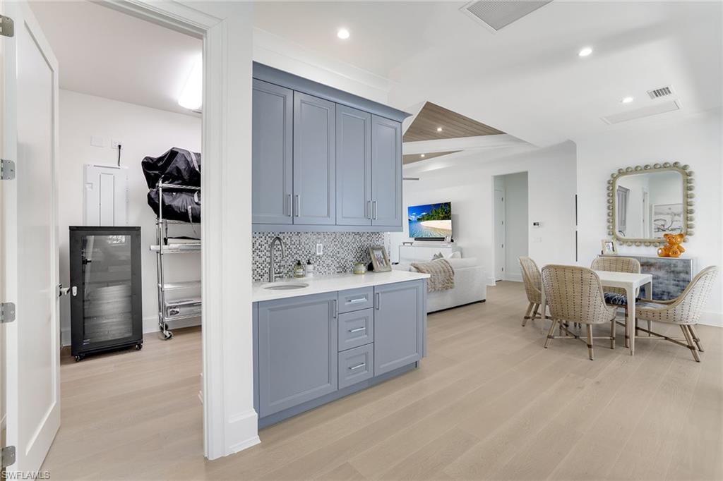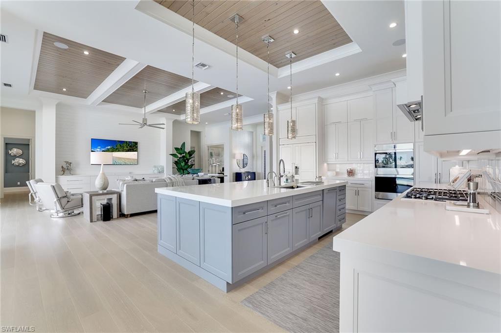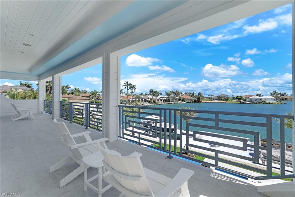 Luxurious, new, custom-built home on a .5-acre lot with southern exposure and stunning wide water views overlooking Fredericks Bay. In mint condition, this home has designer finishes throughout and features four bedrooms plus a large office/den, five full baths, resort-style pool plus integrated spa, elevator, four-car garage (one with air conditioning) with additional room for lifts, 60,000-pound boat lift and two platform lifts for jet skis and a tender. Chef-style kitchen with Sub-Zero & Wolf appliances, custom cabinetry, quartz counters, designer fixtures and a walk-in pantry. Adjacent to the kitchen is a fabulous dining area with a built-in wet bar and an oversized Sub-Zero wine cellar. Expansive great room with soaring ceilings, built-ins, intricate ceiling details and views in every direction. Designed with a coastal lifestyle in mind, the home has sliding pocket doors to optimize for seamless indoor/outdoor living. Outdoor entertaining is made easy with a custom bar/summer kitchen, sprawling lanai, fireplace and hurricane shutters plus electronic screens. Primary bedroom on the first floor with dual closets and spa-like bathroom with dual shower heads and soaker tub. The second floor has a great room with incredible bay views, three sizable bedrooms, three full baths, a bar and large lanai. Other features include wide plank white oak flooring throughout, Uxari Home Security System, elevator, laundry room with two full-size washer and dryers, sink, ample storage and a generator. Direct access out to the Gulf in just minutes. Island living is calling your name!
