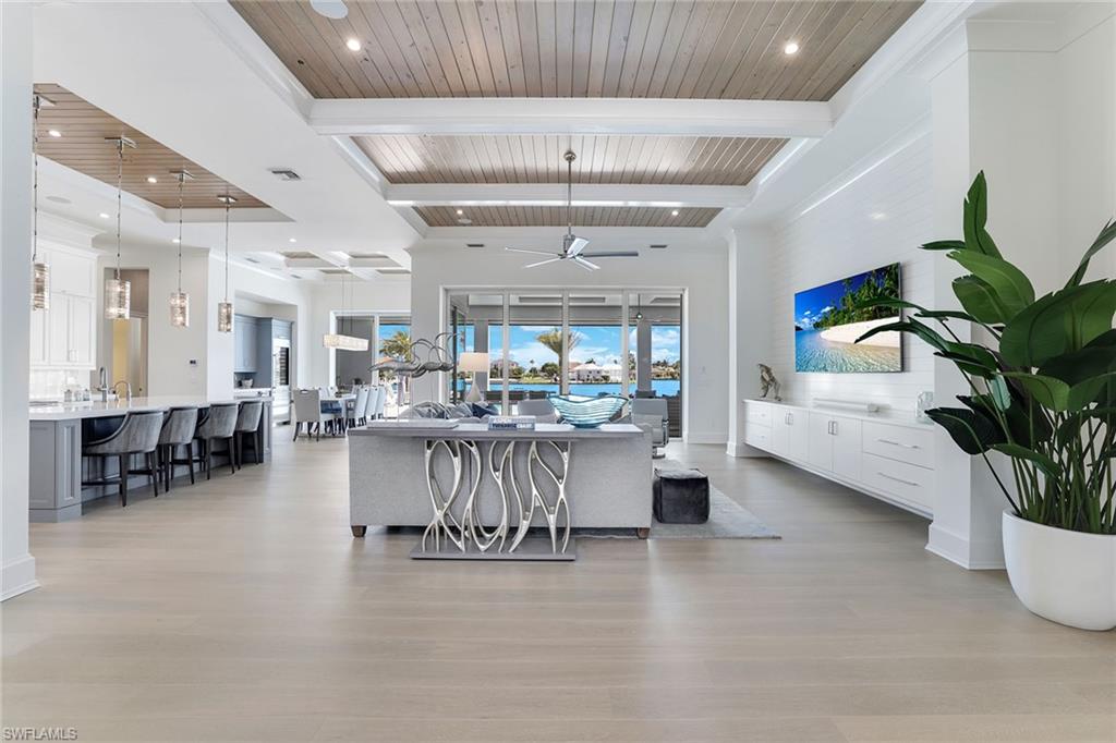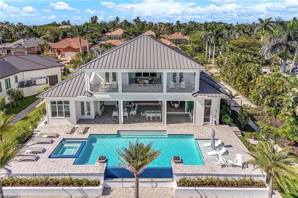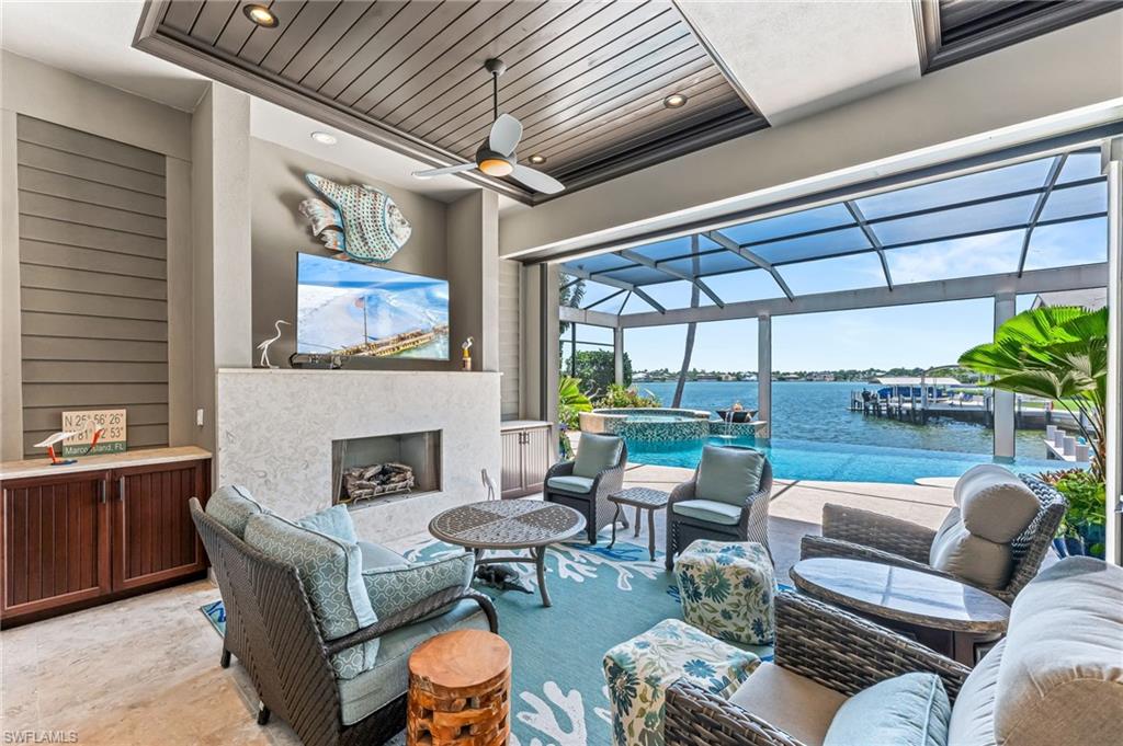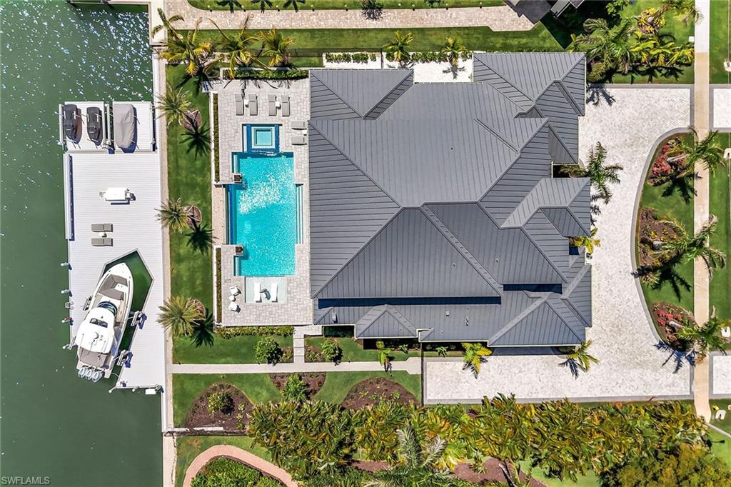 One of the captivating homes available on Marco Island. The grounds offer a welcoming air that sets the tone for what this home offers: a luxury waterfront retreat in the prestigious Estate section of Marco Island with dramatic exposures of Caxambas Pass out to the Gulf. This incredible home was masterfully built in 2020 by Ross Tackett, designed by Bill Lewis and offers a distinctive twist on classic coastal design by incorporating timeless finishes with livable spaces, copious amenities and a sensible floor plan creating an escape that is as stylish as it is comfortable. Offering 6,400-plus air-conditioned square feet over two-levels with six bedrooms plus den, eight-and-a-half baths, theatre room and more all exquisitely designed and furnished throughout. Each suite is complemented by its en-suite bath for ease and comfort. Tranquil water views can be found from nearly every space. The outdoor living areas enhance the entire property with over 3,000 square feet of lanai/outdoor terraces. Beautiful saltwater pool/spa, outdoor kitchen and multiple seating areas where you can entertain guests or simply unwind and take in the beauty of the nature you are surrounded by. This half-acre, southern exposure lot with 125 feet of water frontage is seated amid spectacular scenery of the pass, 10,000 Islands, area wildlife and colorful skies. Private, direct access deep-water dock outfitted with two slips and two wave runner lifts, only minutes to all that make Marco Island a world-class destination. Whole-home generator. Elevator. New seawall in 2020. Buried propane tank. Impact glass doors/windows. Spacious garage with epoxy floors, three stalls with ability to have lifts to accommodate at least four cars/small RV/sprinter. Today's luxury homebuyers want reality, not promises. They want something special and ready to enjoy today, so welcome home.