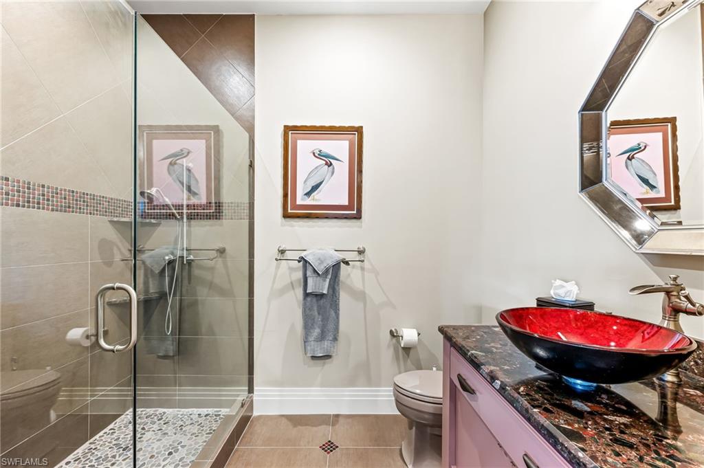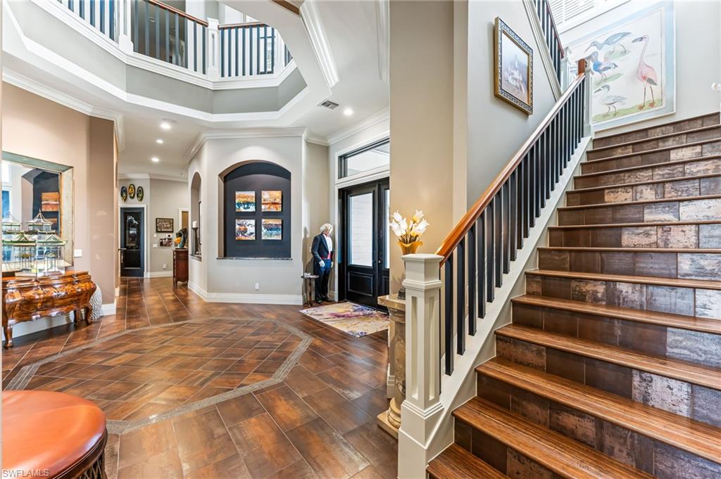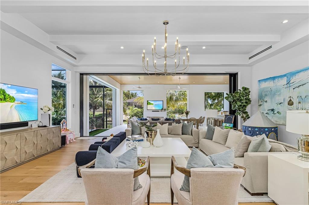 Experience the epitome of Marco Island living in this extraordinary custom-built home, where no detail has been overlooked. With prime western exposure, this three-story residence offers unparalleled views of stunning sunsets over Collier Bay. Encompassing 5,591 square feet of living space, the home is an architectural masterpiece, showcasing exceptional craftsmanship and high-end finishes throughout. Designed with the finest materials, this fully furnished home includes four bedrooms plus a den, four full baths and two half-baths. The gourmet kitchen is a chef's dream, featuring Thermador and Dacor appliances, custom cabinetry, elegant lighting and breathtaking water views. The rich wood tones extend into the cherry-paneled den with Brazilian cherry floors, while the spacious workout room takes full advantage of the open bay vistas. For ultimate relaxation and entertainment, the home offers a billiards room that opens to the pool area, complete with an outdoor fireplace and kitchen, as well as a state-of-the-art eight-seat movie theater with an immersive sound system. The wine room, adorned with hand-crafted designer doors, adds to the home's refined atmosphere. A grand formal dining room with a striking chandelier sets the tone for elegant gatherings. The home's interiors are nothing short of spectacular, with Crema Marfil marble flooring throughout the main areas, including a beautifully curved marble staircase with intricate inlays. Designer hand-carved Bolivian wood doors and custom moldings enhance the home's sophisticated appeal while soaring coffered and tray ceilings create a sense of openness and grandeur. Custom lighting and professional decor further elevate the home’s luxurious ambiance. The expansive primary suite on the main level is a serene retreat with sweeping bay views. It features dual custom vanities, a luxurious Jacuzzi tub, a multi-person shower and two walk-in closets, each with chandeliers. Ideal for entertaining, the outdoor space includes a saltwater pool and spa, a fully equipped kitchen with a gas fireplace, and a boat dock with a 16,000-pound lift, a jet ski dock and lift. A three-car garage provides ample storage and parking. This home is a connoisseur's dream, offering luxury and functionality in a stunning Marco Island setting. It is a rare opportunity to own a piece of paradise where every element has been carefully curated for an unmatched living experience.