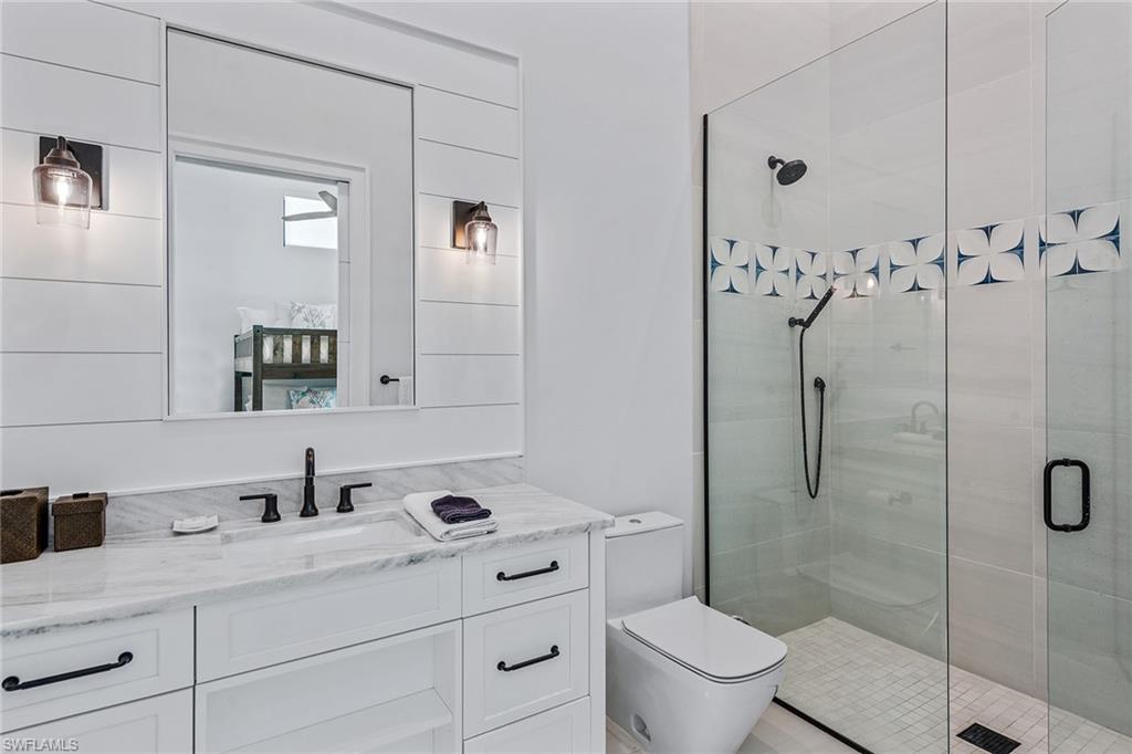 Experience unparalleled coastal luxury in this stunning 2025-completed residence offering quick, direct Gulf access and exceptional modern craftsmanship throughout. Ideally designed for refined living and effortless entertaining, this four-bedroom plus den, five-bath home sits in the desired mini-estate section on an oversized lot with a new 125-foot seawall, capturing stunning western sunsets and beautiful water views. A wide brick paver driveway sets a grand approach, leading to an inviting interior filled with natural light, volume ceilings, elegant crown molding and contemporary custom lighting. Wood floors throughout the living areas enhance the home’s warm, modern aesthetic. The gourmet kitchen is an impressive focal point, featuring striking quartzite countertops and full-height backsplash, a large island with a breakfast bar and premium Wolf appliances including a gas cooktop with hood, a built-in wall oven, a steam oven and Sub-Zero refrigerator. An adjacent dining area with large windows frames serene waterfront views, while a nearby wet bar with quartzite counter and a large Sub-Zero wine refrigerator enhances the home’s effortless flow. The living room is equally impressive, offering a custom wood-accent entertainment center with a built-in fireplace, tray ceiling, and expansive pocketing sliders that open to the lanai for seamless indoor-outdoor living. The owner’s suite is a luxurious retreat with lanai access, transom windows and two walk-in closets with custom built-ins. Its spa-inspired bath features polished porcelain tile on the floors and walls, dual quartzite vanities with a full-width LED mirror, a soaking tub, and a spectacular floor-to-ceiling tiled walk-in shower with three large privacy windows, frameless glass and multiple shower heads. Three additional guest suites each include walk-in showers, with one serving as the convenient pool bath. A double-door den provides an ideal office or study and is positioned near a full bath with a walk-in shower. The outdoor living space is exceptional, highlighted by a tongue-and-groove wood ceiling modern fans, a built-in entertainment center, and a travertine deck that wraps around the stunning pool with a sun shelf and spa enclosed by a frameless glass fence. The outdoor kitchen is ideally appointed with a barbecue, hood, refrigerator, ice machine, sink, and a natural quartzite countertop with full-height backsplash and bar counter. Impact windows and doors enhance peace of mind. Additional features include a well-equipped laundry room with porcelain tile flooring, new GE UltraFresh washer, new GE Smart front-load dryer, a utility sink and overhead cabinetry, along with epoxy flooring in the attached garage for a clean, polished finish. Ideally close to shopping, dining and all of Marco Island’s top attractions, this home also offers quick access to Veterans Park, Mackle Park and pristine shores of Residents’ Beach, and nearby executive airport.