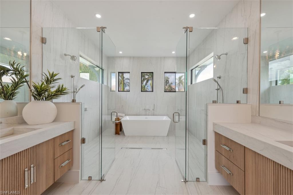 Are you ready to wake up to breathtaking bay views every day and experience true waterfront luxury? Nestled along the peaceful shores of Smokehouse Bay, this stunning 2018 RK Reiman custom-built home with 3 car garage offers the ultimate in coastal luxury. Spanning 3,829 square feet under air, this 4 bedroom, 4.5 bathroom residence boasts breathtaking views of the bay and The Esplanade. As you enter through the dramatic two-story foyer, you are immediately greeted by the expansive great room. With its soaring volume ceilings, large open sliders, it offers immediate, unobstructed views of Smokehouse Bay and the stunning yachts lining The Esplanade. The open-concept design allows the interior to seamlessly flow into the screened lanai, where the pool and spillover spa invite relaxation. The chef's kitchen is a true standout, featuring a large island, double wall ovens, a custom backsplash, and a spacious walk-in pantry for ample storage. The luxurious primary suite offers direct access to the lanai through elegant french doors. Enjoy views of the tranquil bay and the spillover spa, enhancing the seamless connection between the indoors and outdoors. The ensuite bath, complete with dual vanities, a soaking tub, a walk-in shower, and a hidden walk-in storage area cleverly tucked within one of the primary bath cabinets for added convenience and organization. On the first floor, the primary bedroom is complemented by a guest bedroom, with a bath that also serves as a pool bath, creating a perfect split floor plan. The dedicated study, with French doors leading to the main living area, offers a peaceful space for work or relaxation. The 2nd floor features two ensuite bedrooms, each with private baths, along with a common area that leads to a balcony offering raised, unobstructed views of the bay and beyond. Throughout the home, custom finishes abound, from textured walls in the great room and half bath to the carefully selected materials that enhance the home’s unique style. The great room features the Whispered Elegance wall finish, while the powder room boasts the luxurious Lido finish. Custom ceiling details grace each room, adding a unique and refined touch throughout the home. Other Features Include: A whole-home generator with a 1,000 lb propane tank which also fuels the gas range and outdoor kitchen grill, whole home water filtration system, impact windows and doors, electric shutters on the lanai, security system, safe, central vacuum system that’s only 3 years old, double 2.5-year-old hot water heaters, dedicated storage closet on the lanai, and a low, transferable flood policy. For boating enthusiasts, this home is a true gem. A newer seawall, coupled with a beautiful dock and boat lift, offers quick access to the Gulf. With its perfect blend of luxury, comfort, and coastal charm, this home presents an extraordinary opportunity to experience Marco Island living at its finest.