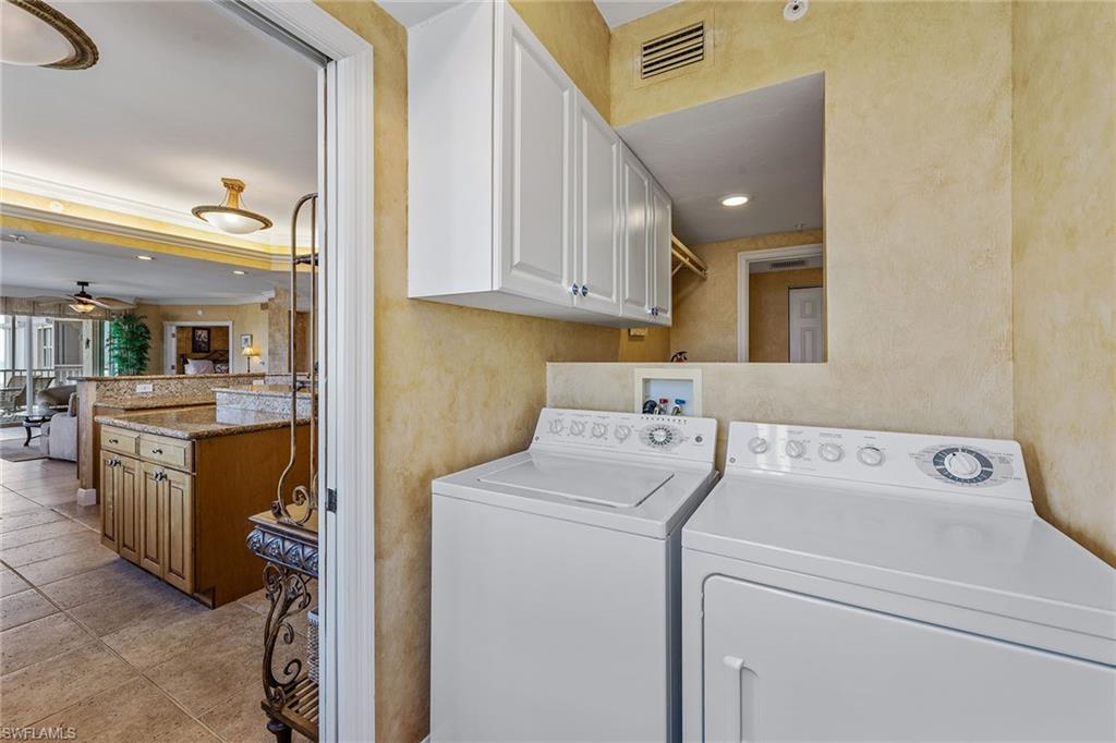 Nestled on the 2nd floor of the prestigious Mirage on the Gulf, this beautifully updated 3-bedroom, 2.5-bath condo offers an unparalleled living experience with sweeping 270-degree views of the Gulf of Mexico and the 10,000 Islands. As you step through the door, you're immediately captivated by the breathtaking water views that follow you throughout the 2,159-square-foot layout. An open-concept living area, bathed in natural light from floor-to-ceiling windows offers the perfect space for entertaining or finding peace by tranquil waters. Opening the sliders to the extra large, screened-in lanai creates a perfect indoor/outdoor space or use it to unwind while taking in the stunning sunsets over the Gulf of America. The modern, well-appointed kitchen boasts custom cabinets, ample counter space on beautiful granite, and Gulf views from anywhere you stand. Showcasing integrated refrigeration drawers, cabinet matched refrigerator doors, and a hidden in-unit laundry. The spacious master bedroom offers a peaceful retreat, complete with Gulf views and a luxurious en suite bathroom featuring a walk-in shower and separate soaking tub along with His-Hers vanities and closets. Two additional guest bedrooms provide plenty of space for family or friends, ensuring that everyone enjoys comfort and privacy. All of this is enclosed by state of the art hurricane protection at every point and the electric storm shutters will keep you safe from any storm. This unit also includes a private, extra deep one-car garage under the building - the ultimate convenience and security. Mirage on the Gulf offers a wealth of luxurious amenities, including a resort-style pool and spa, tennis and pickleball courts, a state-of-the-art fitness center, a fishing pier, and a brand new, expansive sun deck to soak in the beauty of the coastline. The pet-friendly community is ideally located just minutes from pristine beaches, world-class shopping, and fine dining, offering the ultimate in island living. Whether you're looking for a vacation retreat or a permanent slice of paradise, this condo invites you to live the Marco Island lifestyle at its finest. Don't miss out on this rare opportunity—your dream home awaits!